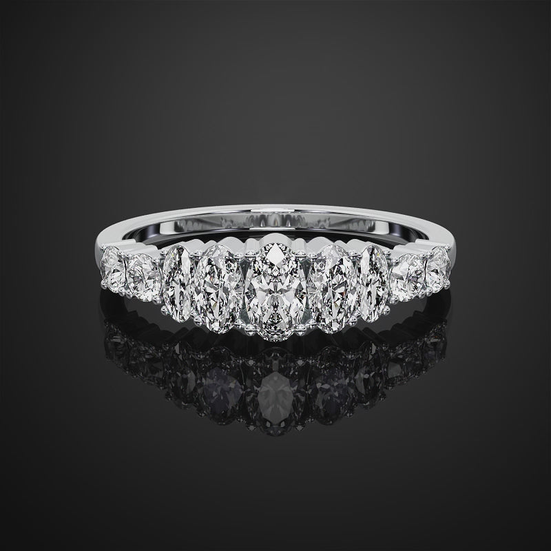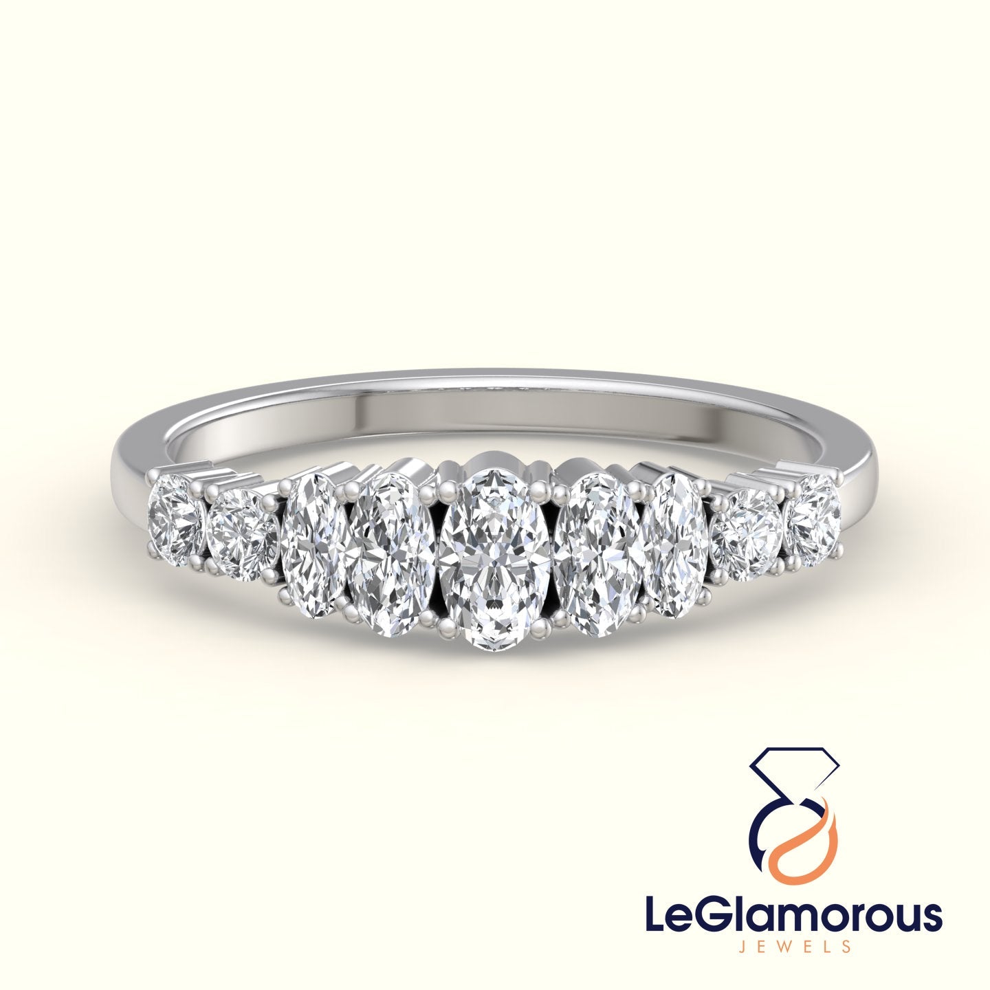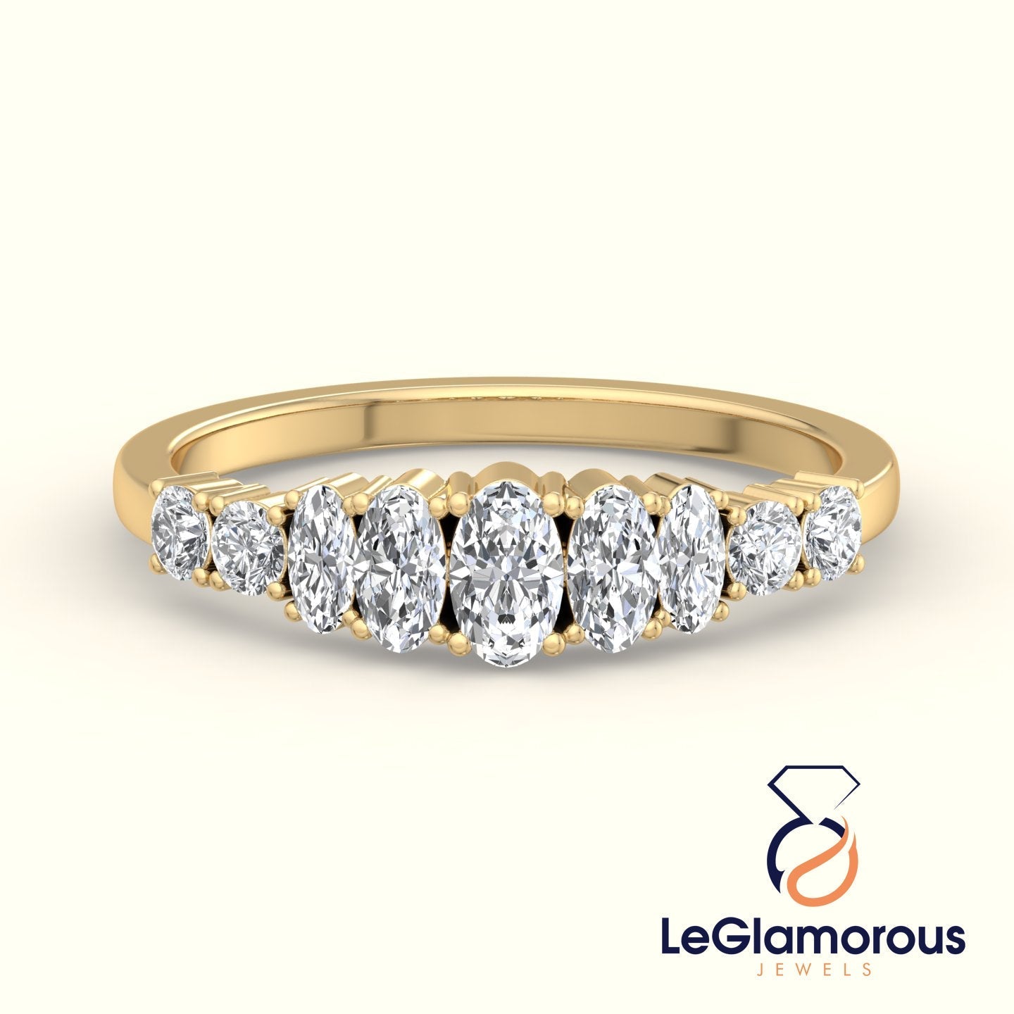 1.50 TCW Oval & Round Moissanite Diamond Half Eternity Band For Anniversary Ring Gift