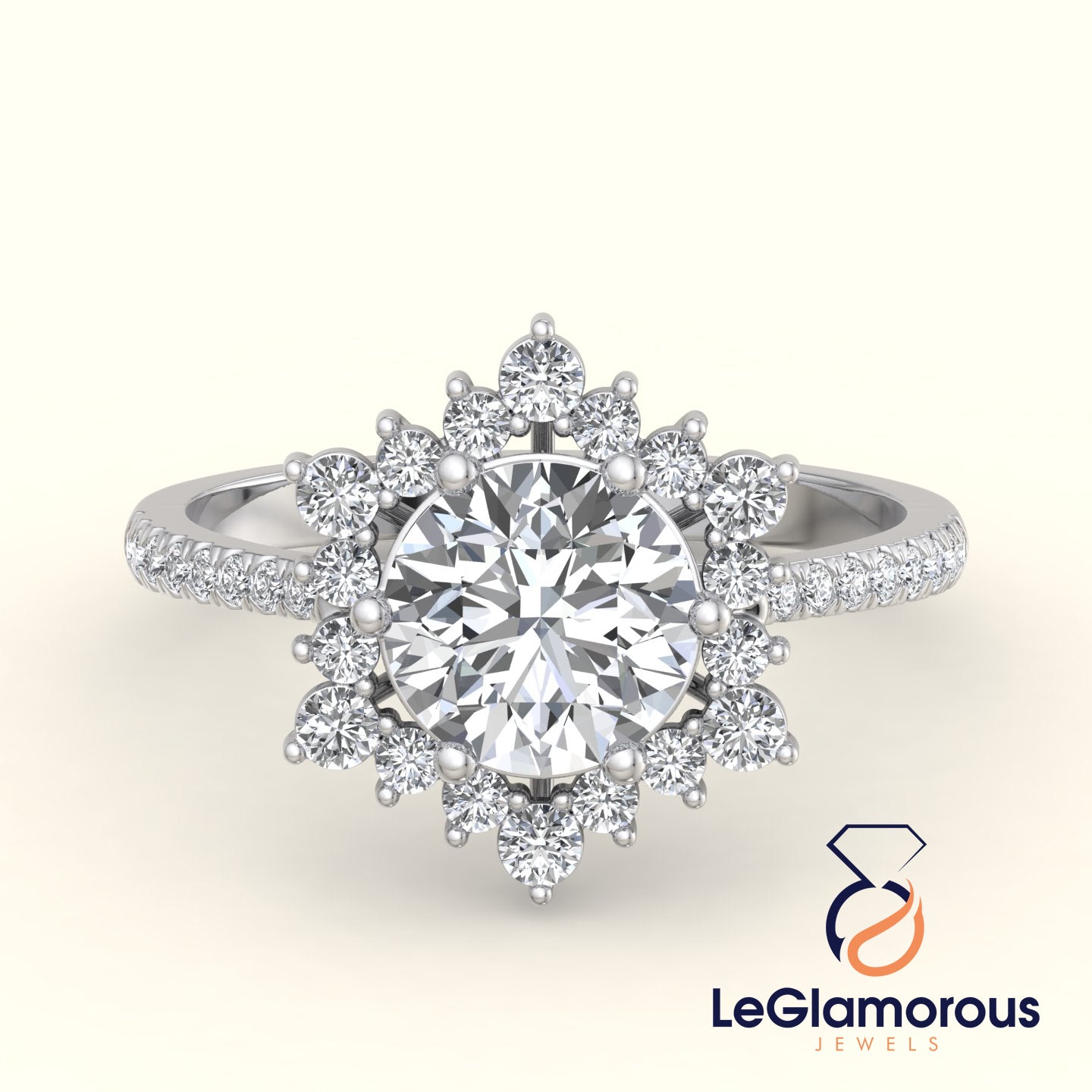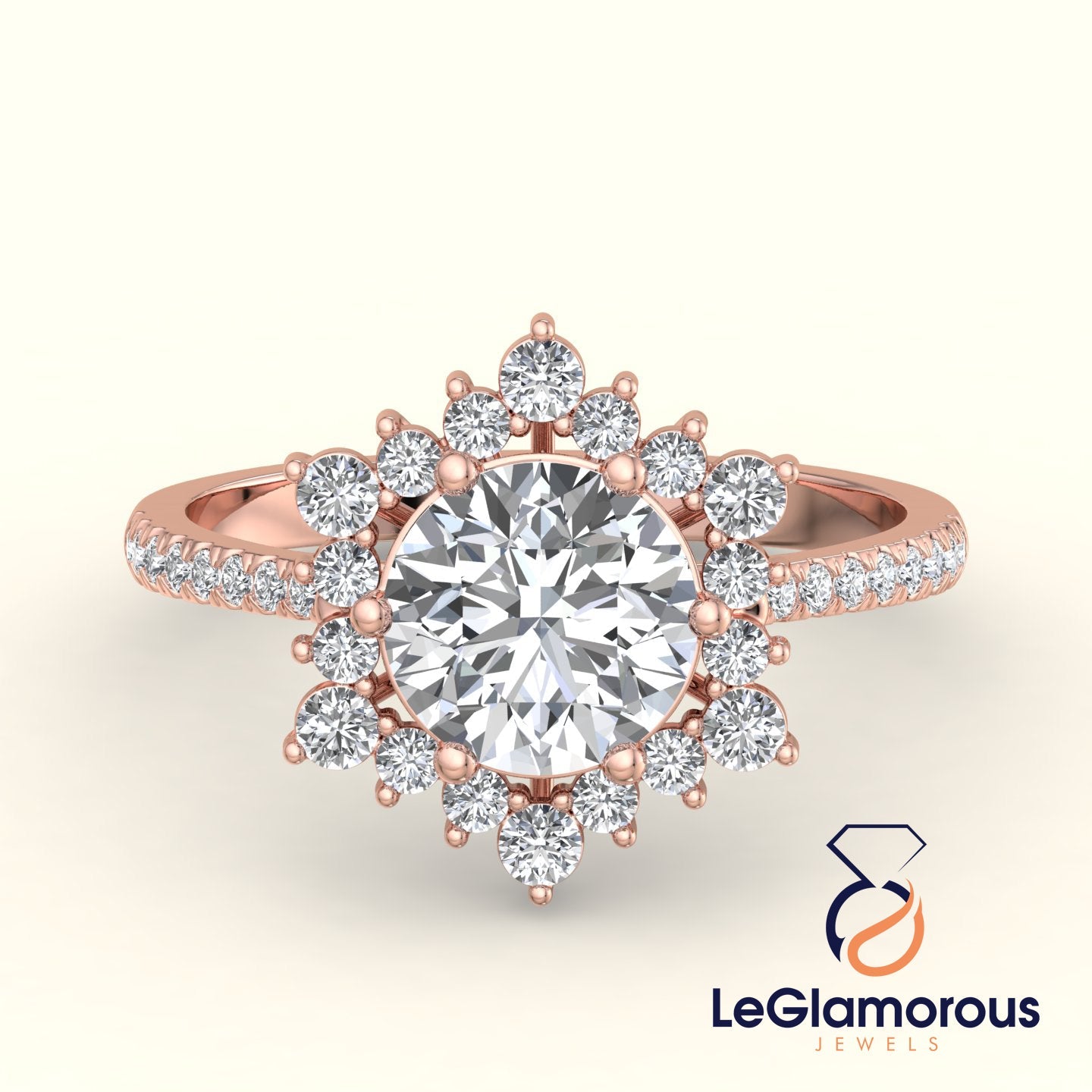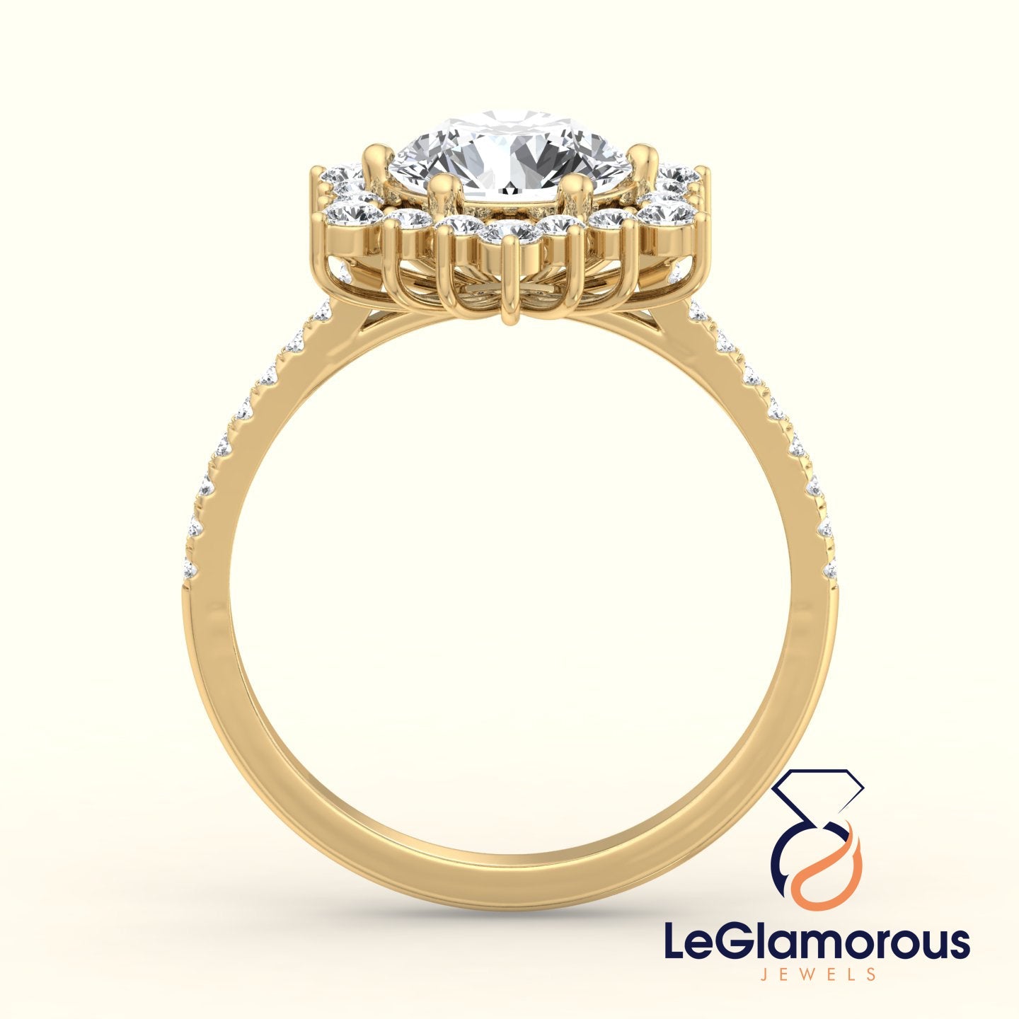 Star Round Cut Halo Engagement Ring For Wedding Gift