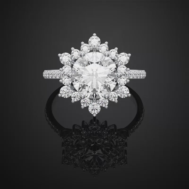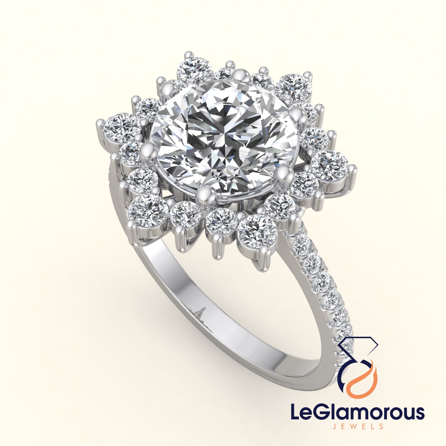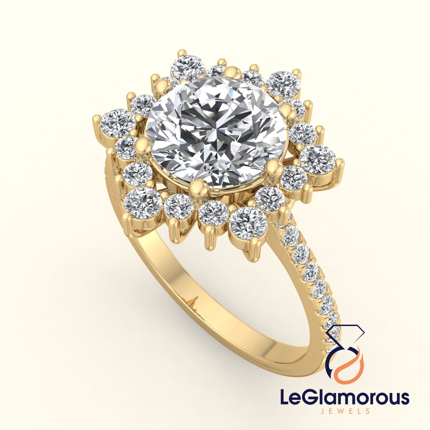 Star Round Cut Halo Engagement Ring For Wedding Gift