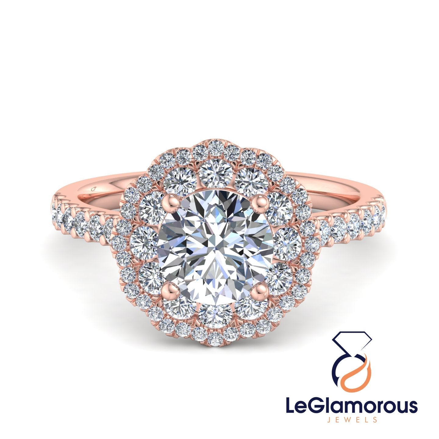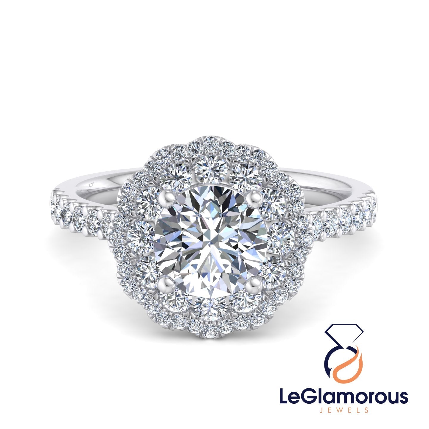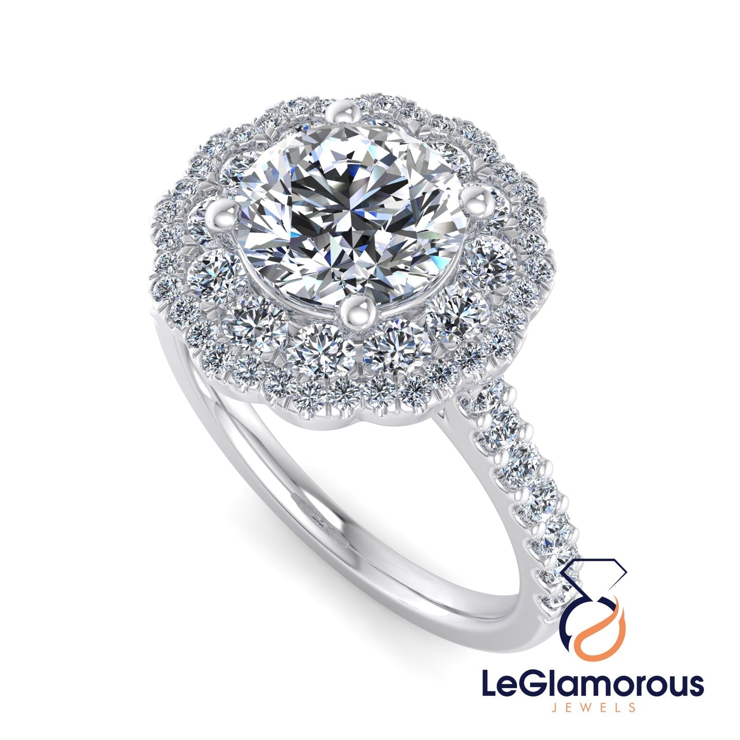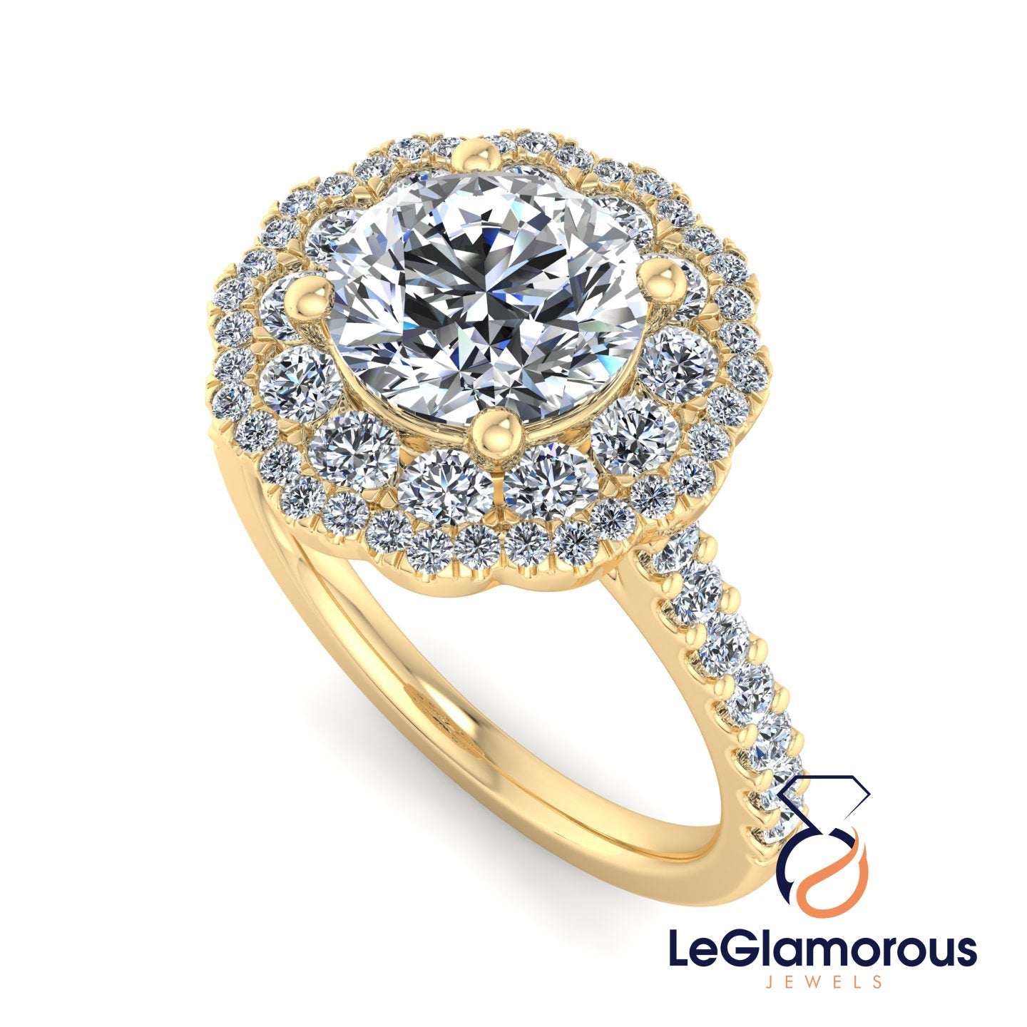 Doubel Halo Round Cut Moissanite Engagement Ring For Wedding Gift