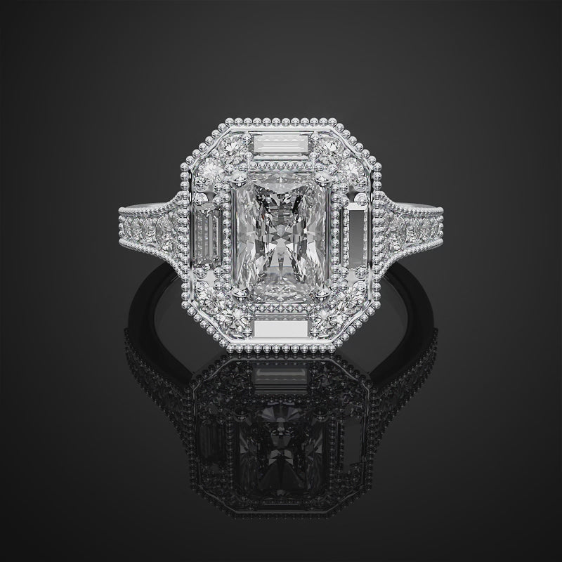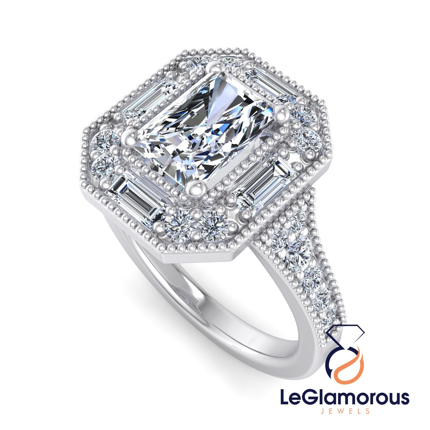 Radiant Cut Halo Lab Grown Diamond Engagement Ring For Anniversary Gift