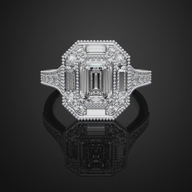 Emerald Cut Halo Lab Grown Diamond Engagement Ring For Anniversary Gift