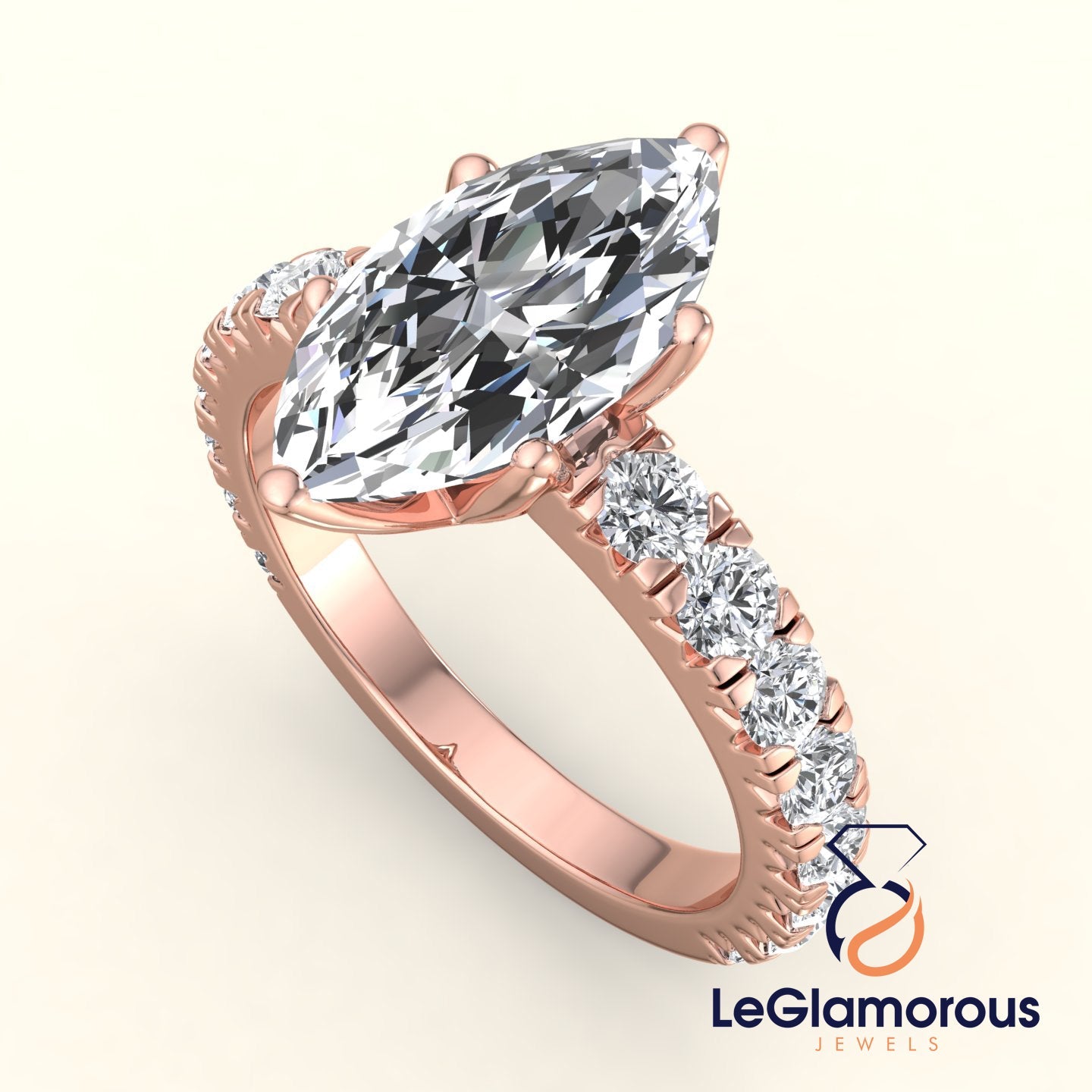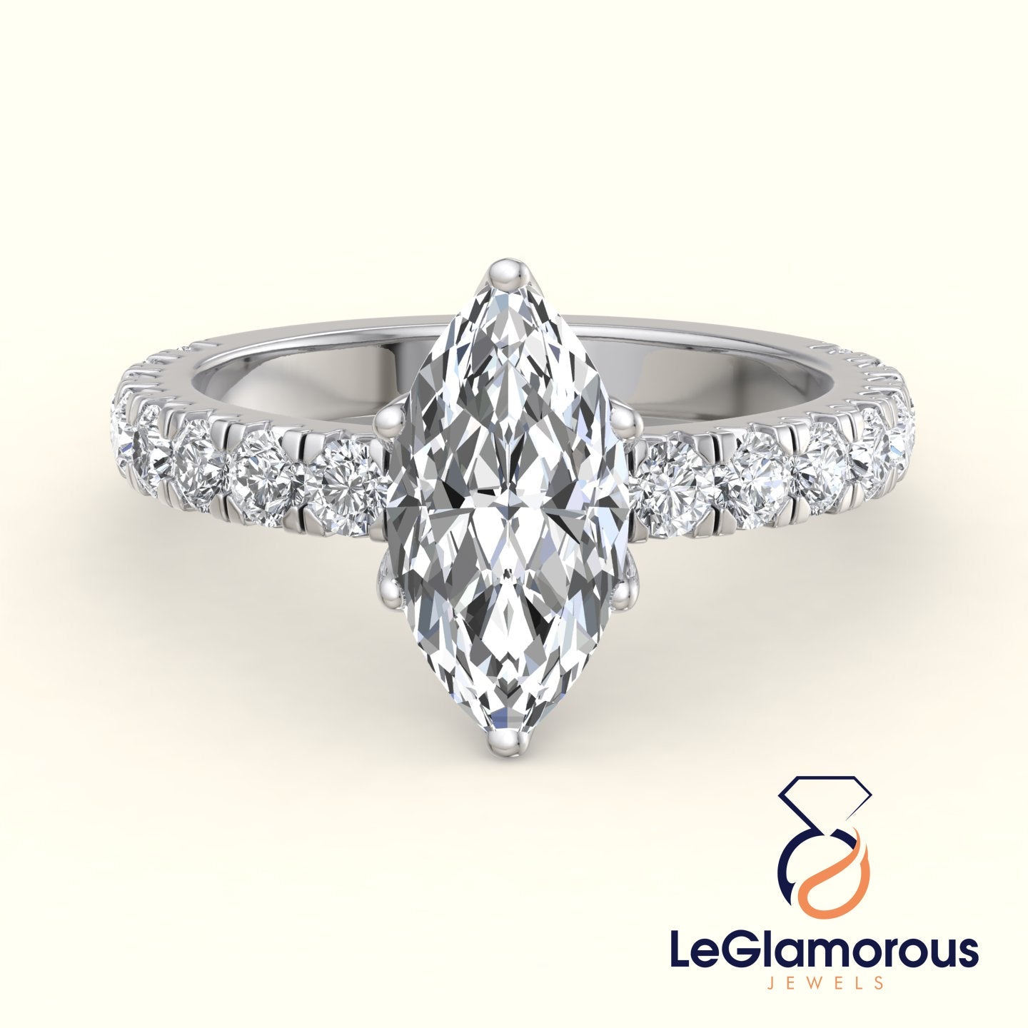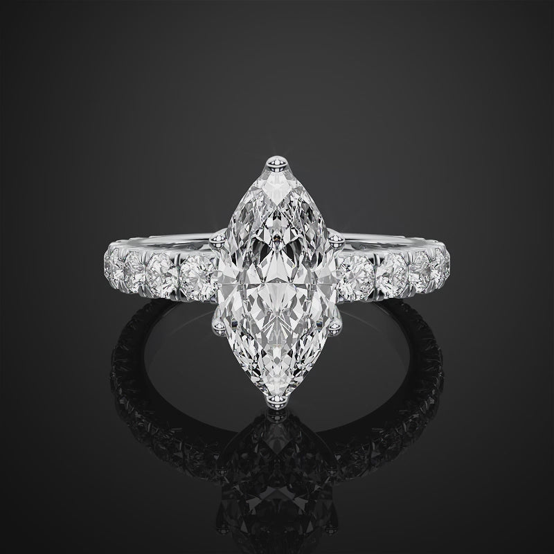 Marquise Cut Lab Grown Diamond Pave Setting Engagement Ring For Anniversay Gift