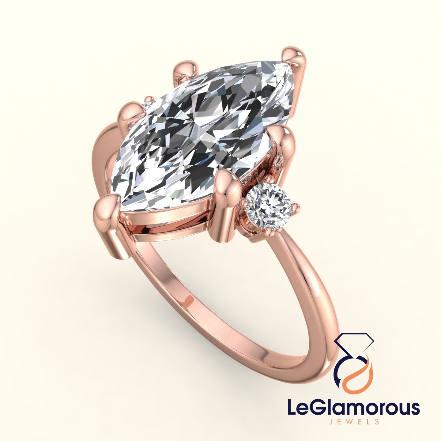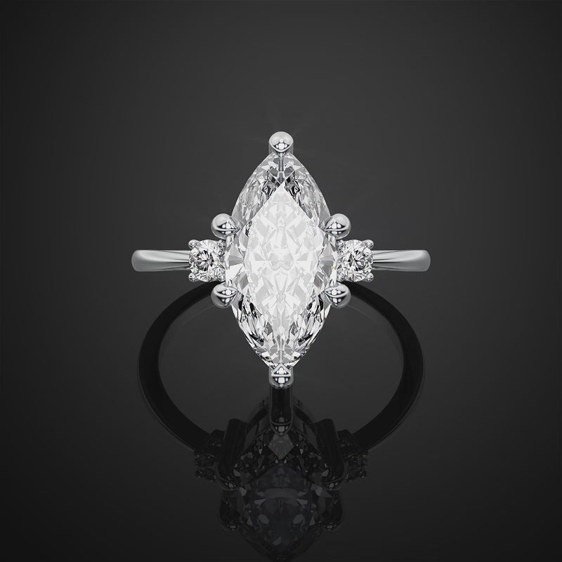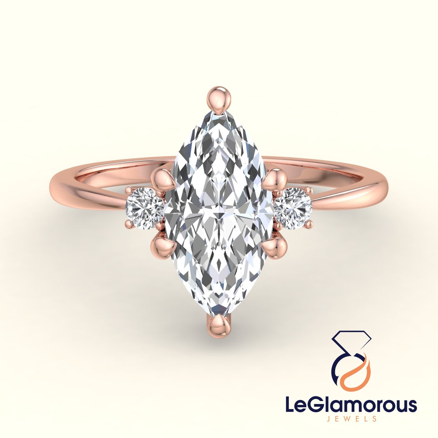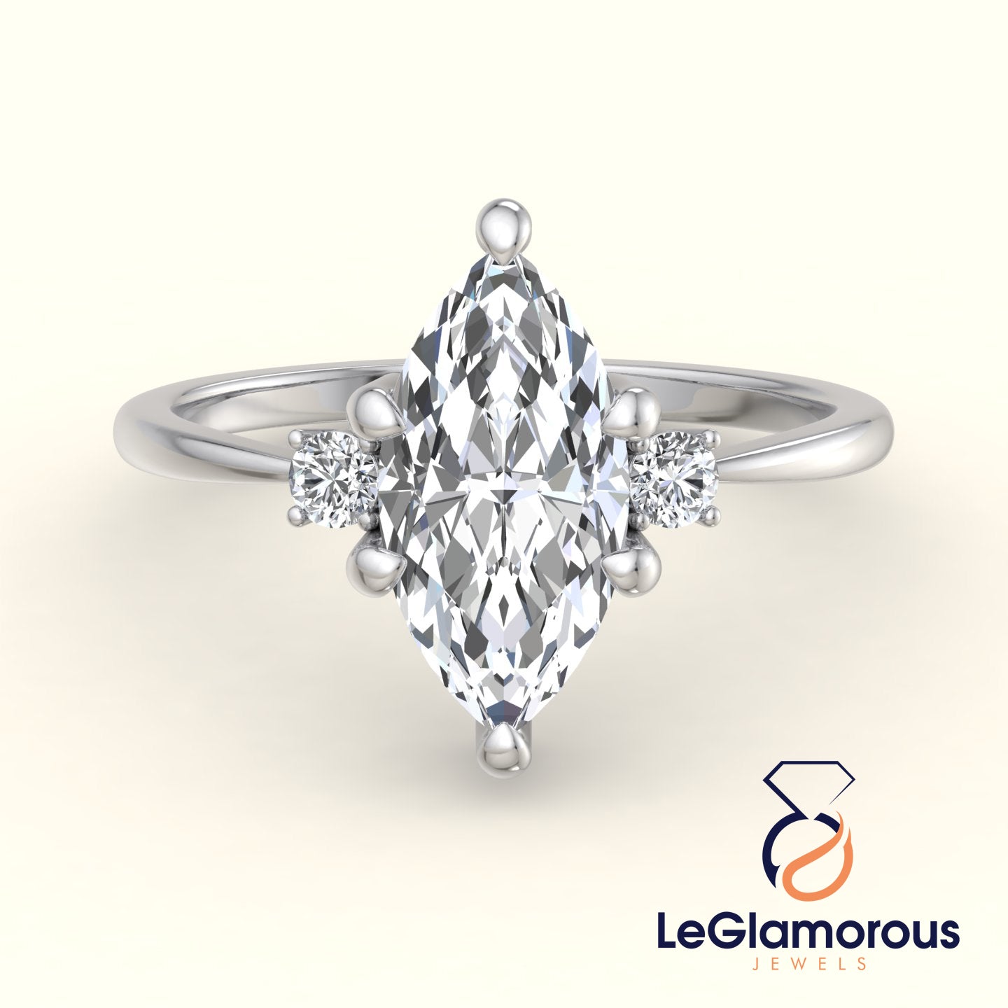 Marquise Cut Three Stone Engagement Ring For Anniversary Gift