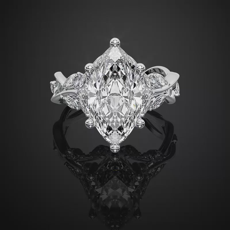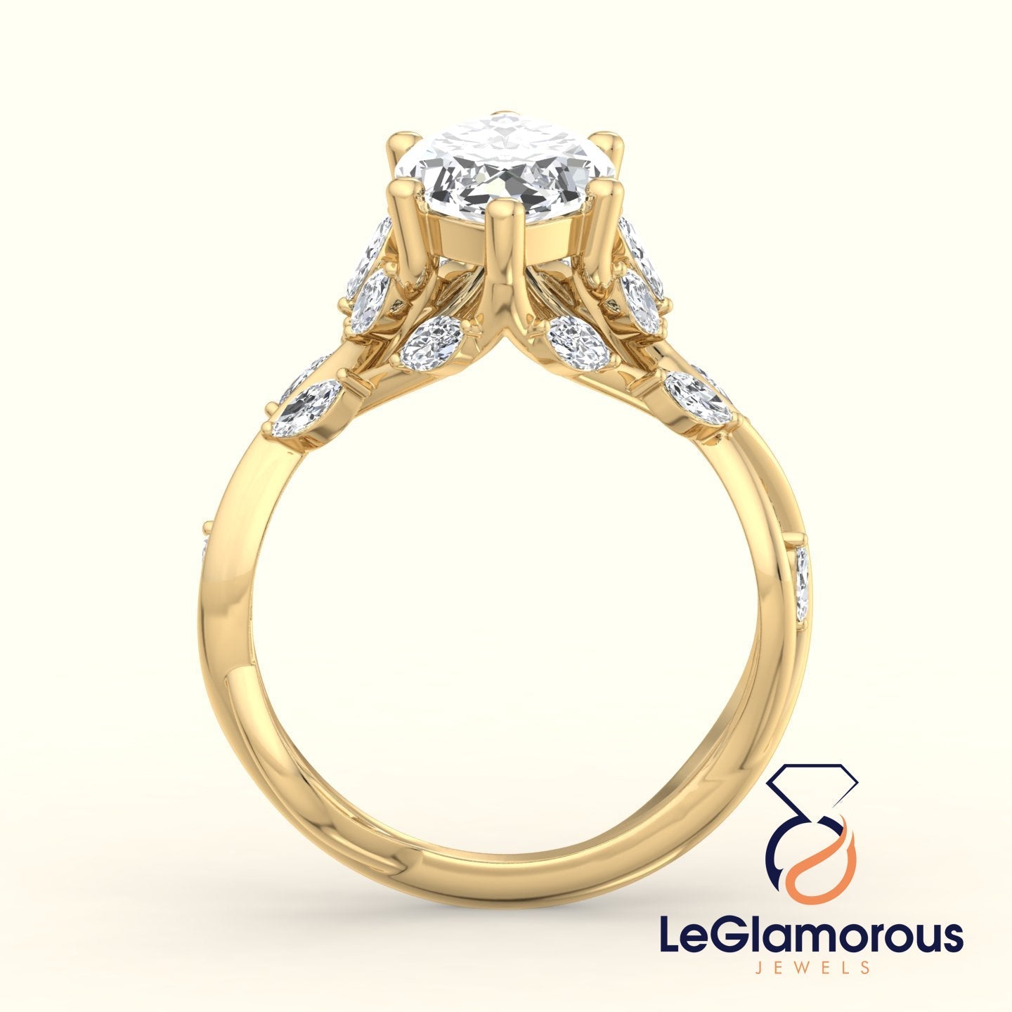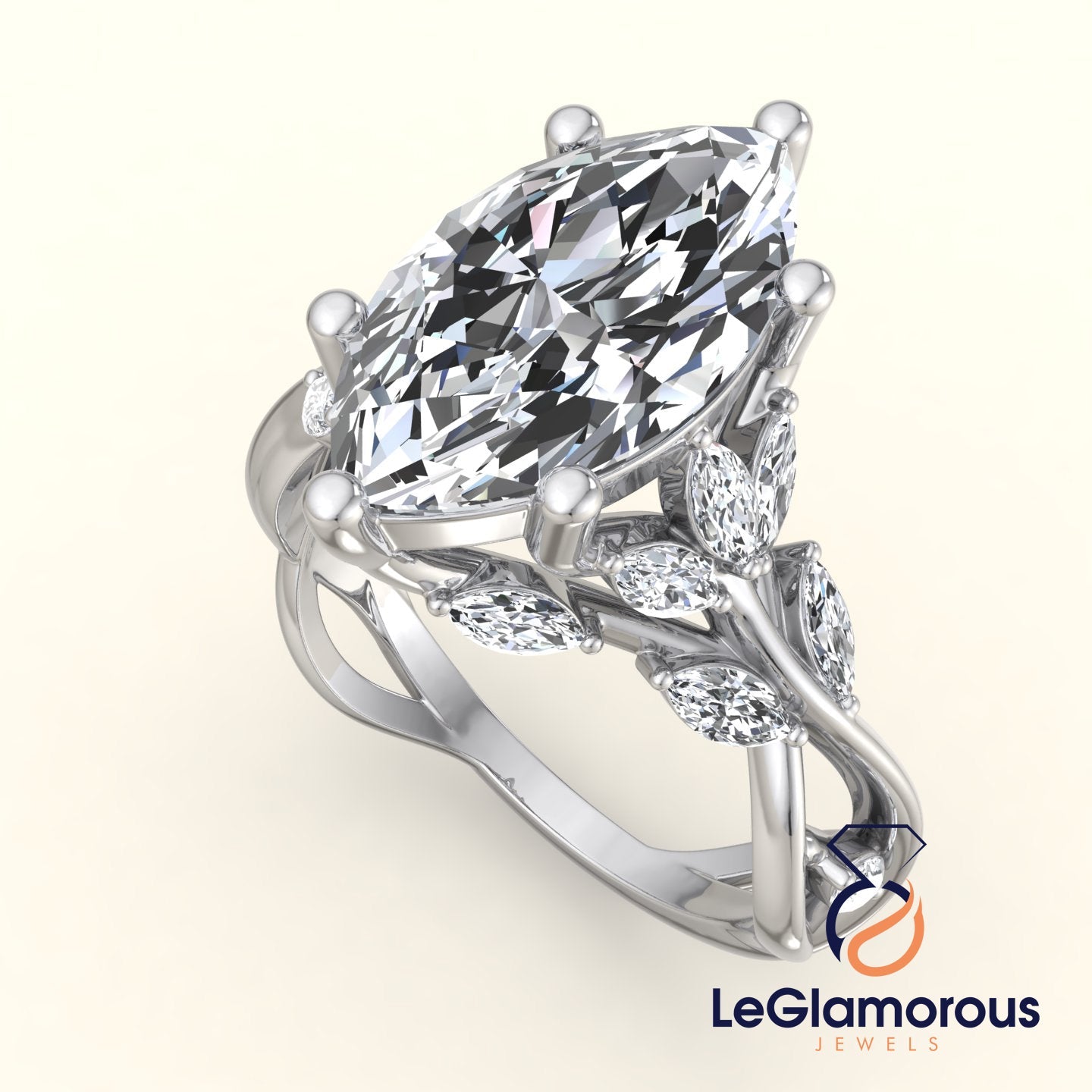 Flower Vintage Marquise Cut Moissanite Engagement Ring For Anniversary Gift