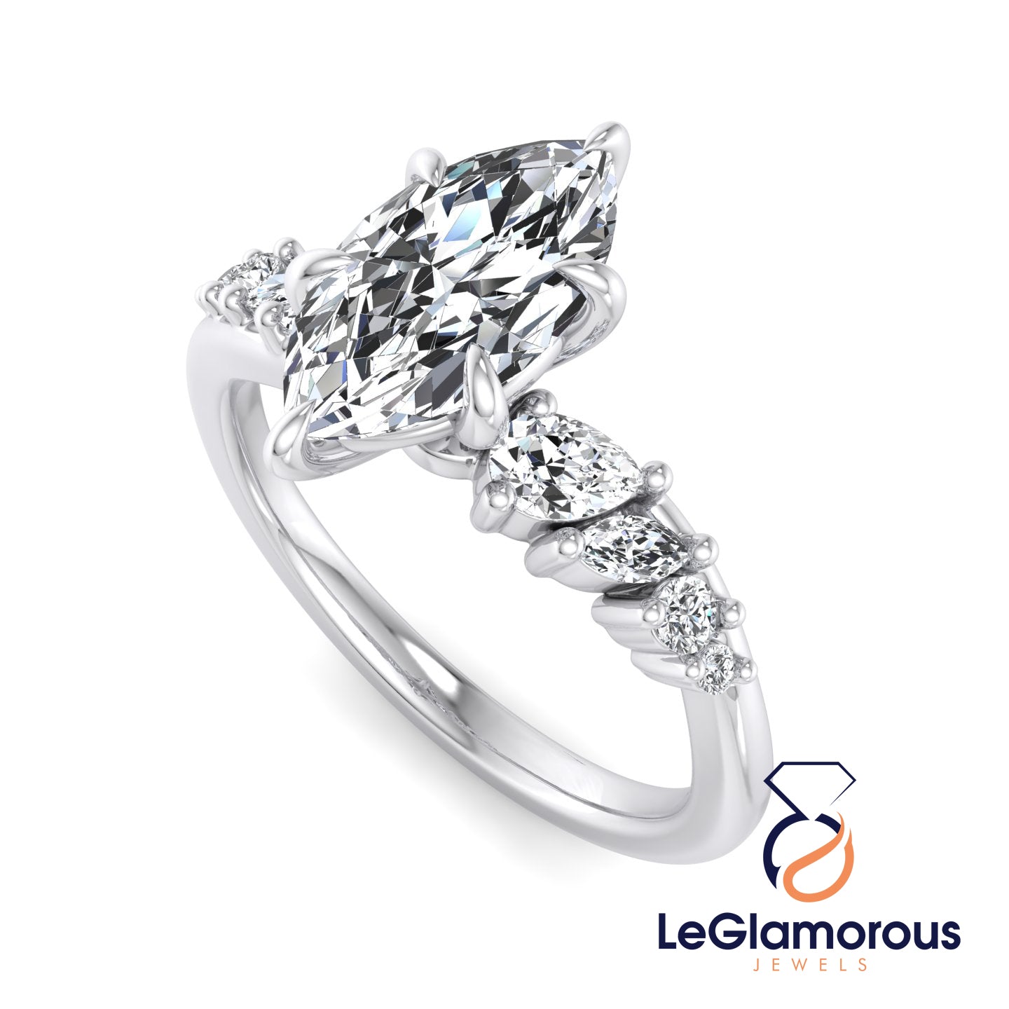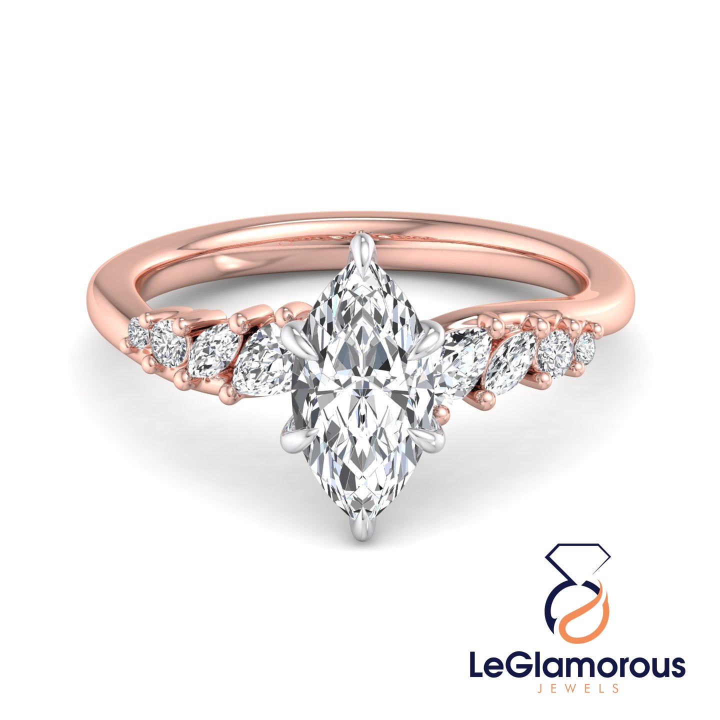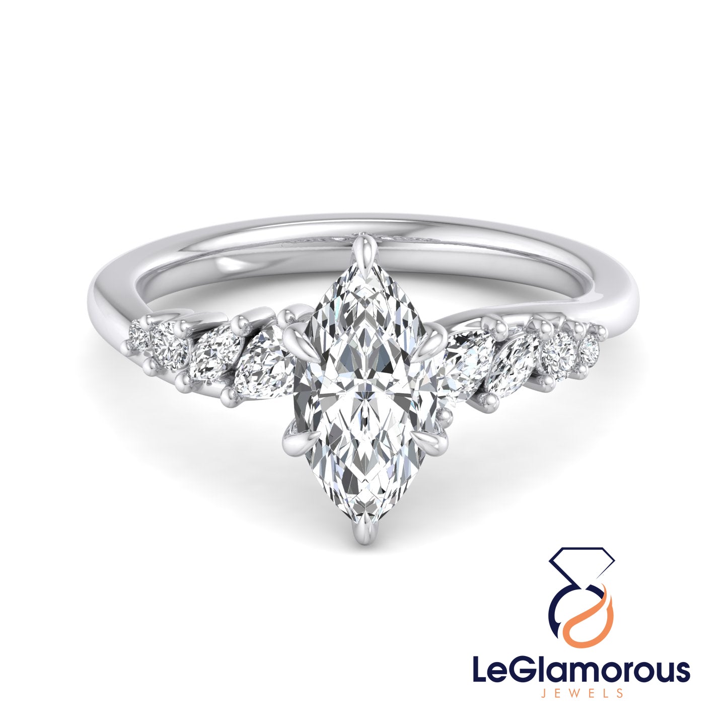 Marquise Cut Pave Style Lab Grown Diamond Engagement Ring For Wedding Gift
