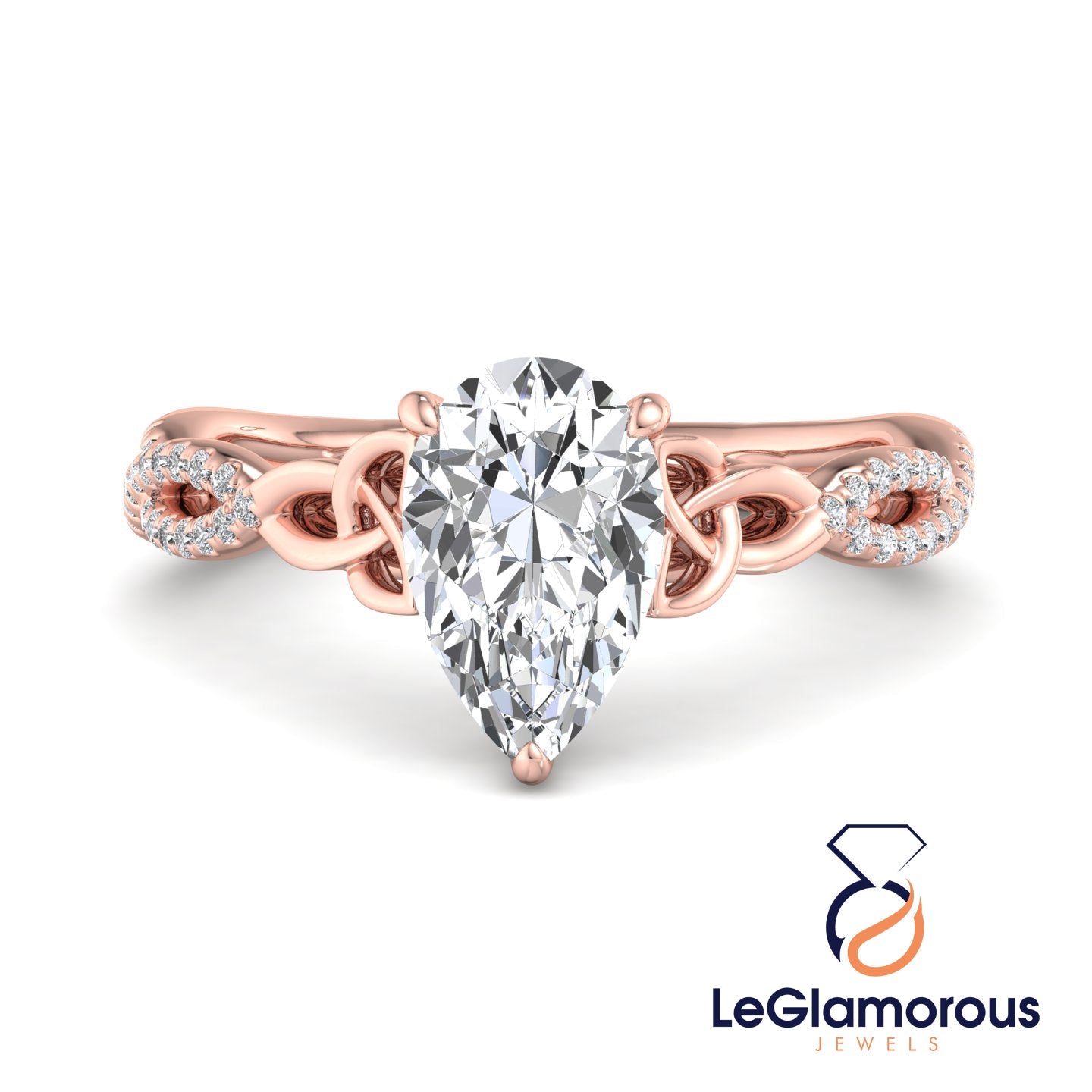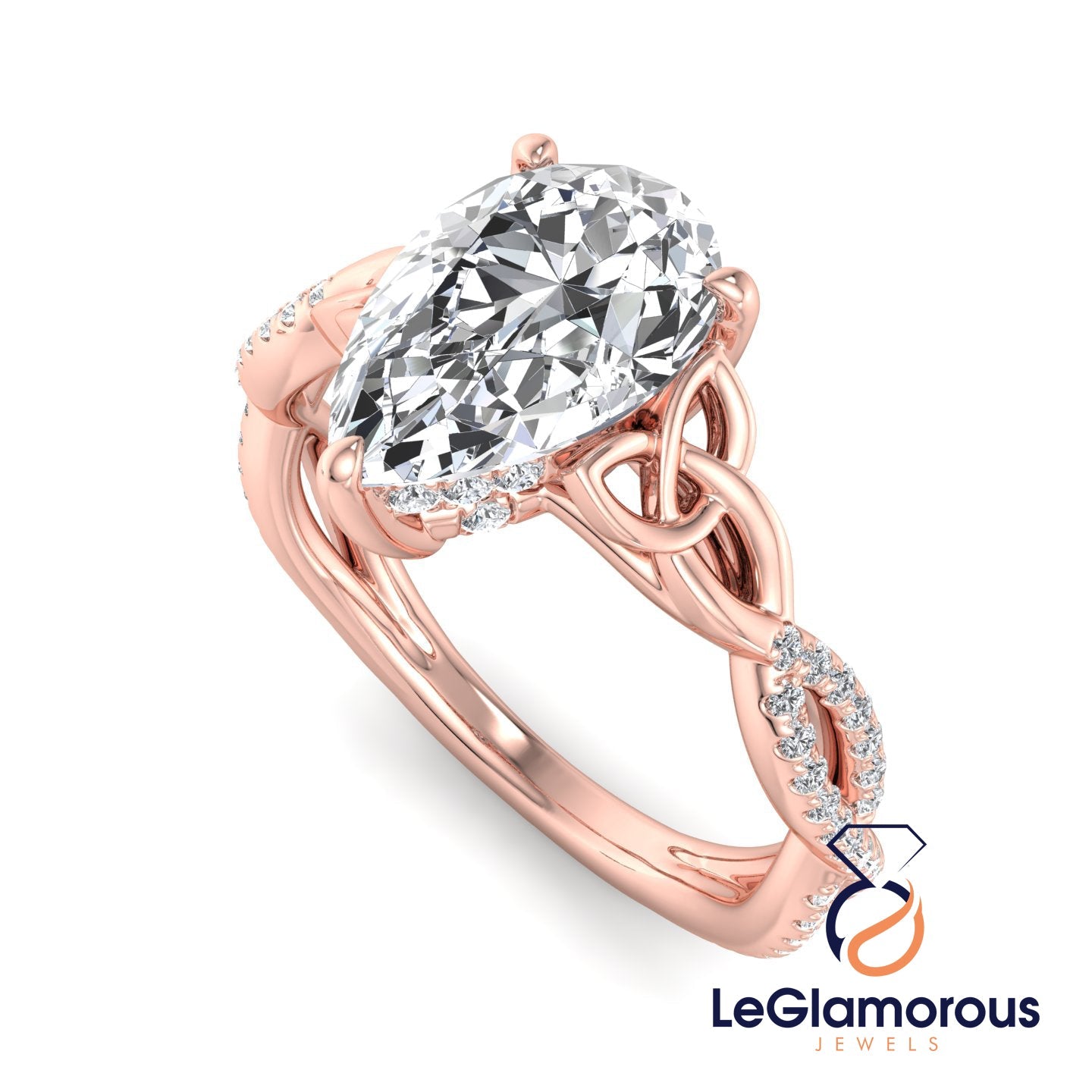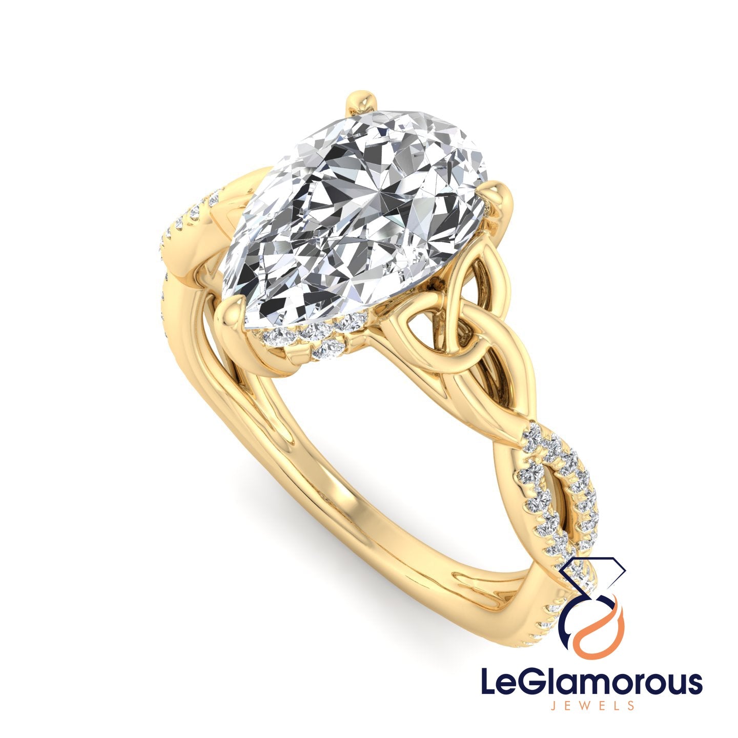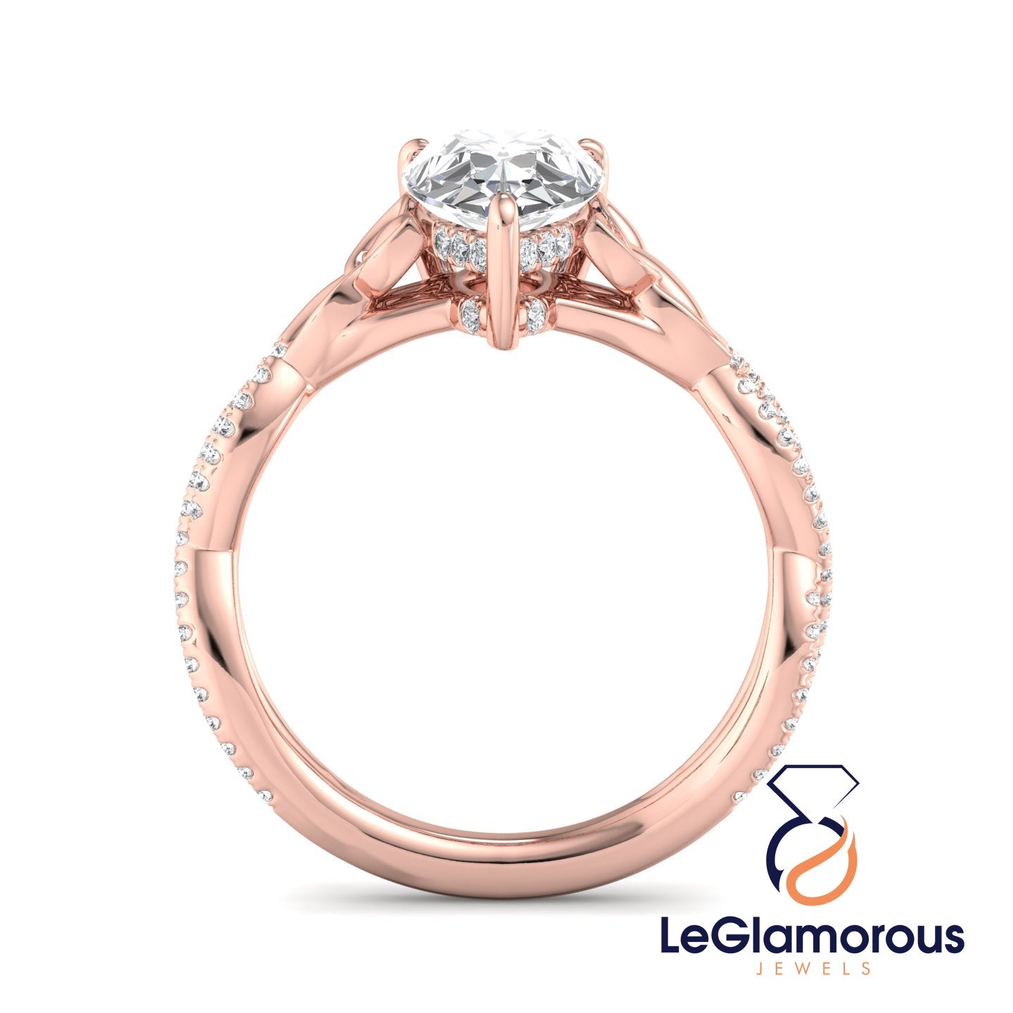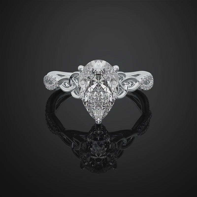 Hidden Halo Pear Cut Pave Style Lab Grown Diamond Engagement Ring For Wedding Gift