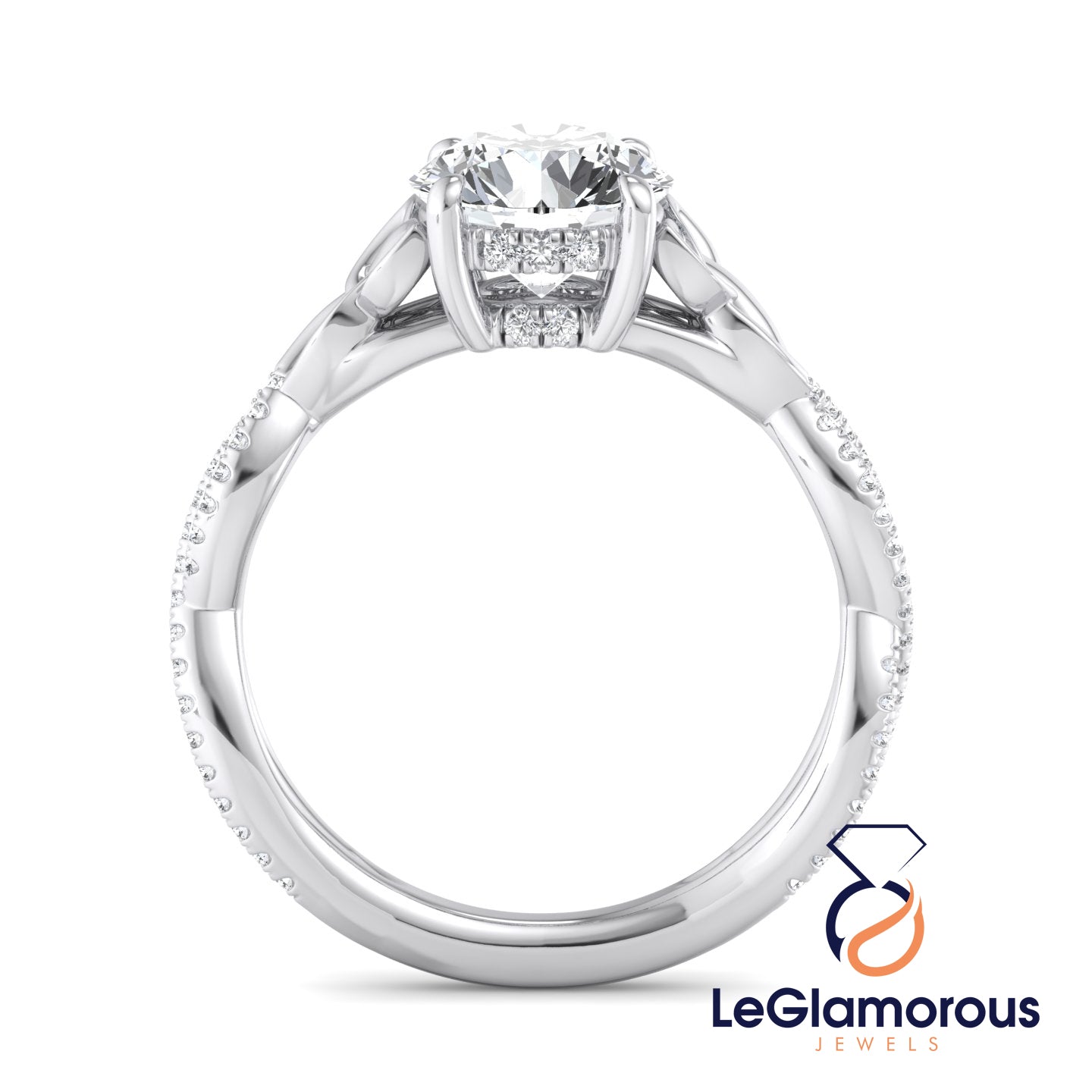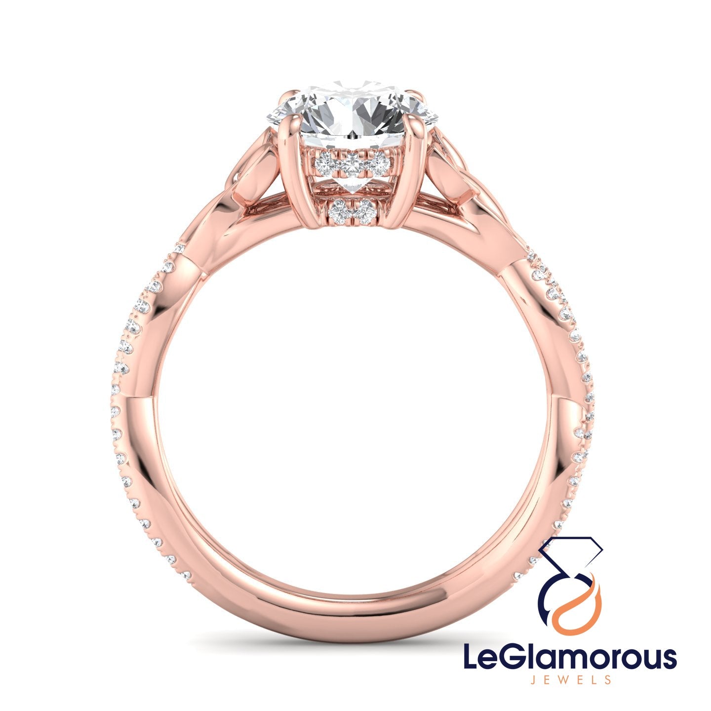 Hidden Halo Round Cut Pave Style Lab Grown Diamond Engagement Ring For Wedding Gift