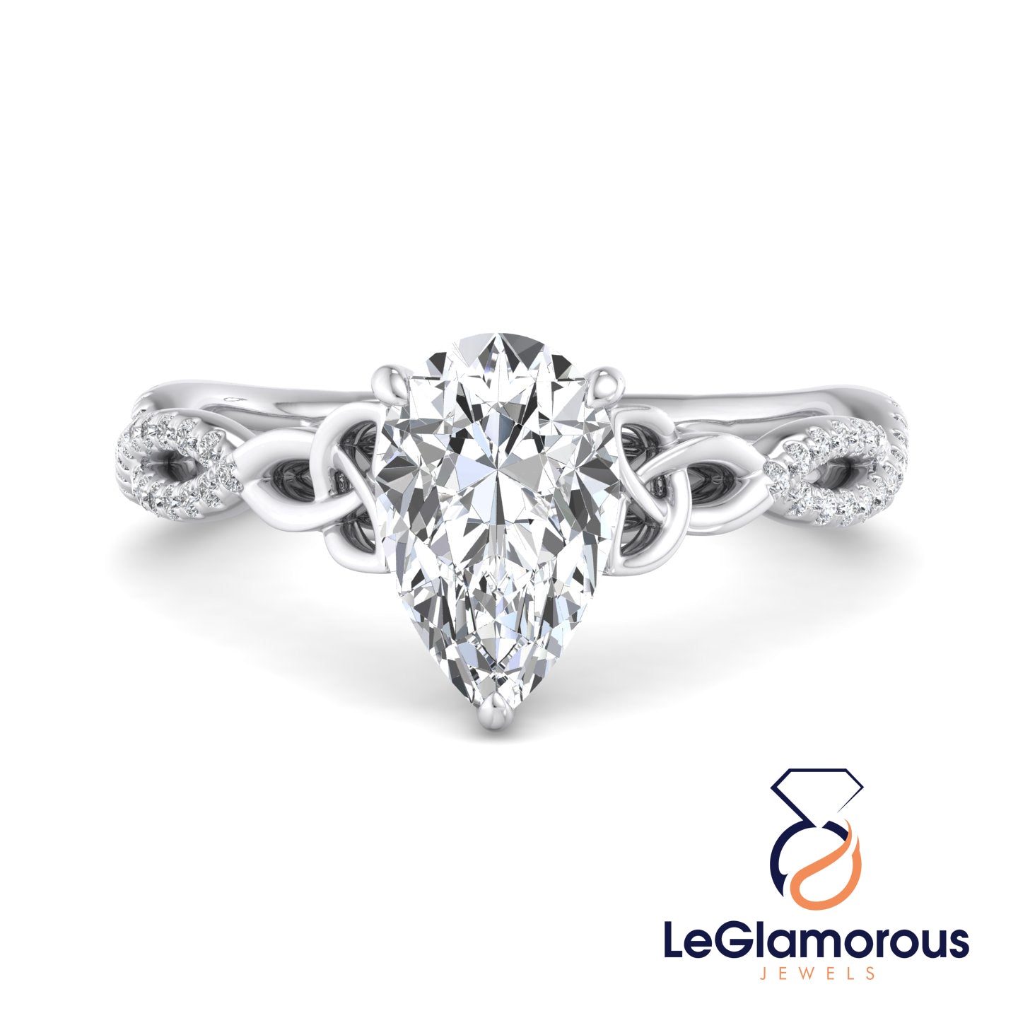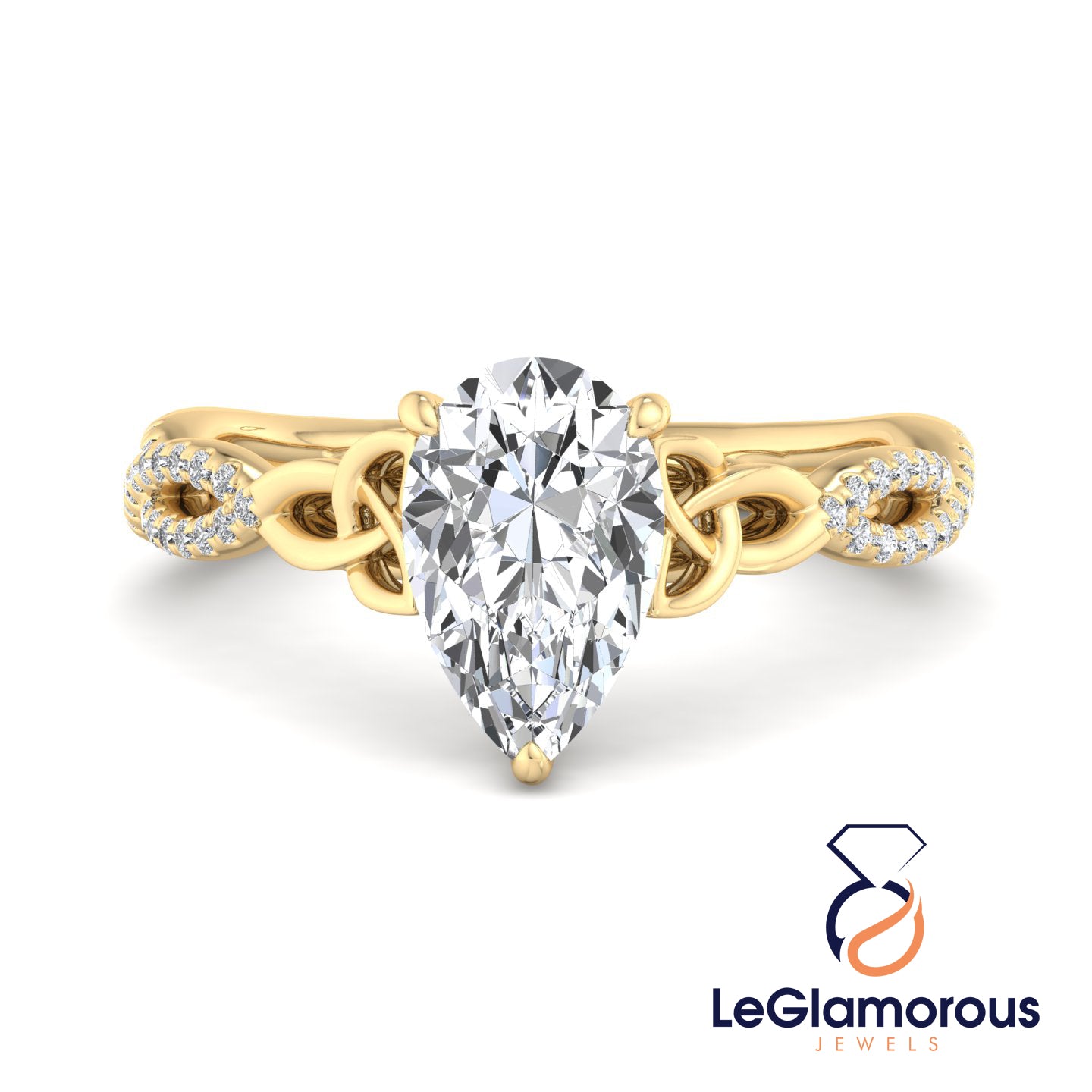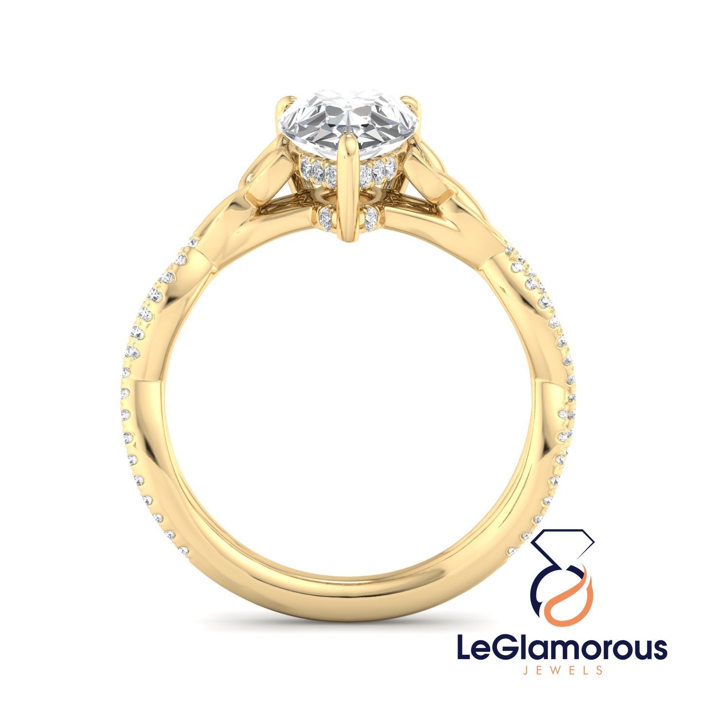 Hidden Halo Pear Cut Pave Style Moissanite Diamond Engagement Ring For Wedding Gift