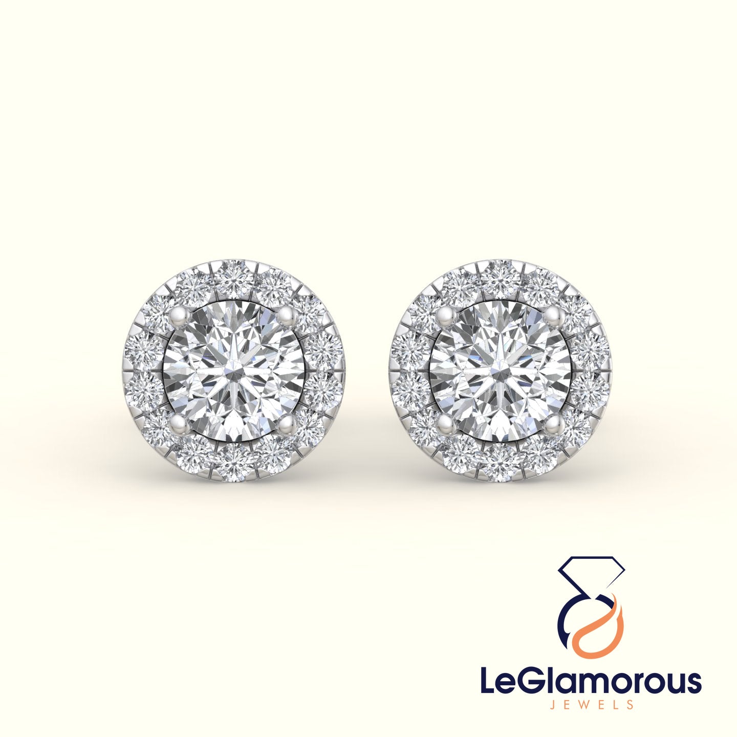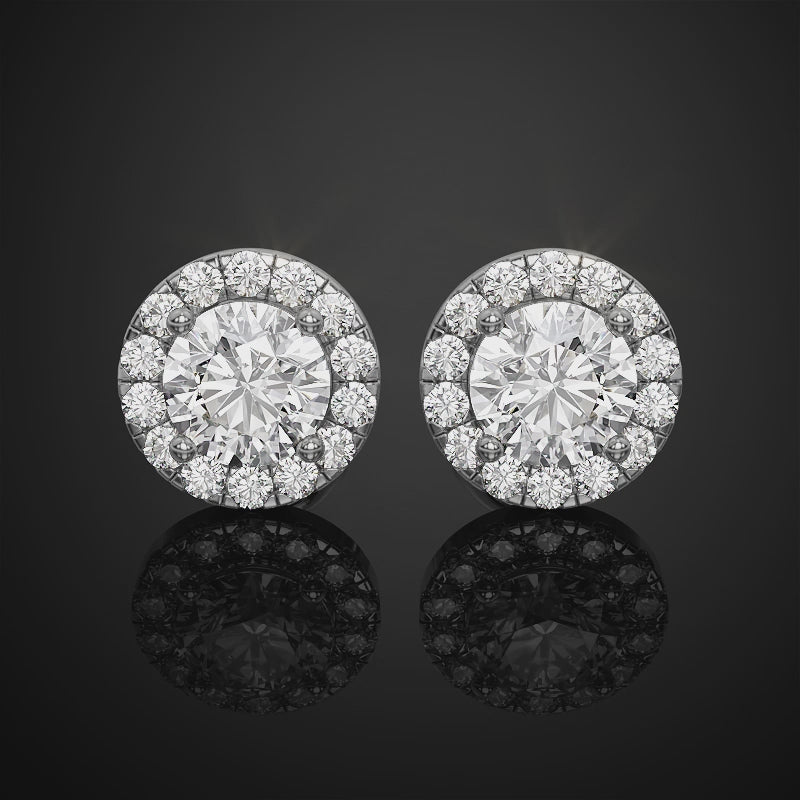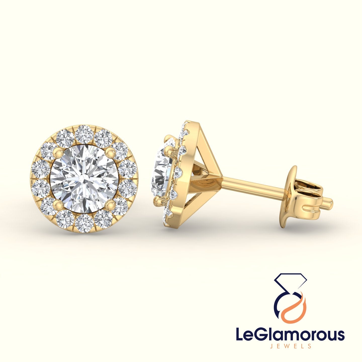 Round Diamond Stud Earrings, EF/VS Lab Created Diamond Halo Wedding Earrings, Diamond Studs for Women