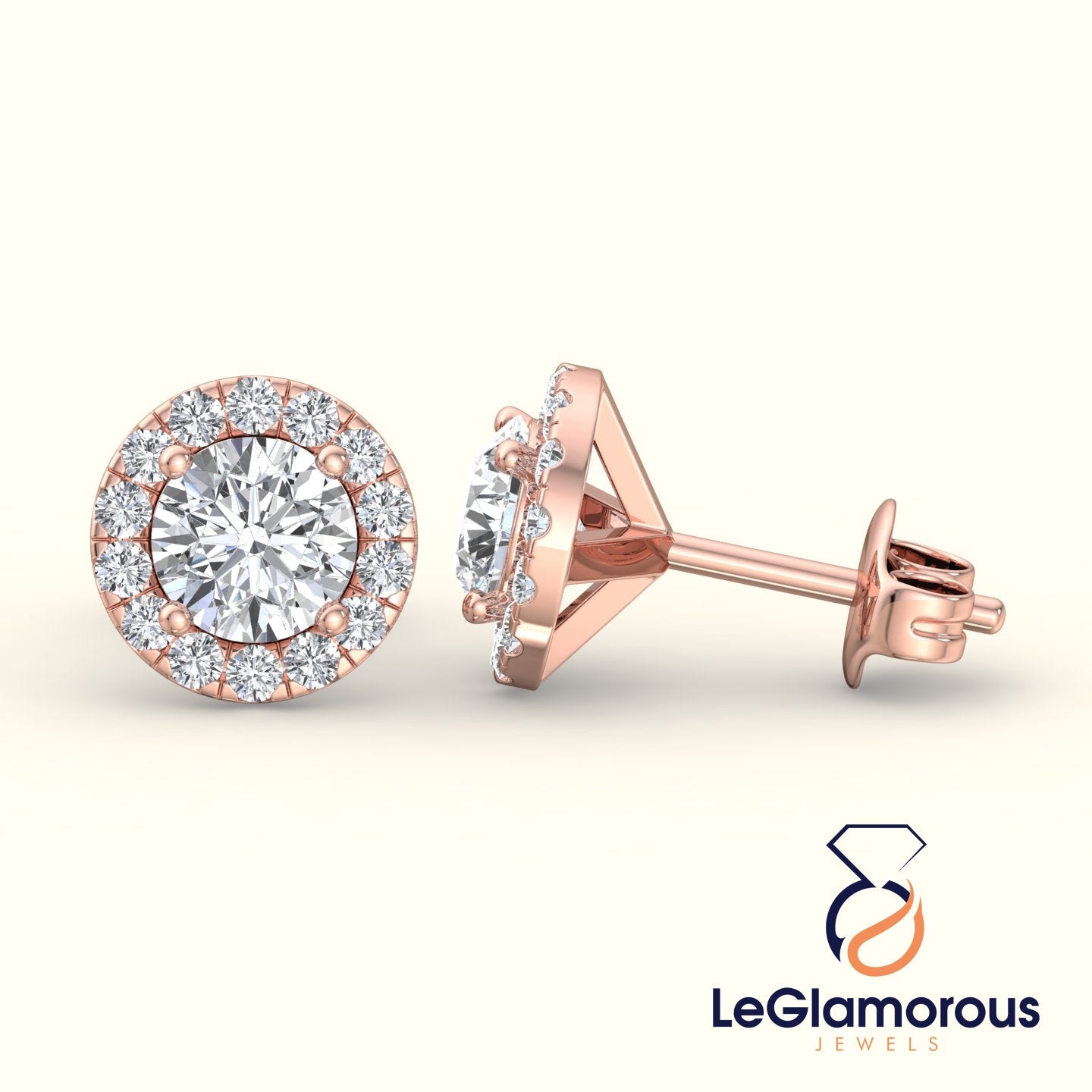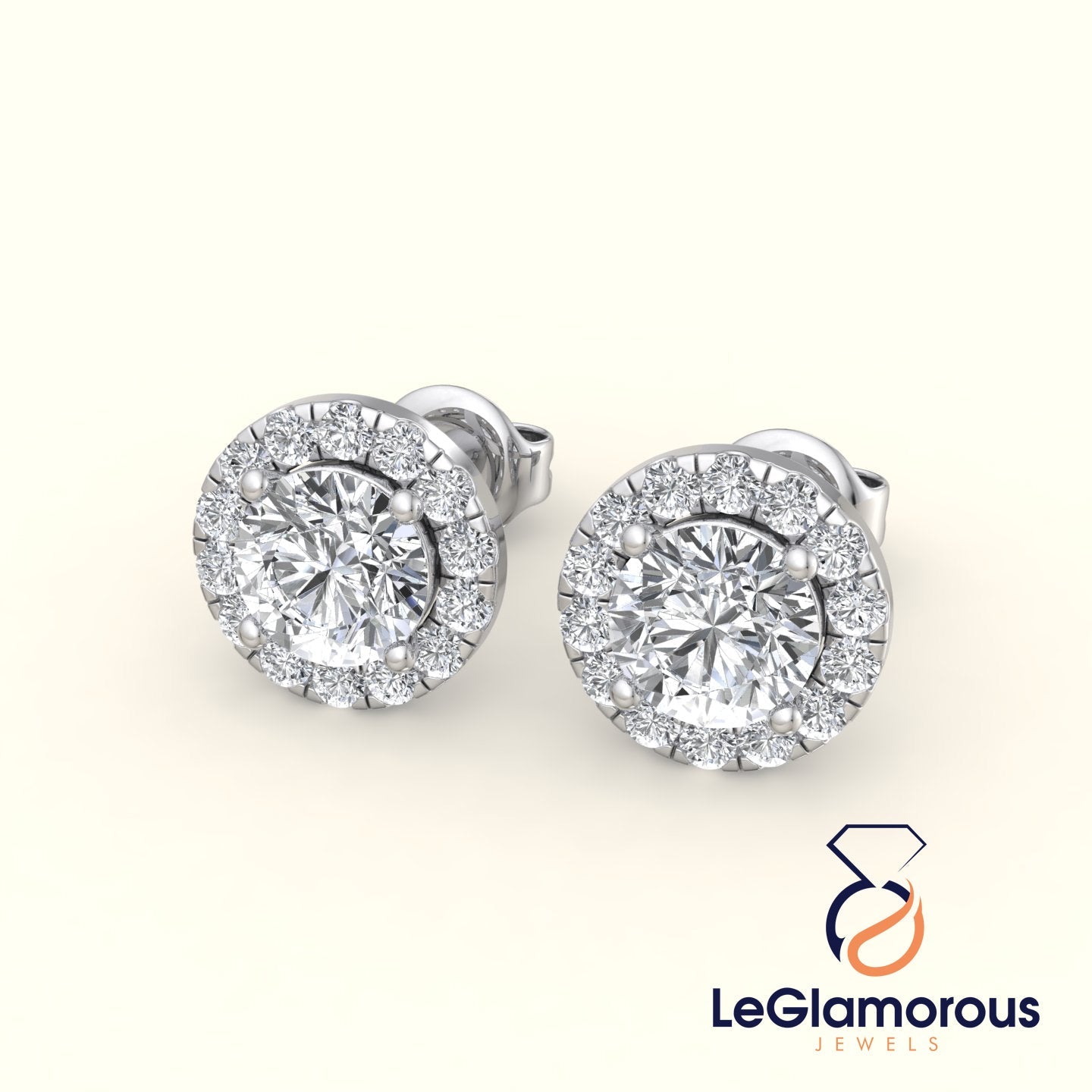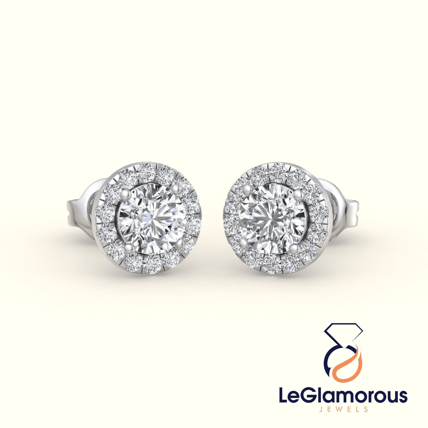 Round Diamond Stud Earrings, EF/VS Lab Created Diamond Halo Wedding Earrings, Diamond Studs for Women