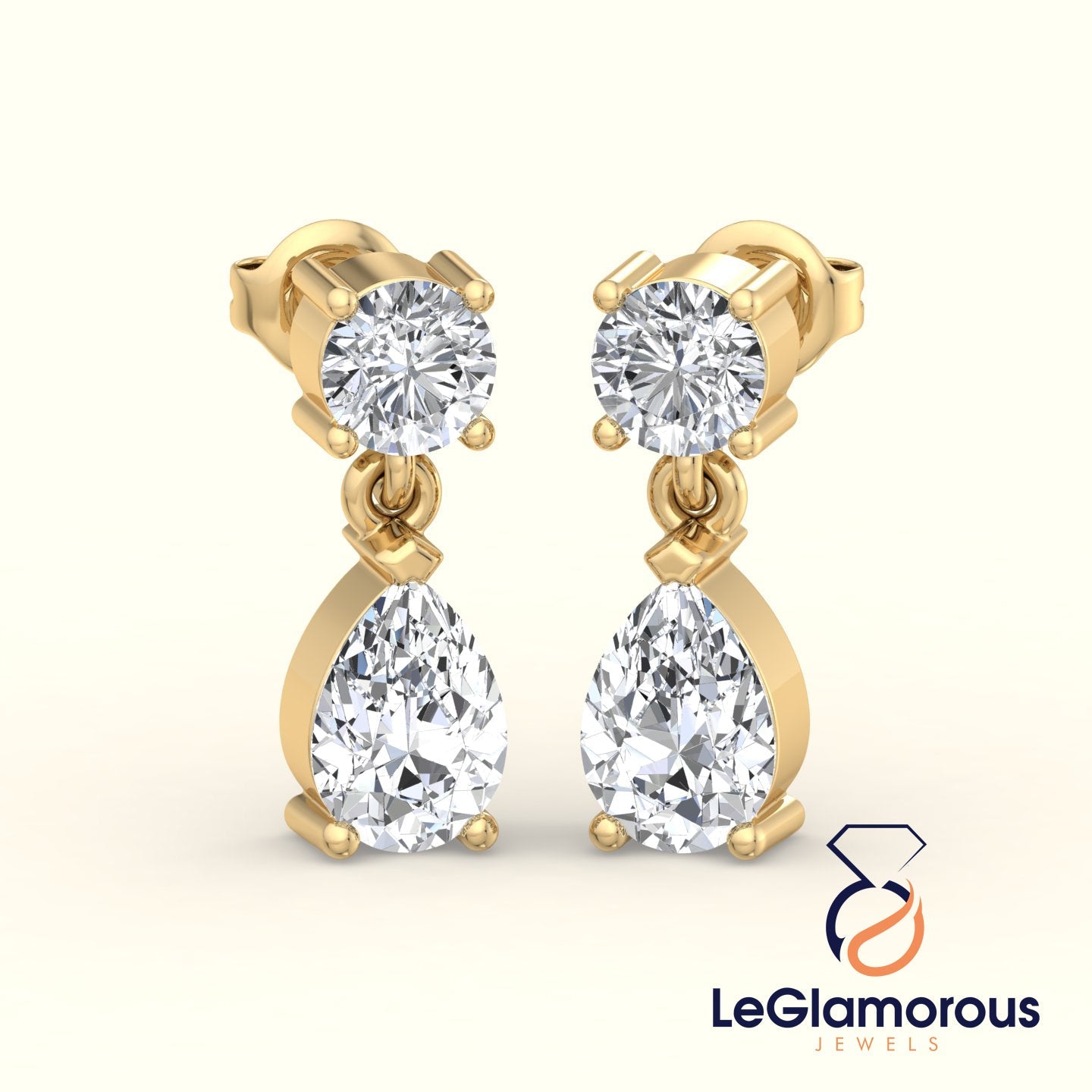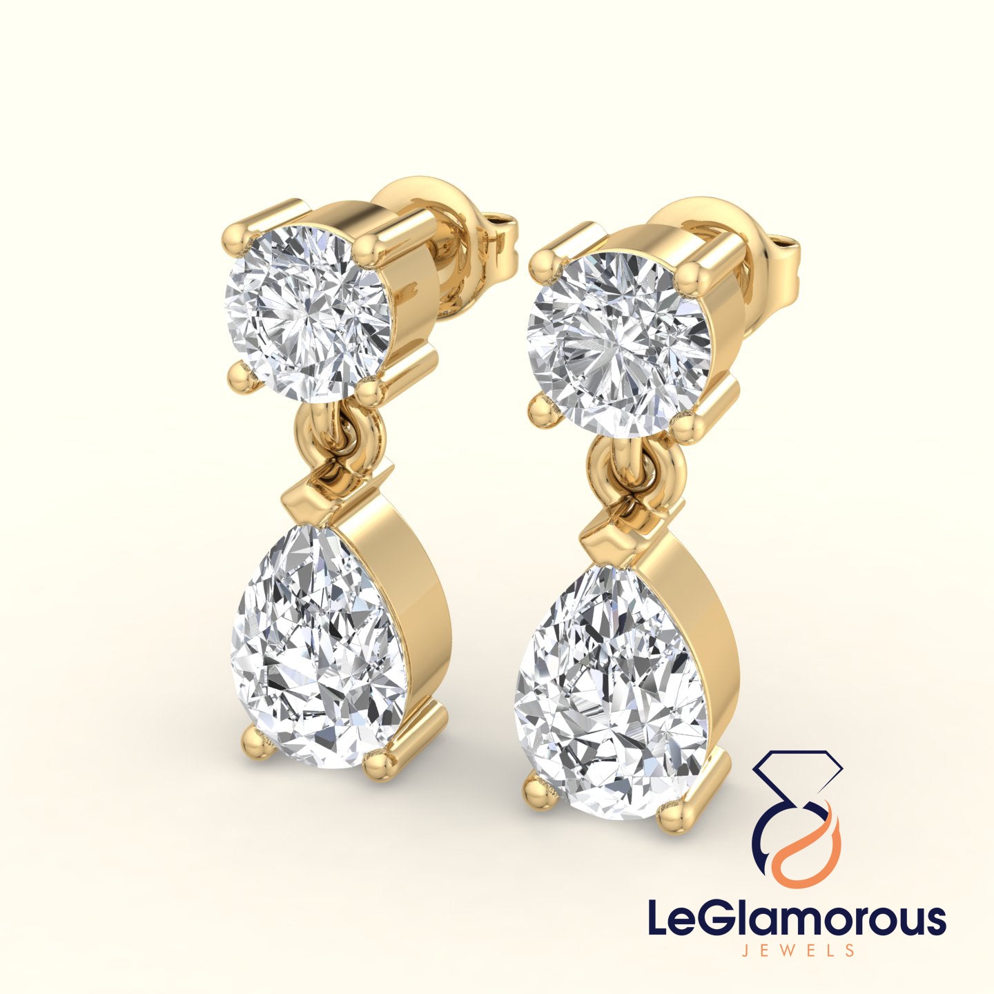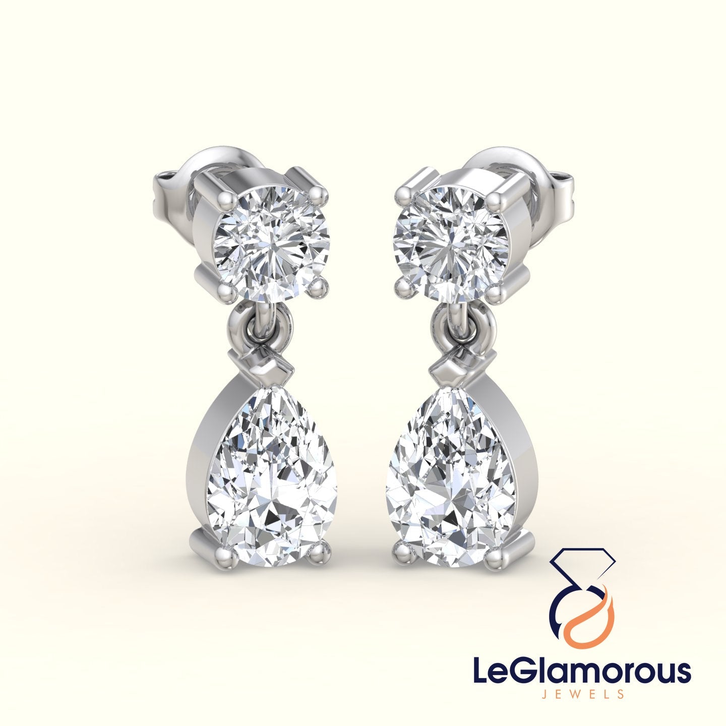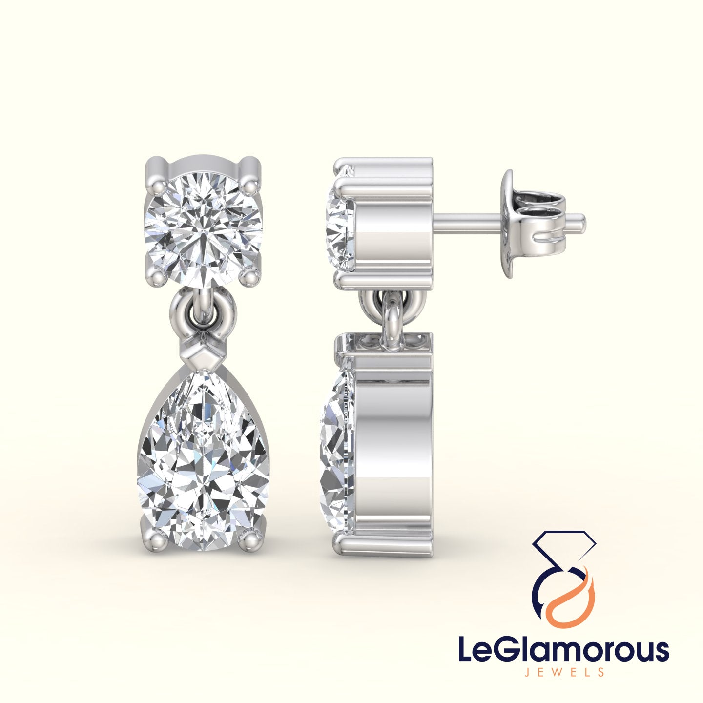 2.00 TCW Pear and Round Cut Lab Grown Diamond Earrings, Dangle Drop Earrings, EF/VS Lab Created Diamond Wedding Earrings