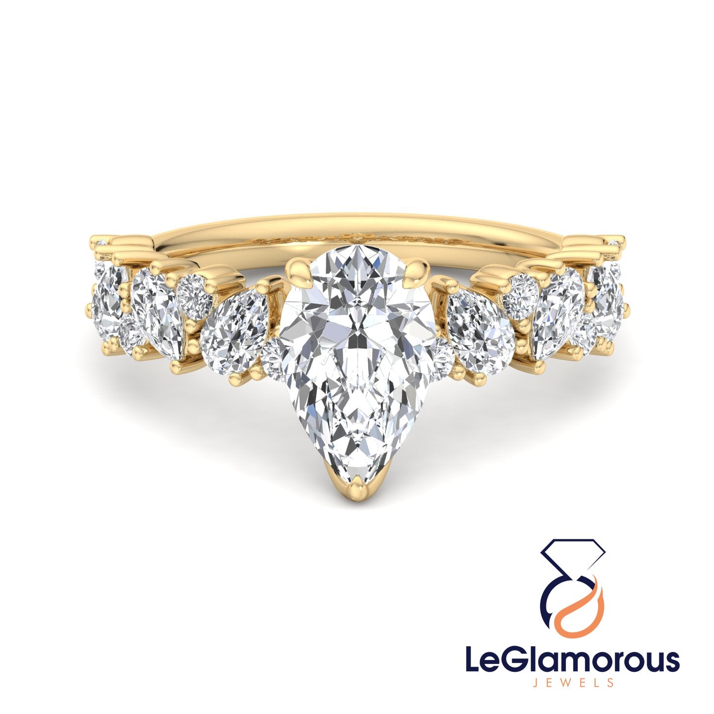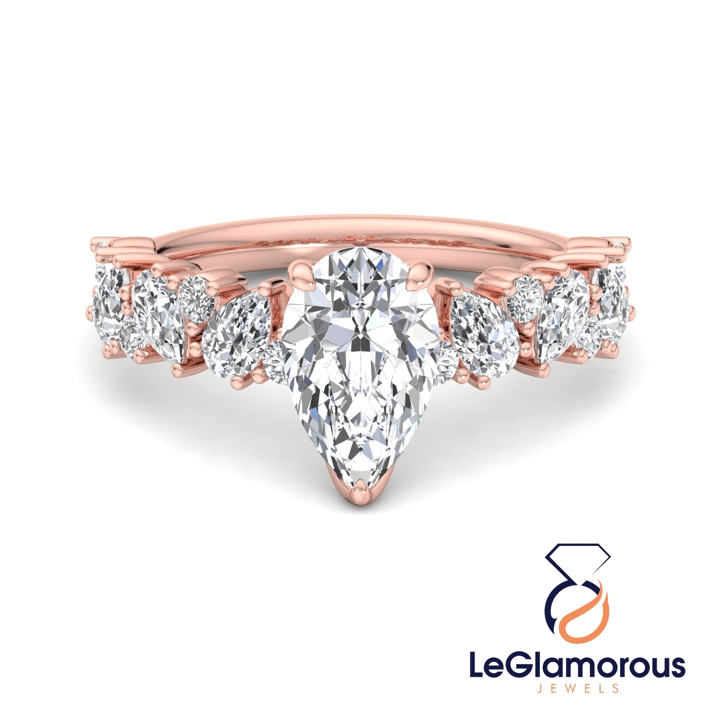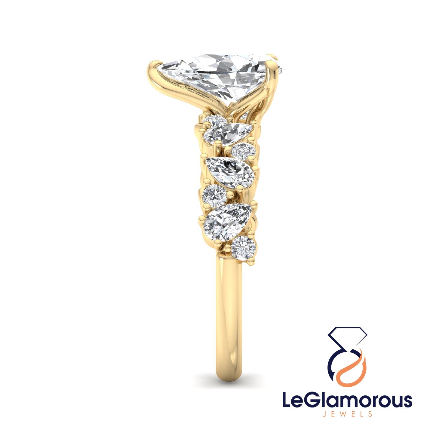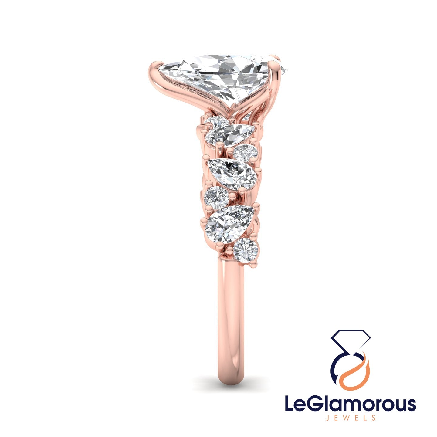 Pear Cut Pave Style Lab Grown Diamond Engagement Ring For Wedding Gift