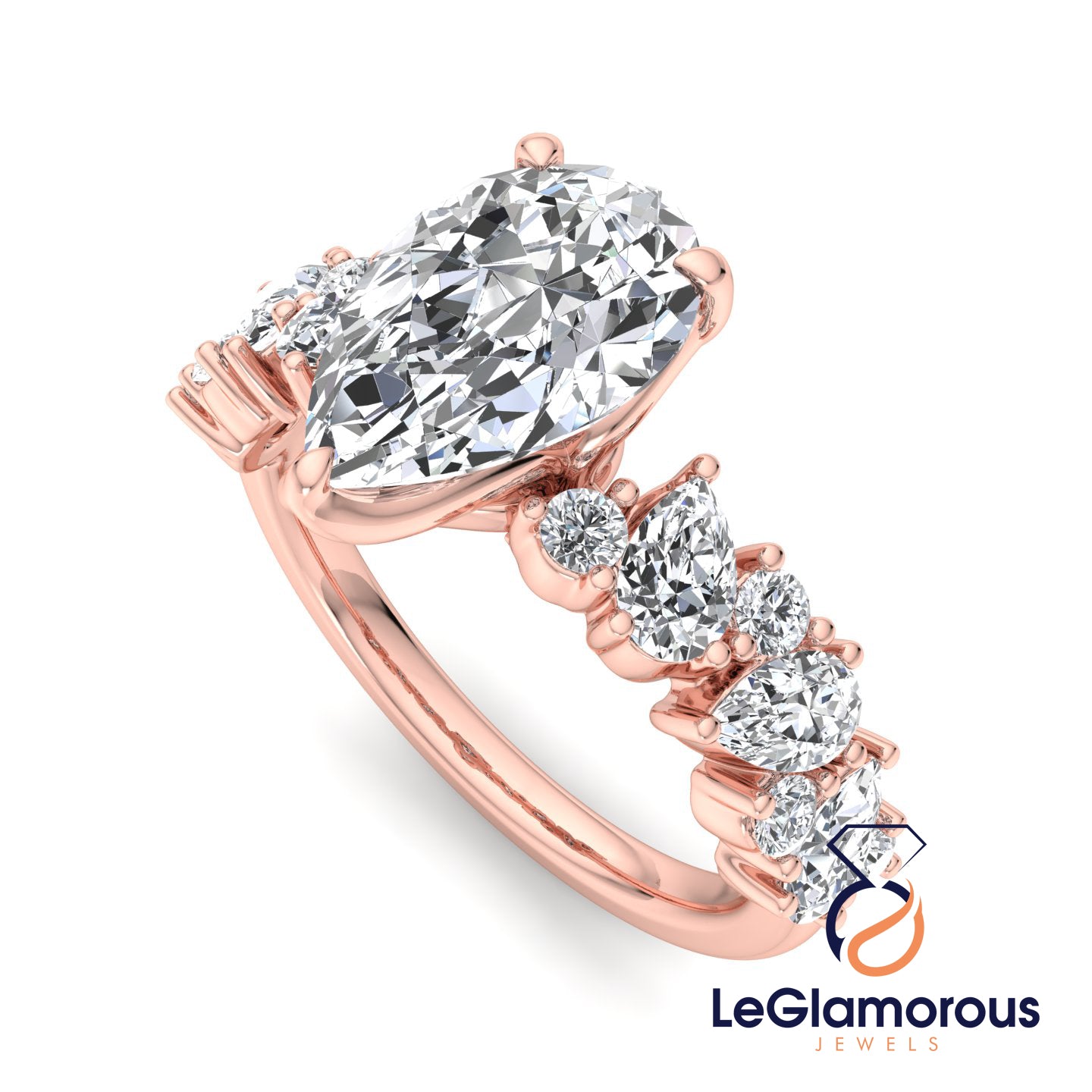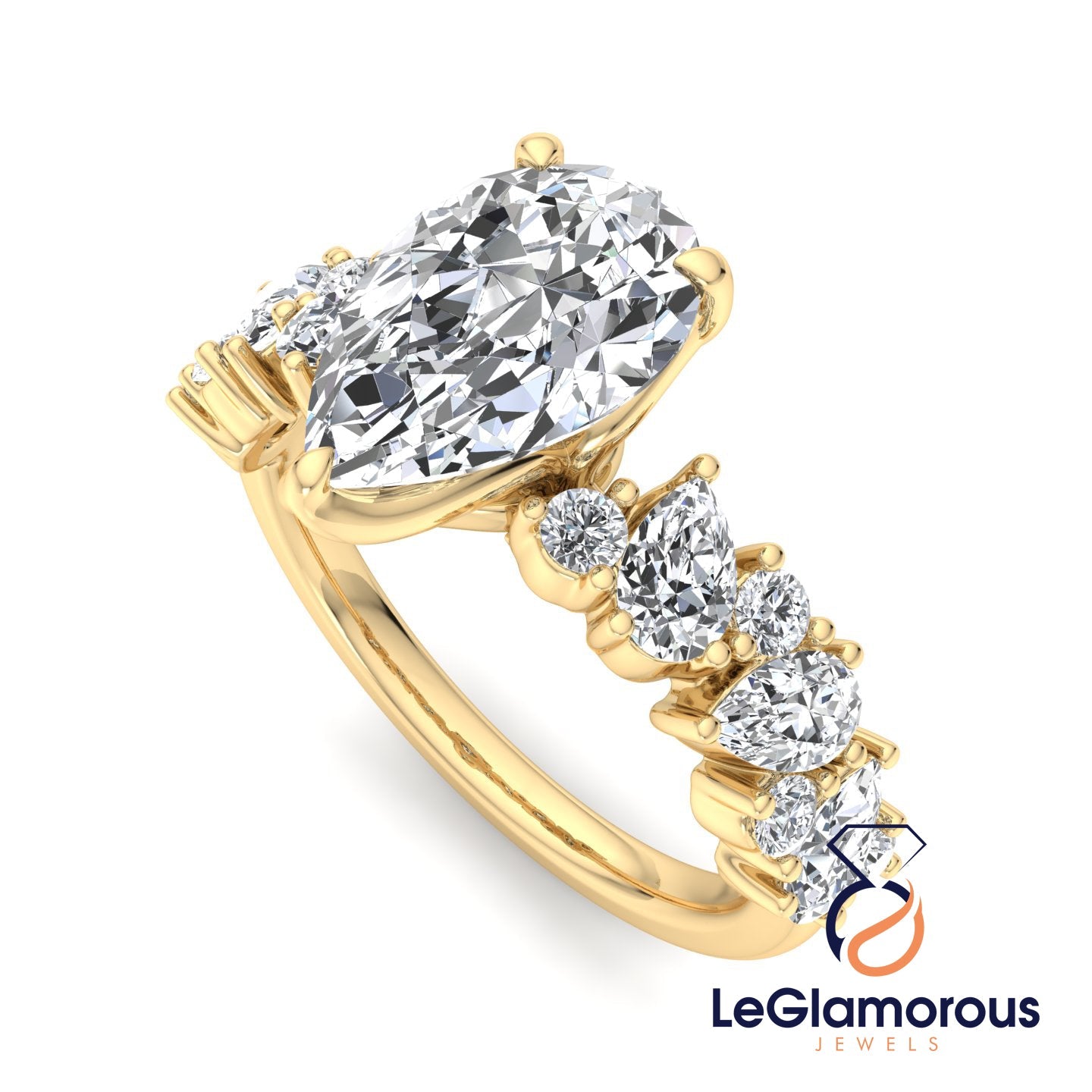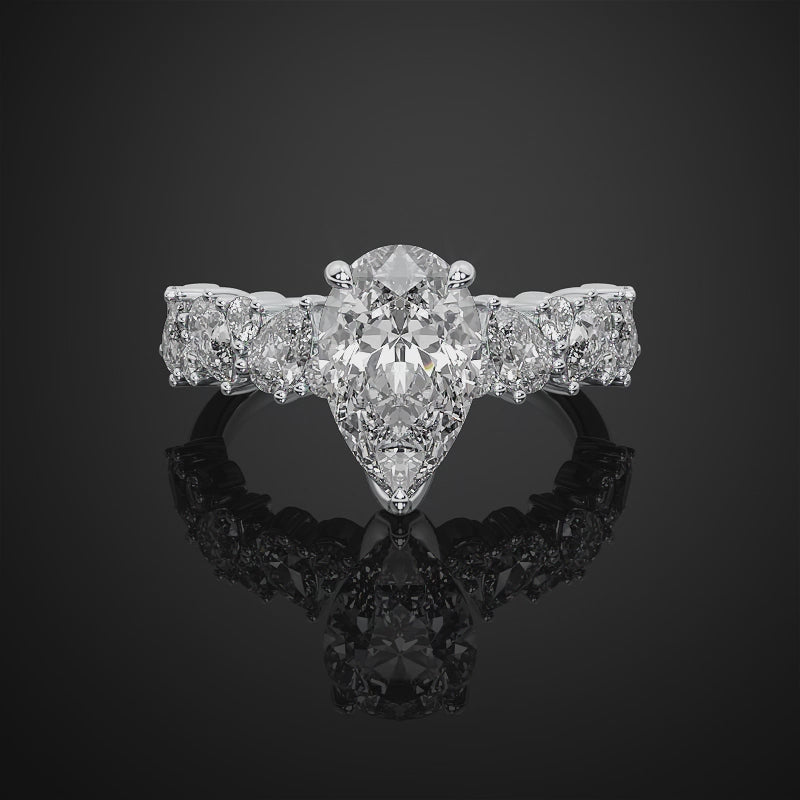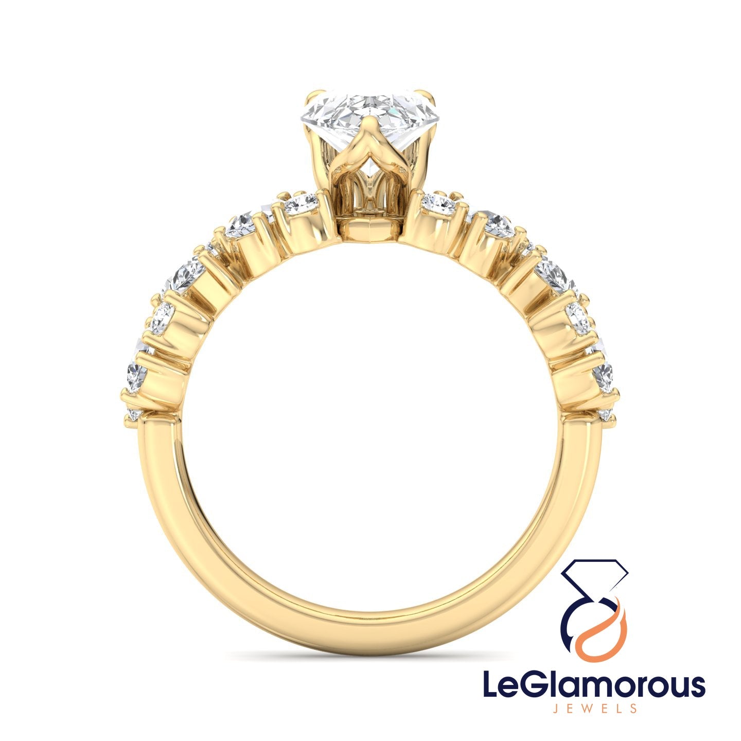 Pear Cut Pave Style Lab Grown Diamond Engagement Ring For Wedding Gift