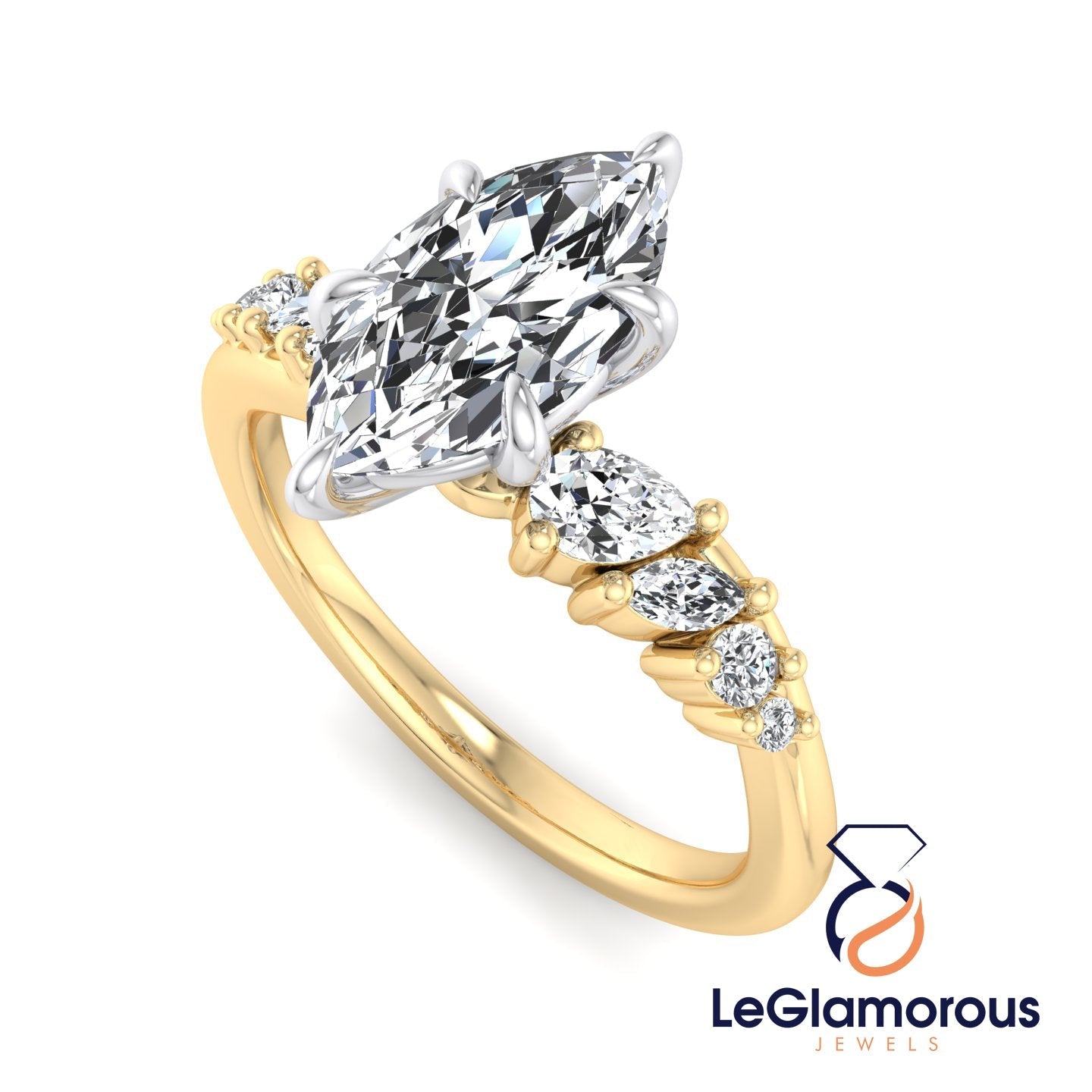 ↦Side Stone Shape: Pear & Marquise & Round Cut