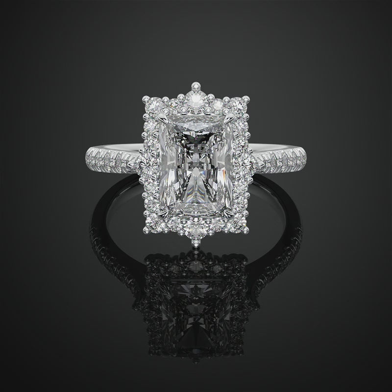 Radiant Cut Lab Grown Diamond Halo Engagement Ring For Anniversary