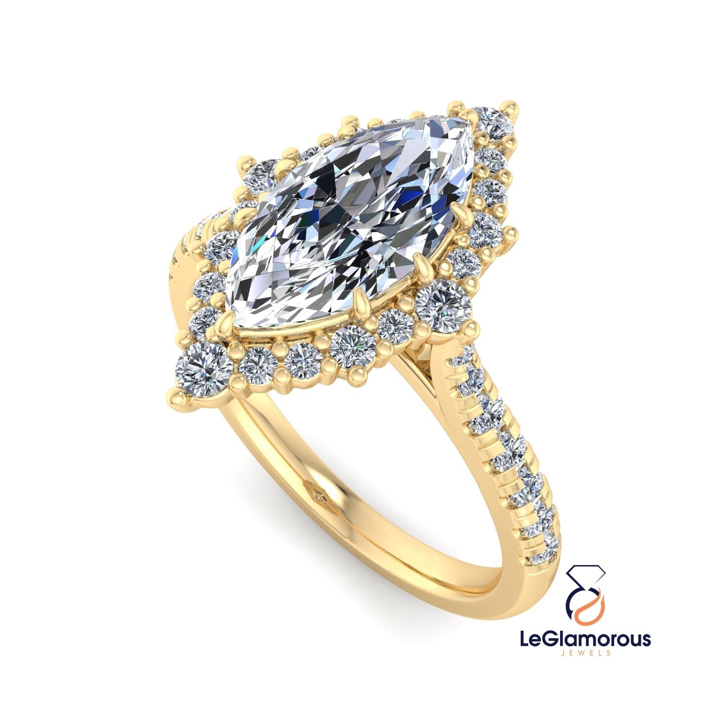 Marquise Moissanite Diamond Halo Engagement Ring For Anniversary Gift For Her