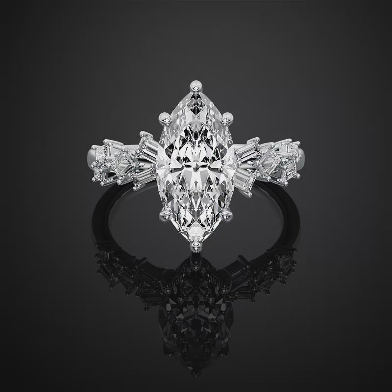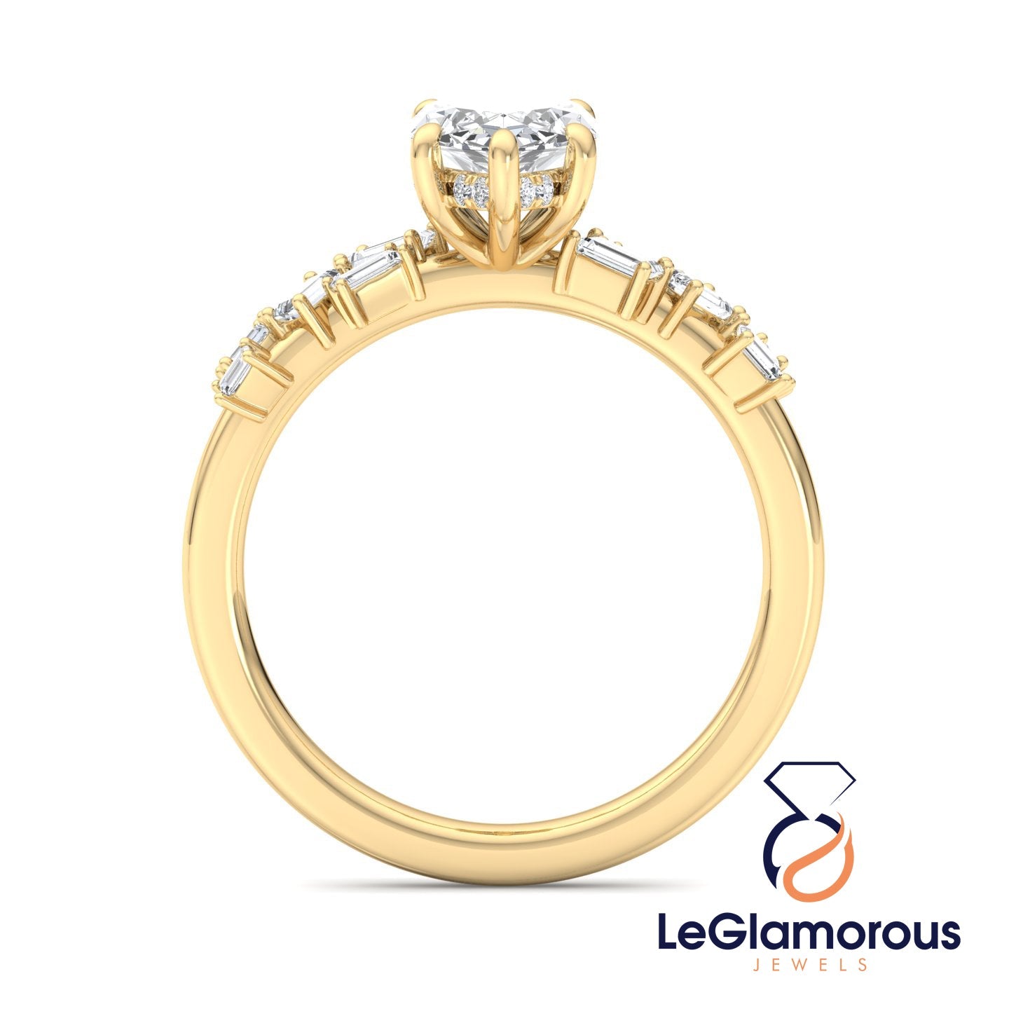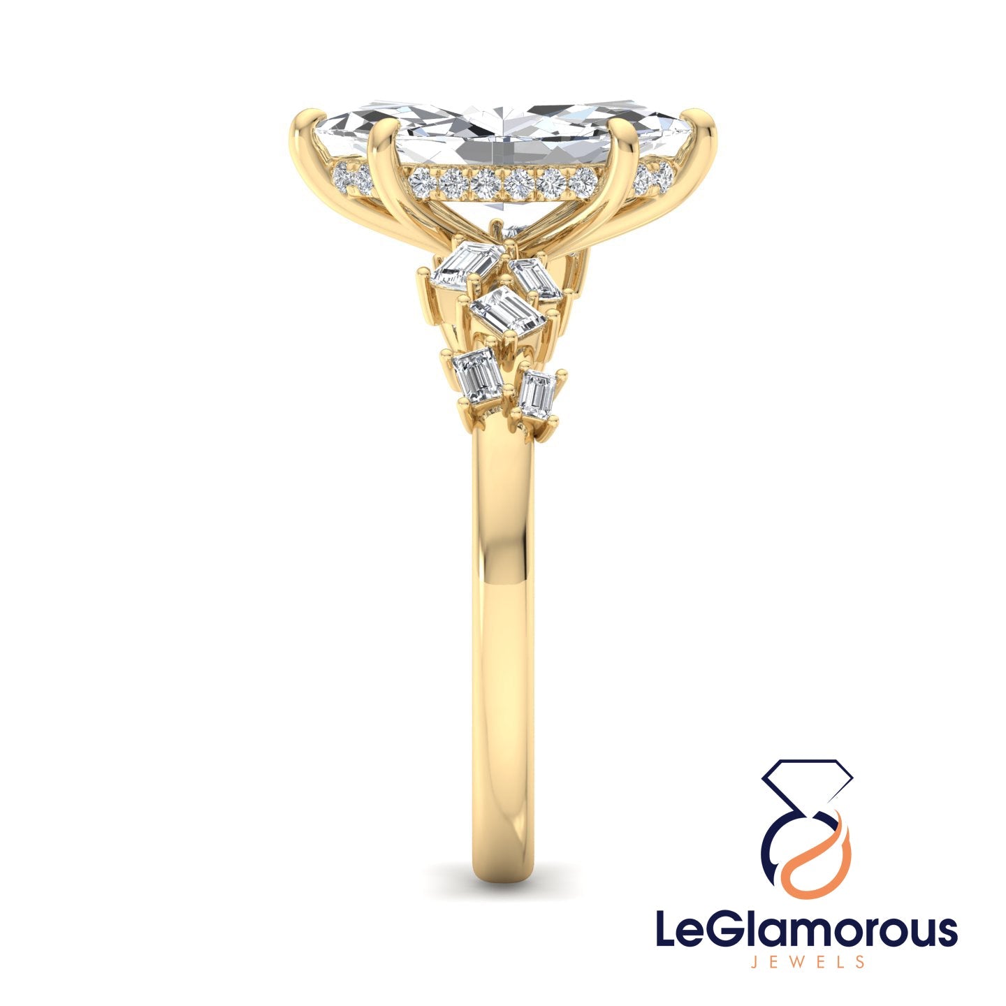 Marquise Cut Hideen Halo Pave Style Lab Grown Diamond Engagement Ring For Wedding Gift