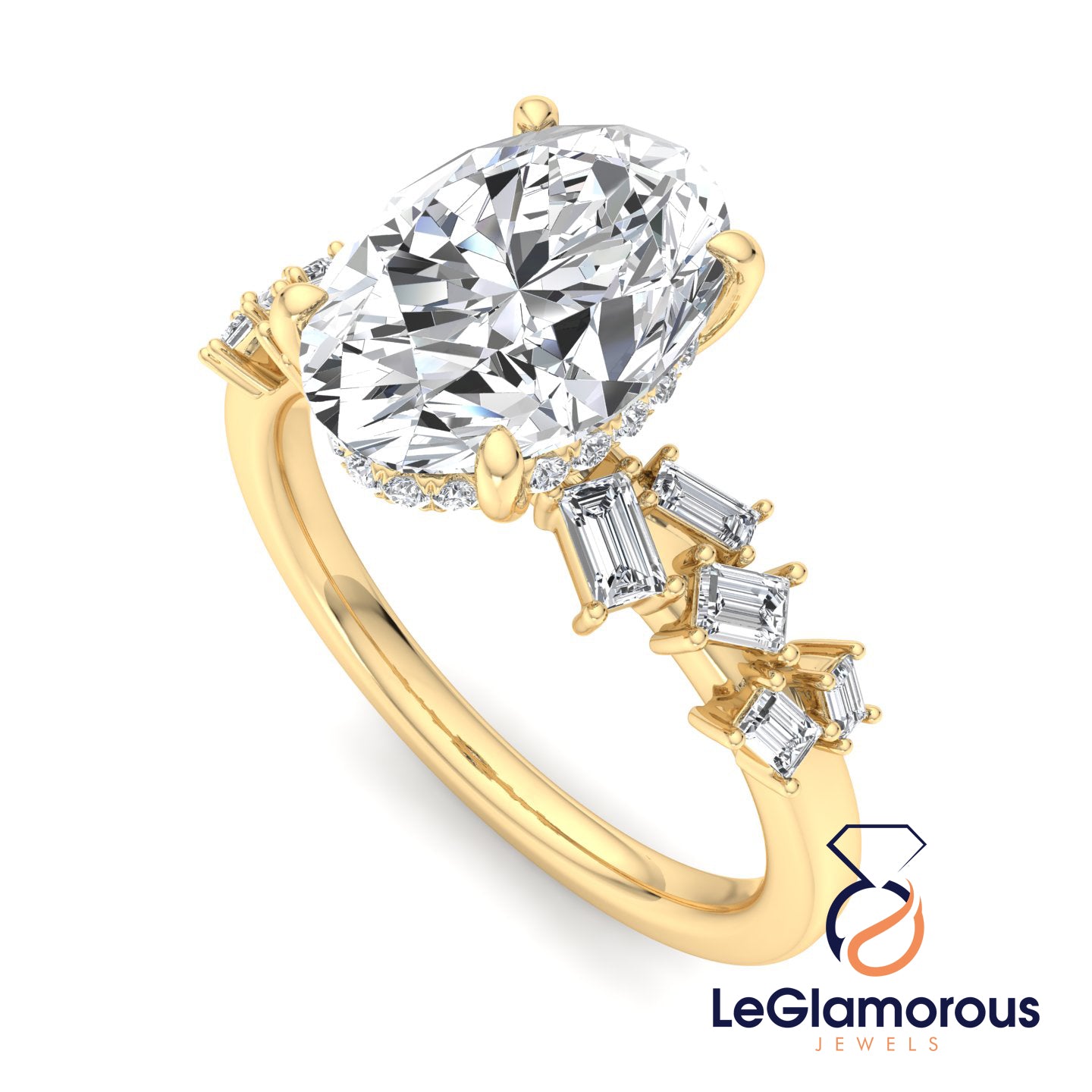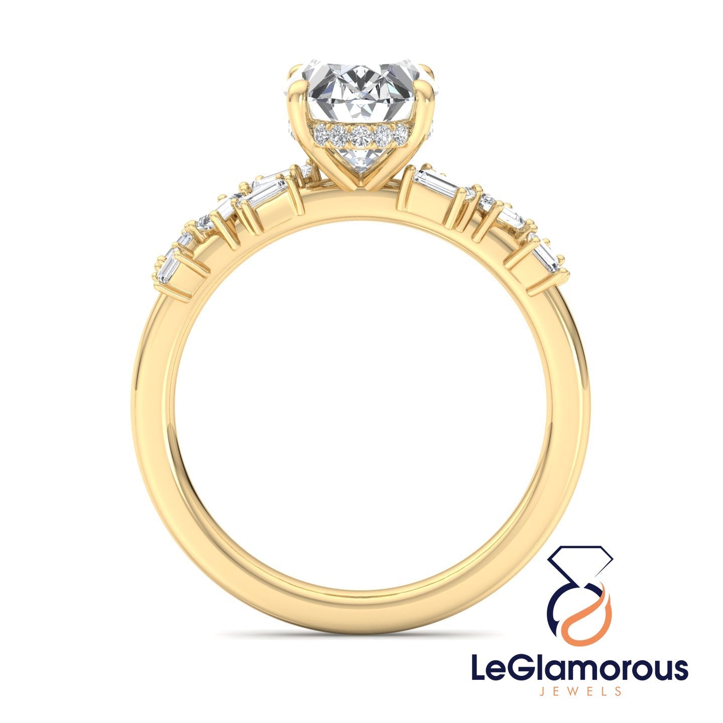 Oval Cut Hideen Halo Pave Style Moissanite Diamond Engagement Ring For Wedding Gift