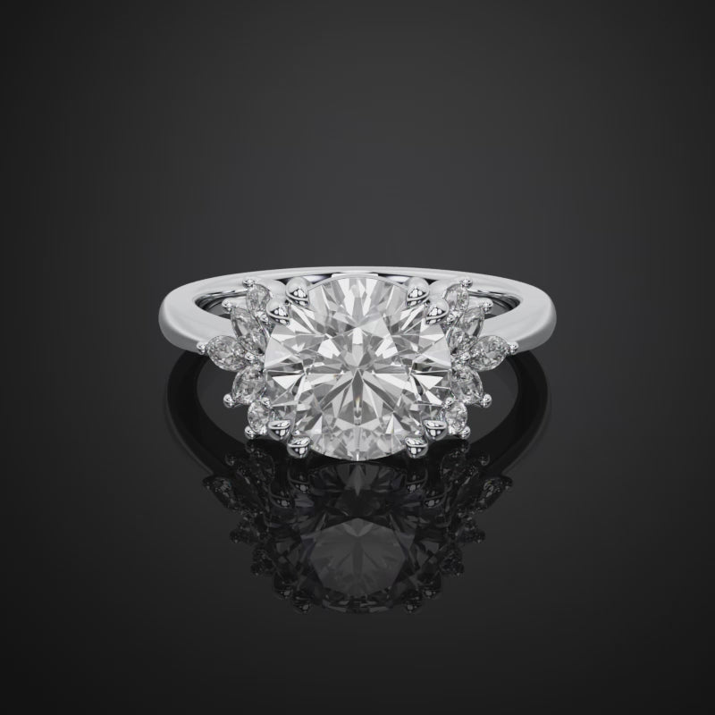 Round Cut Pave Lab Grown Diamond Engagement Ring For Anniversary Gift