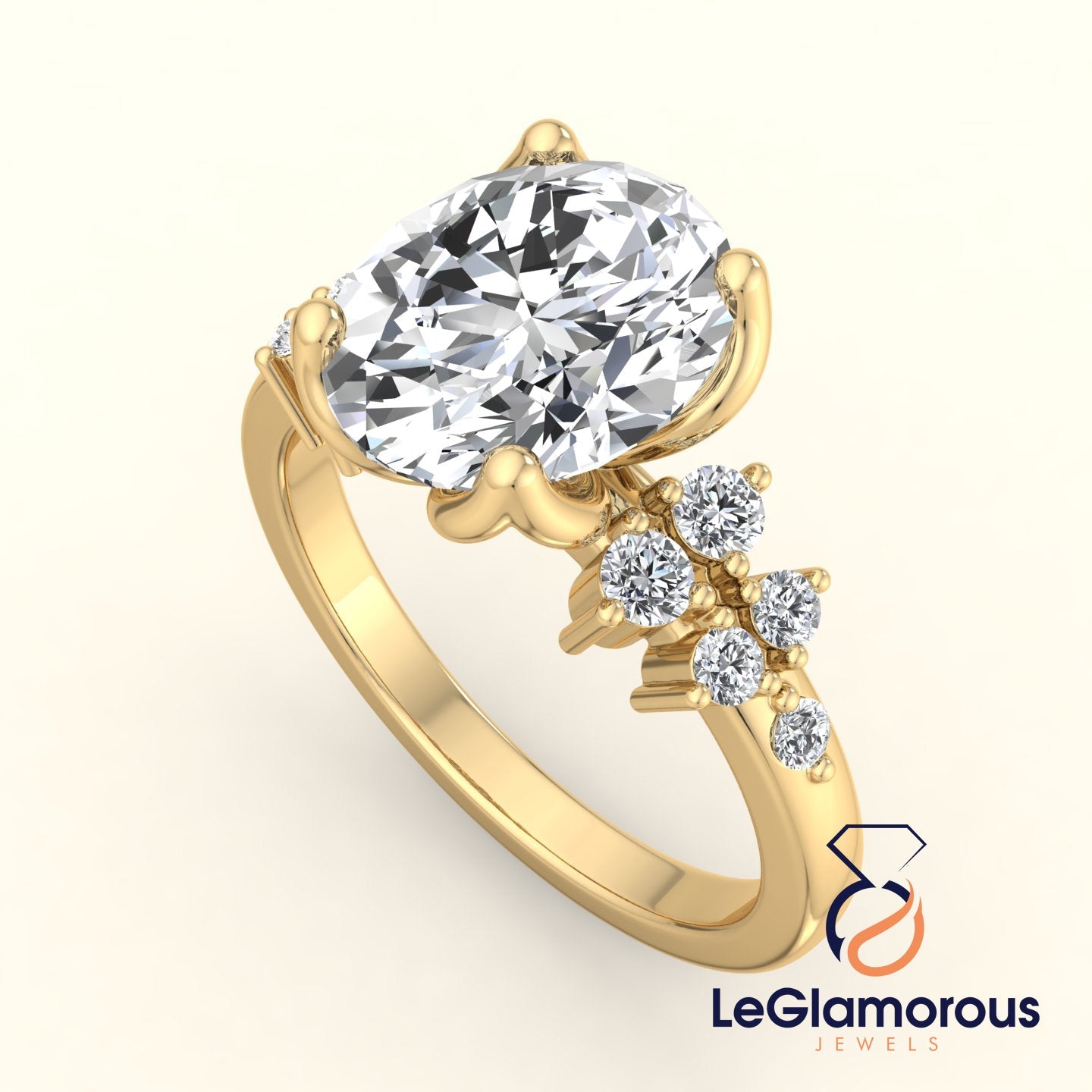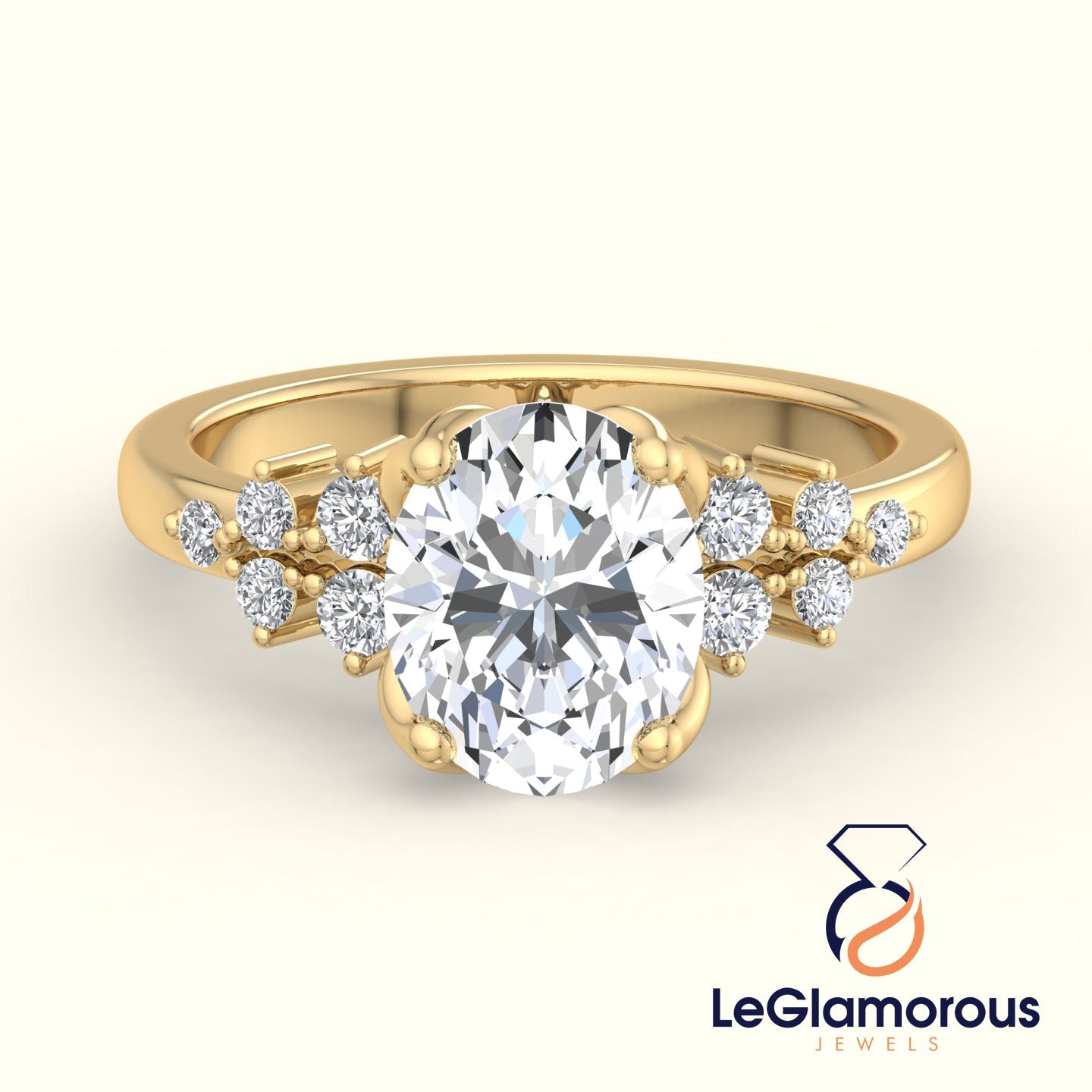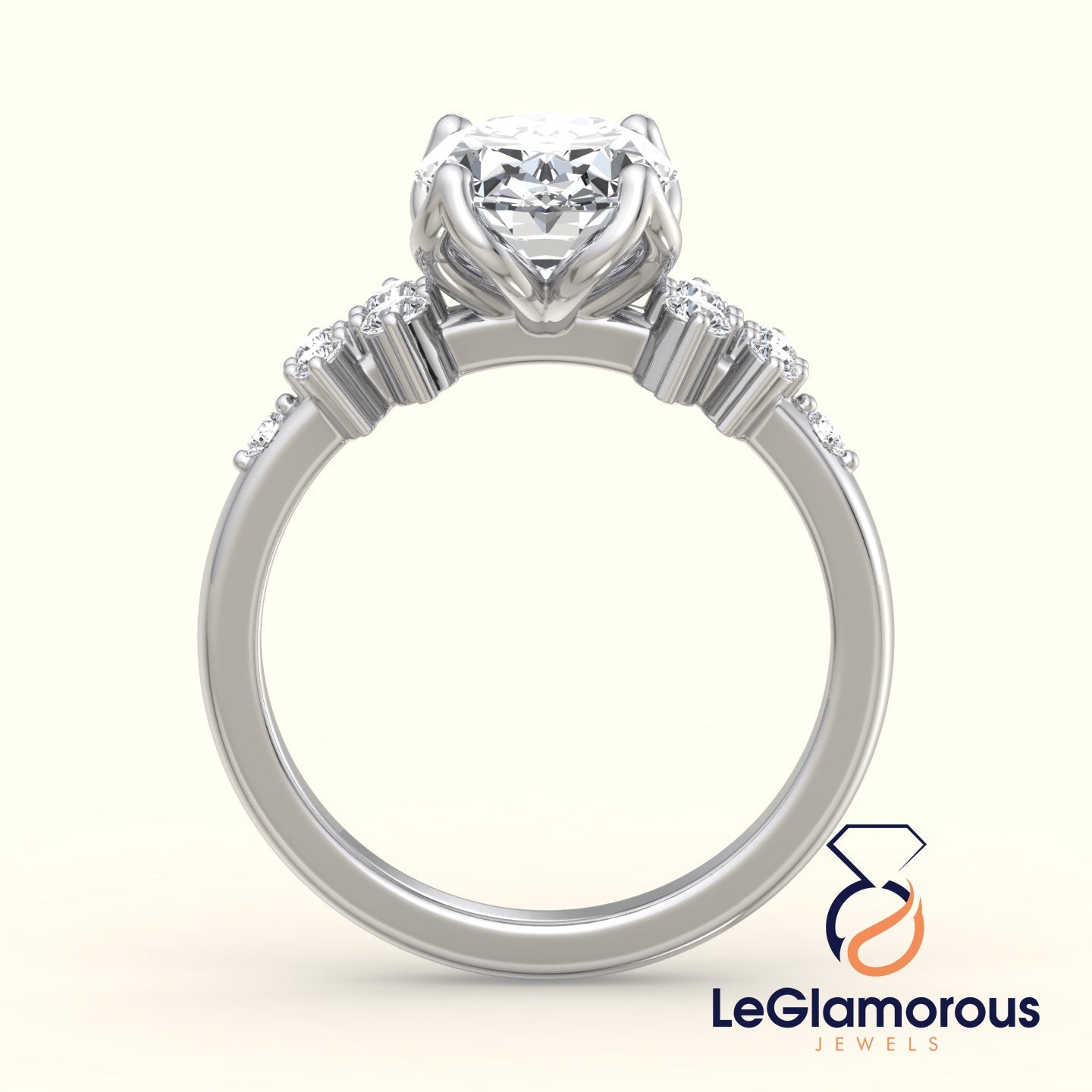 Oval Shaped Lab Grown Diamond Ring, IGI Certified Oval Cluster Engagement Ring