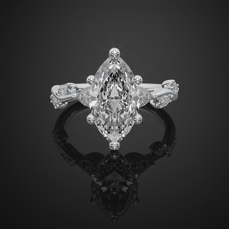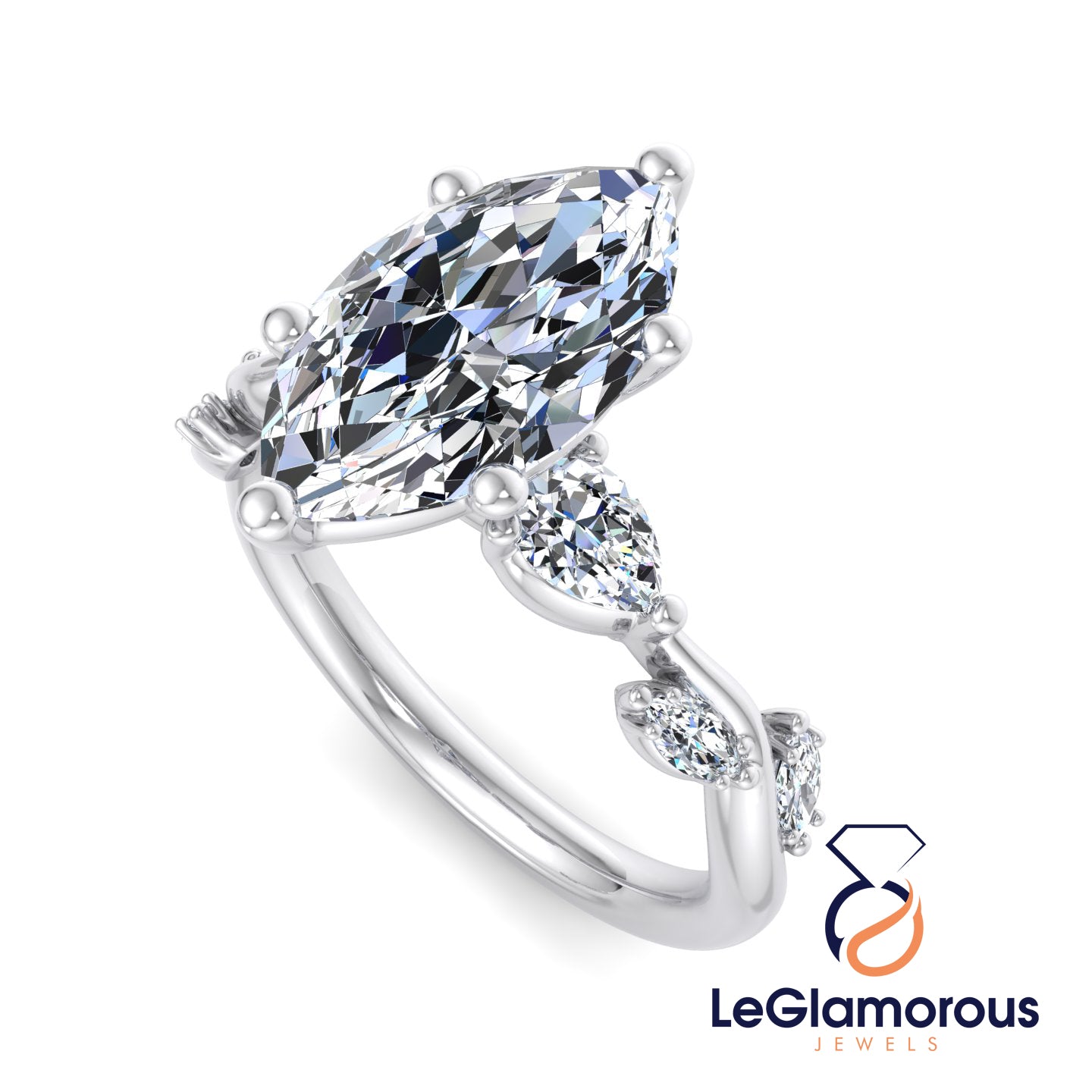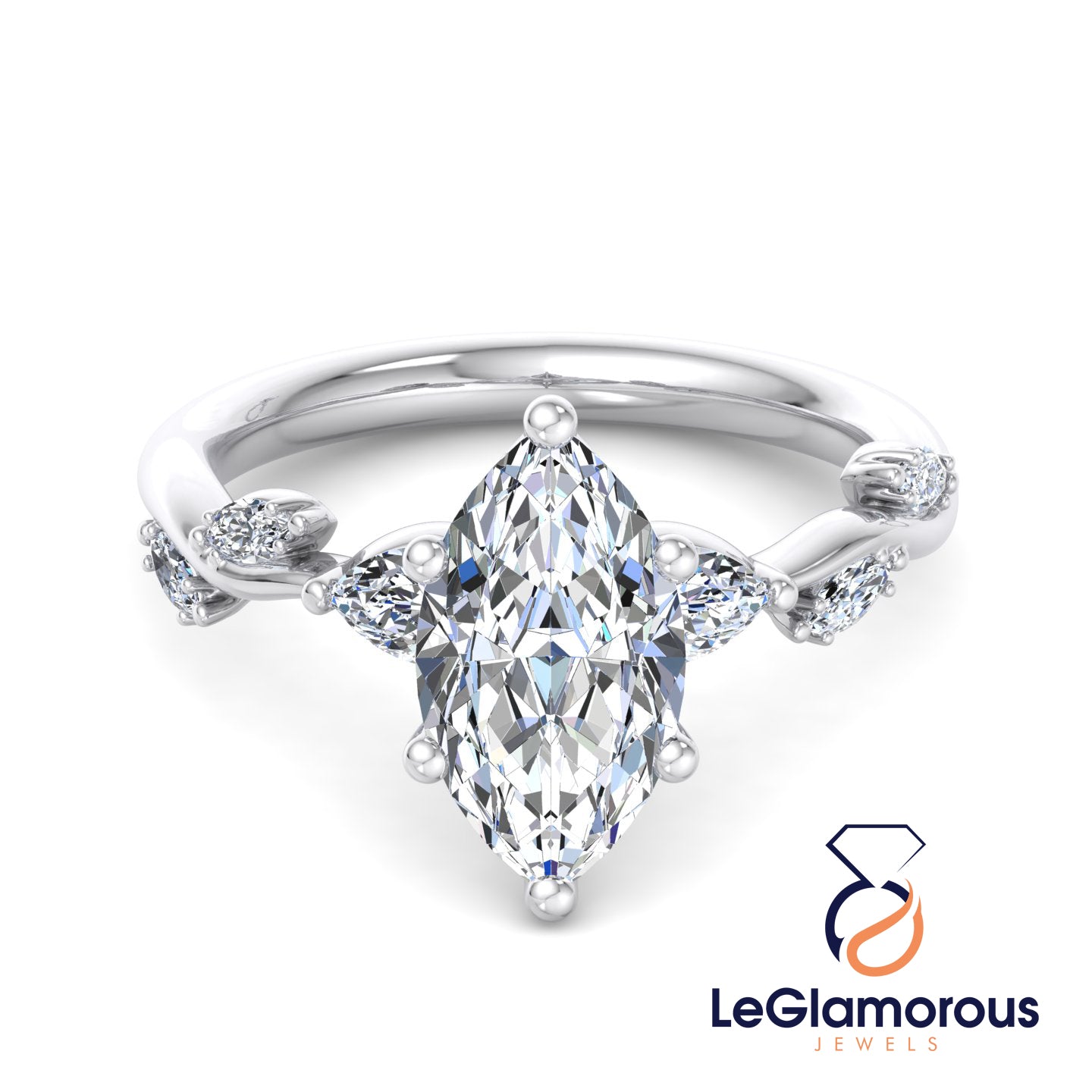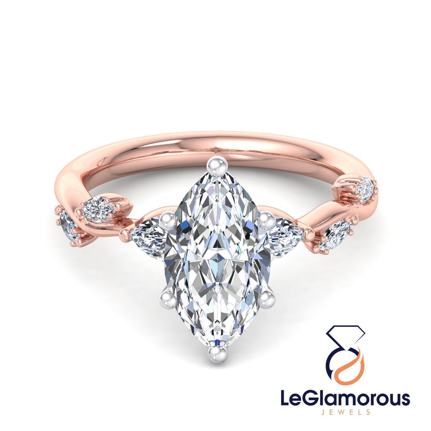 Marquise Cut Lab Grown Diamond Pave Setting Engagement Ring For Anniversary Gift