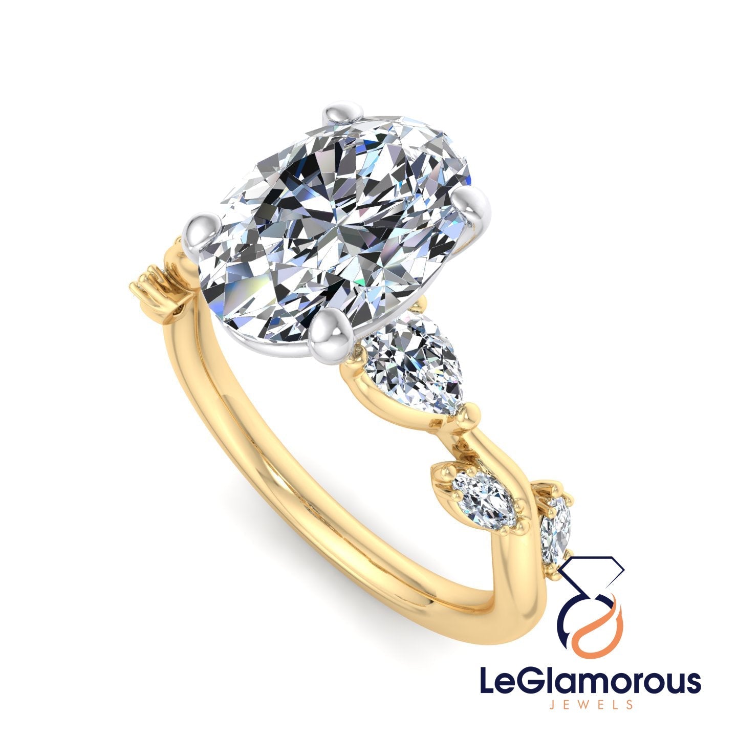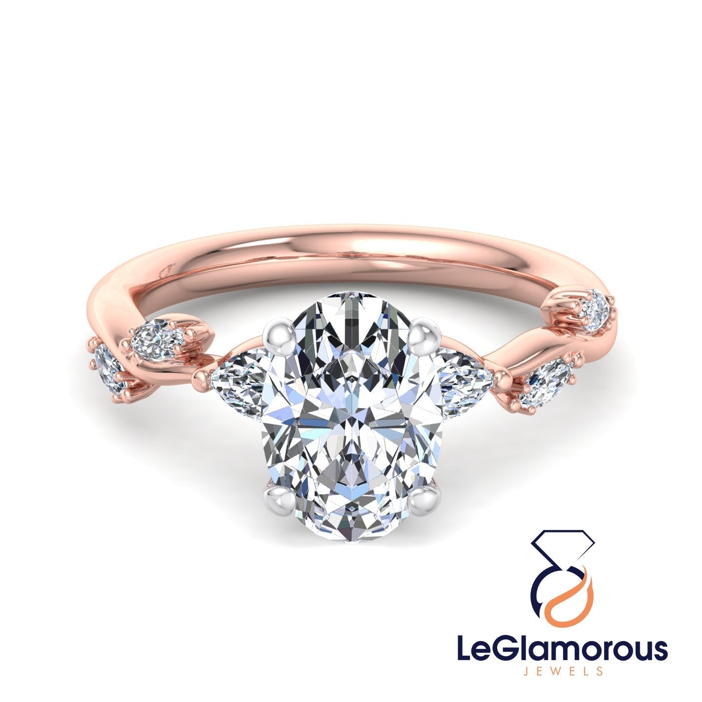 Oval Cut Moissanite Diamond Pave Setting Engagement Ring For Anniversary Gift