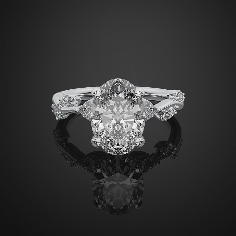 Oval Cut Lab Grown Diamond Pave Setting Engagement Ring For Anniversary Gift