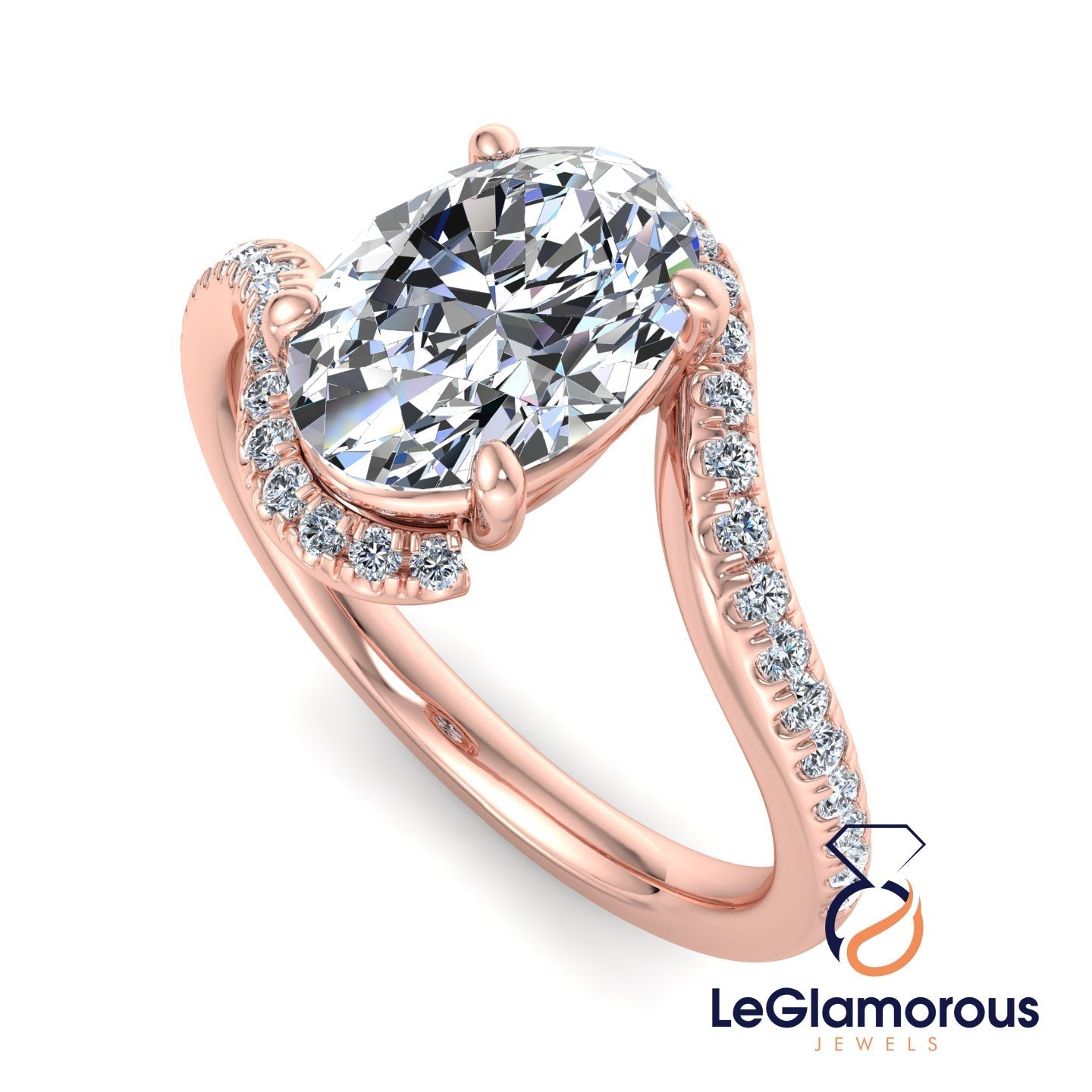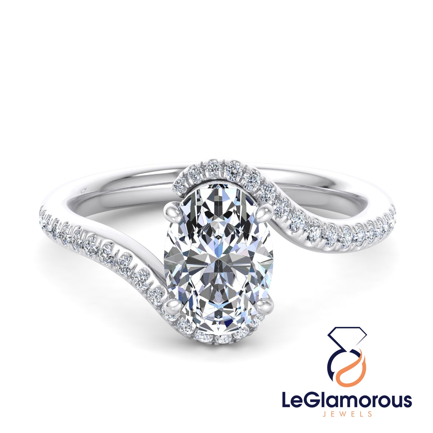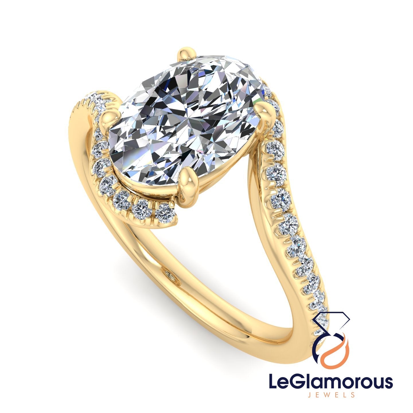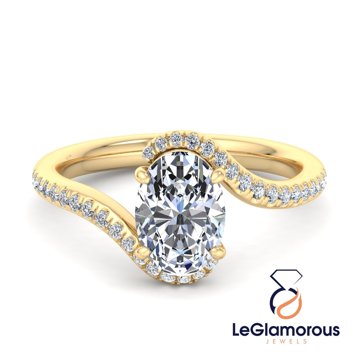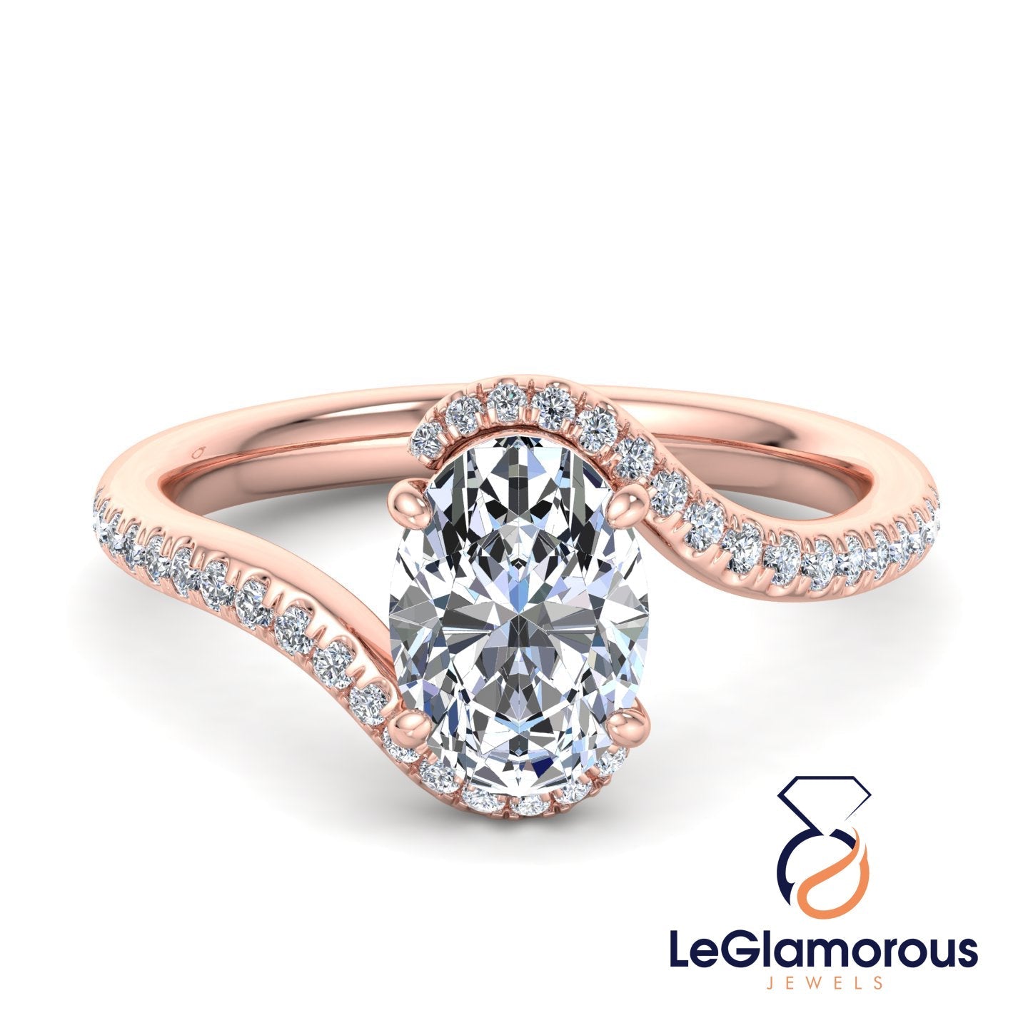 Oval Cut Moissanite Diamond Pave Setting Engagement Ring For Wedding Gift