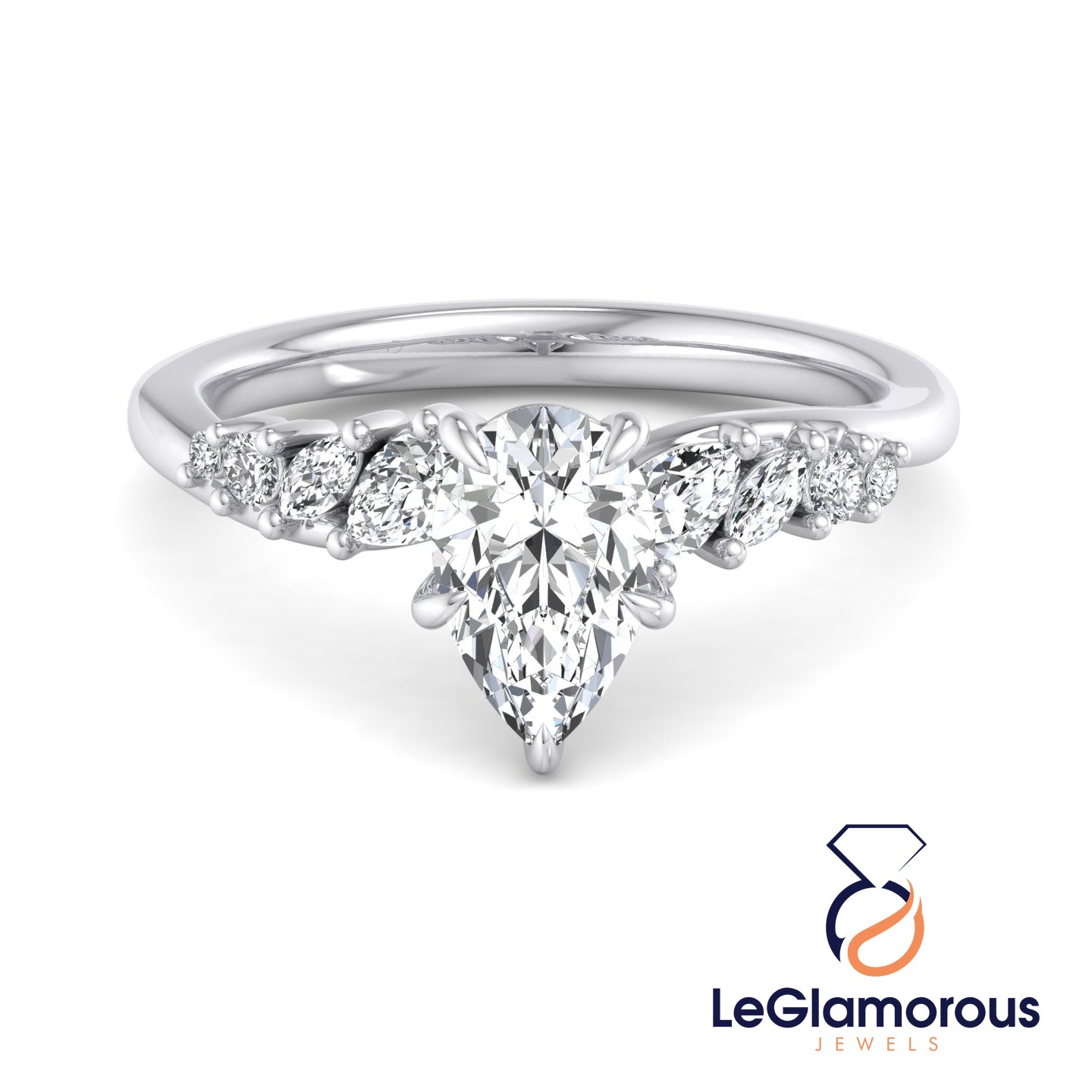 Pear Cut Pave Style Lab Grown Diamond Engagement Ring For Wedding Gift
