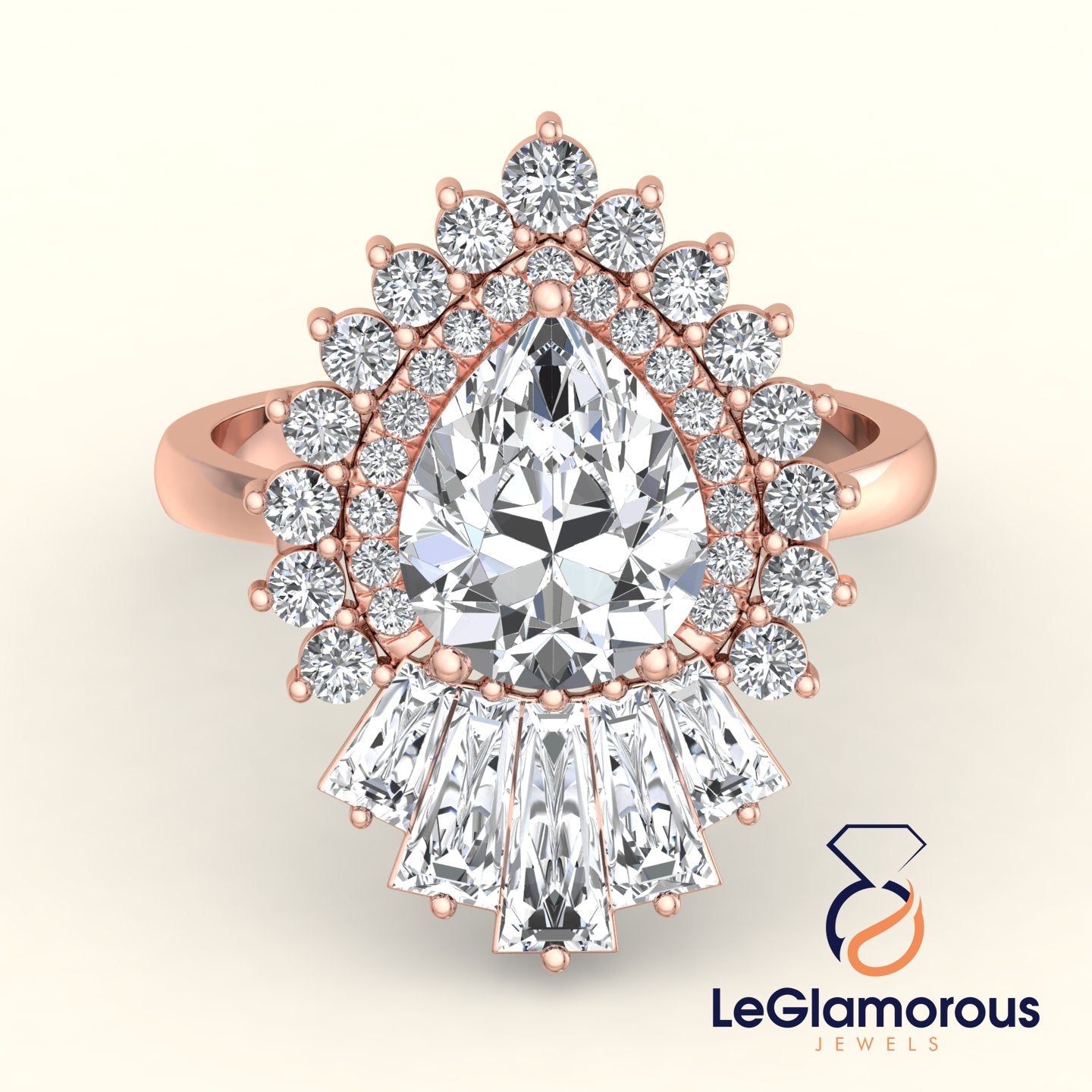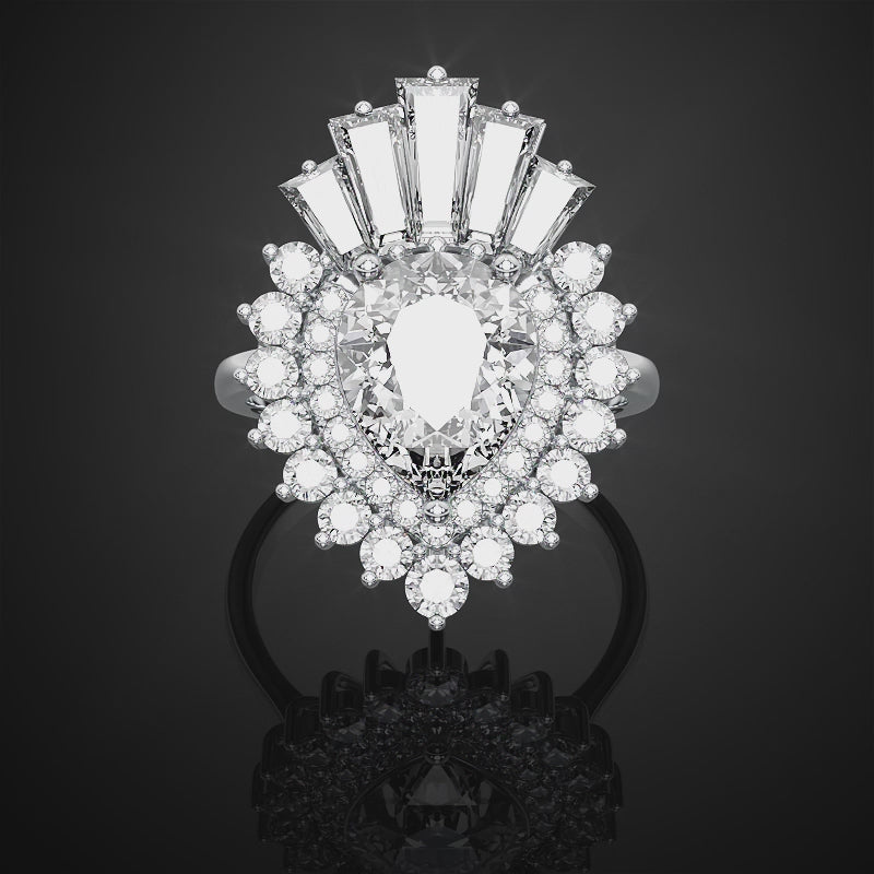 Pear Cut Doubel Halo Lab Grown Diamond Engagement Ring For Anniversary Gift
