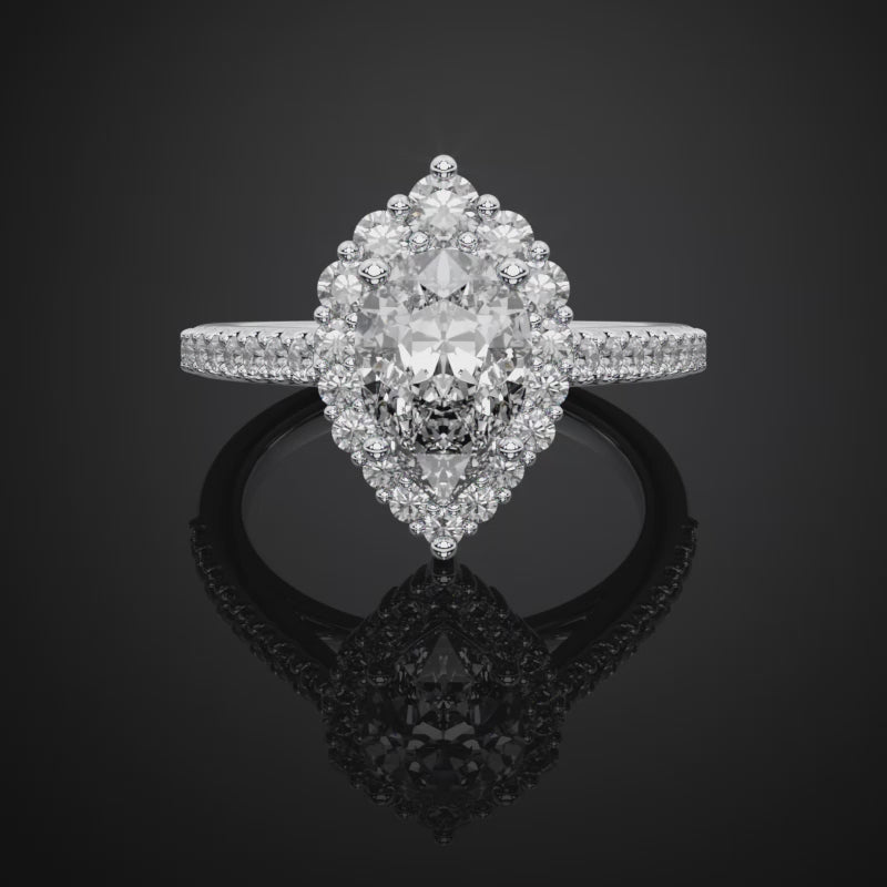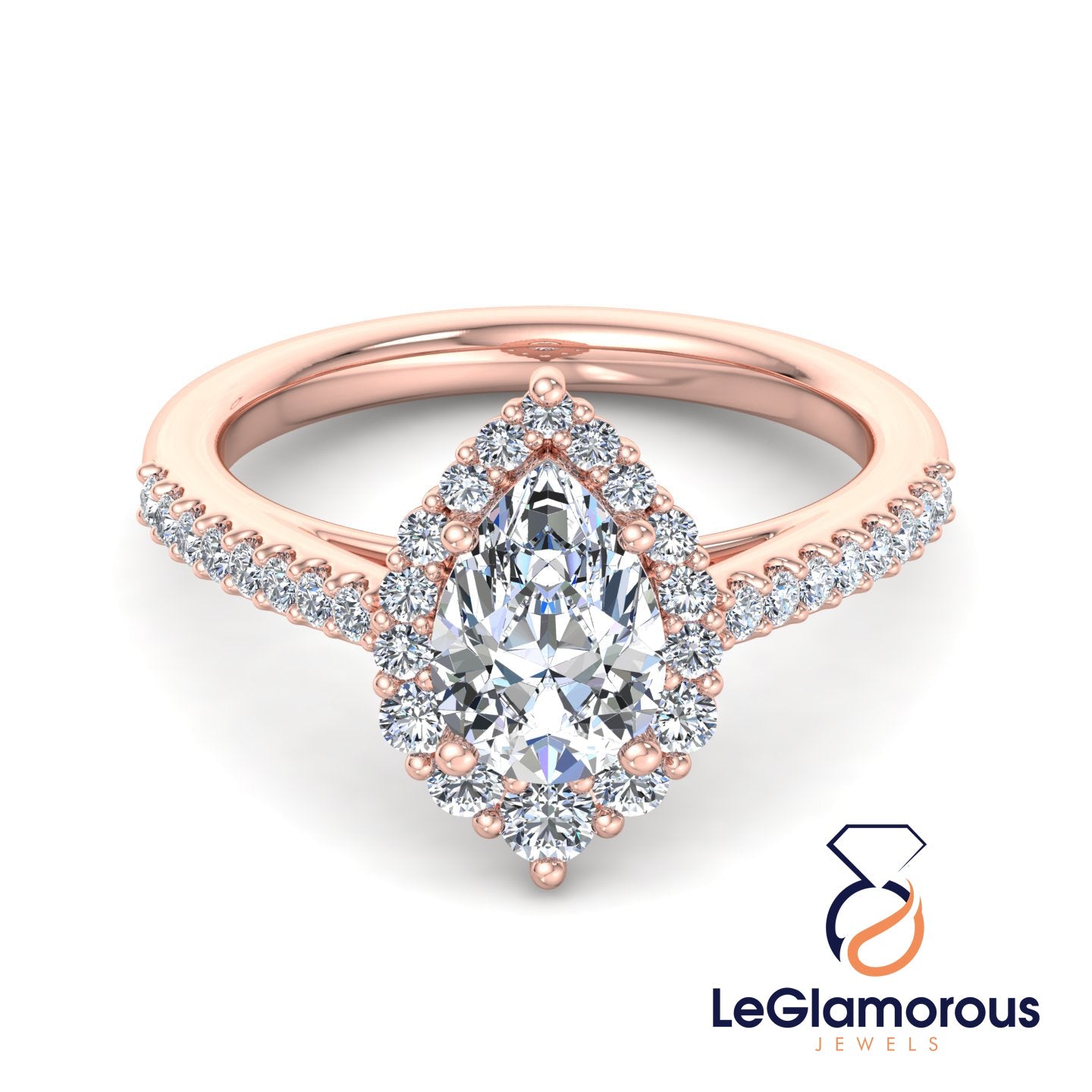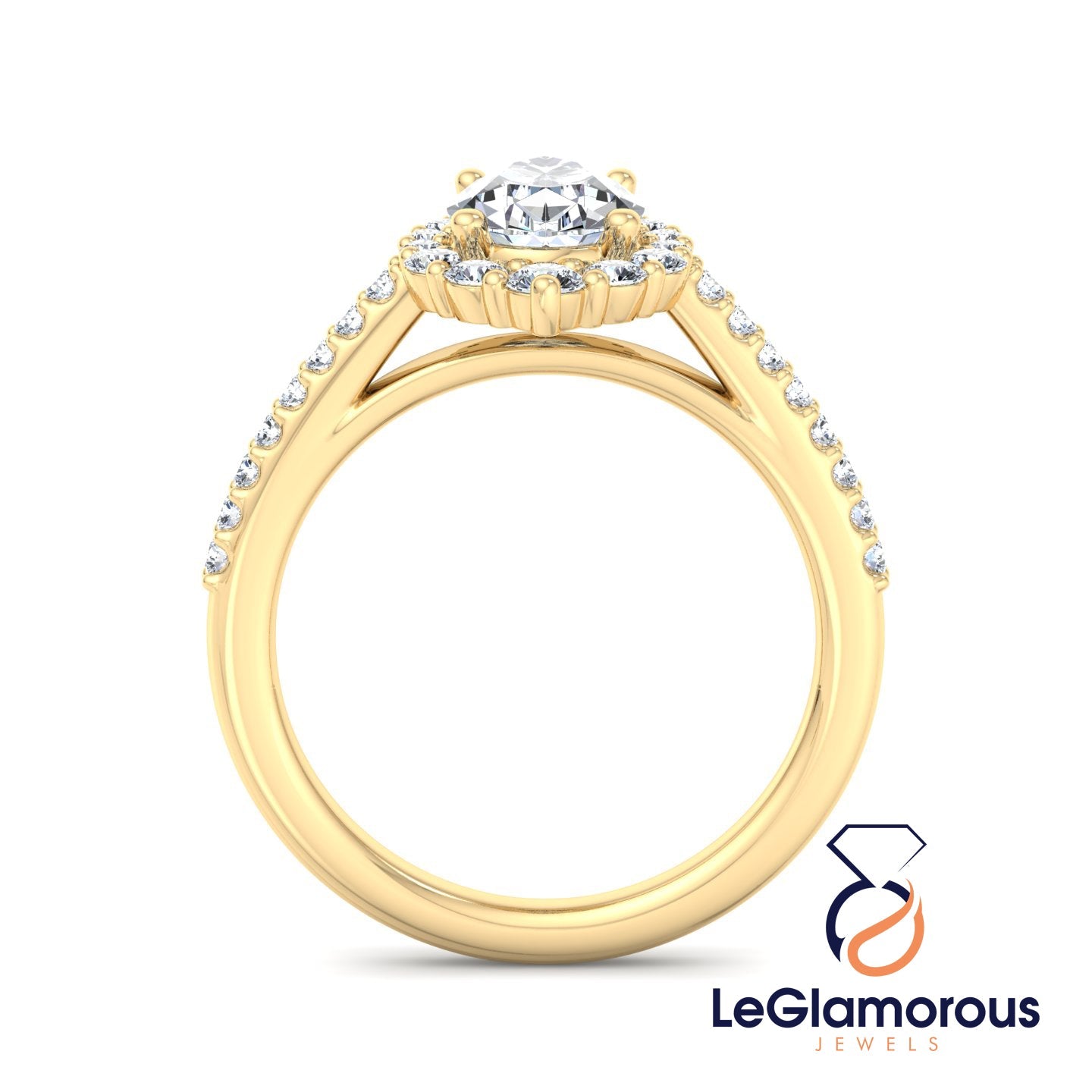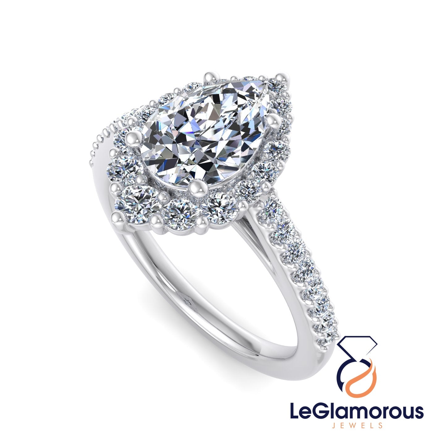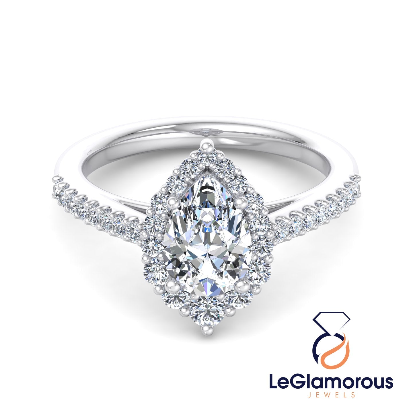 Pear Cut Halo Lab Grown Diamond Engagement Ring For Anniversary Gift