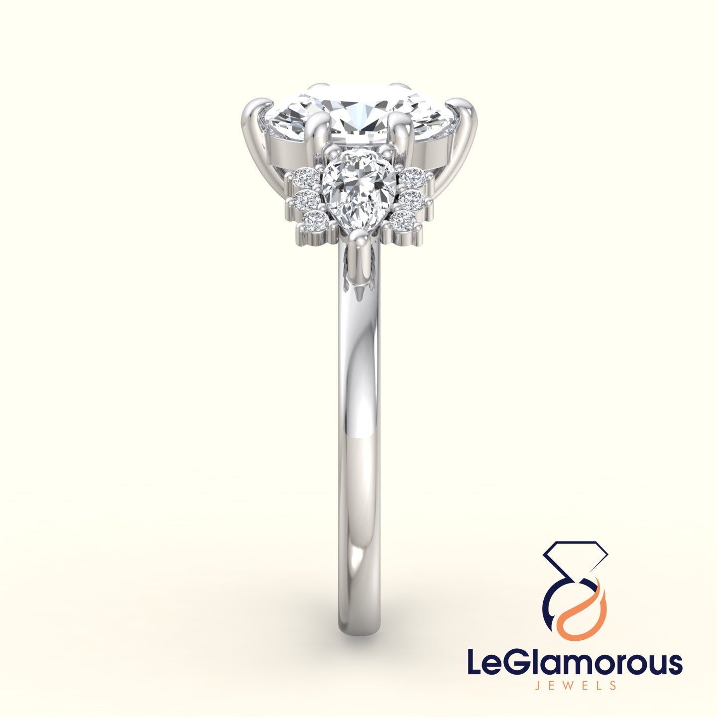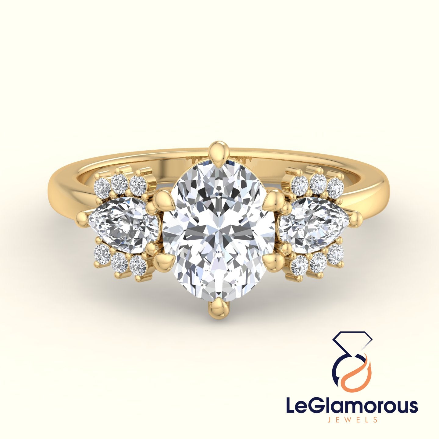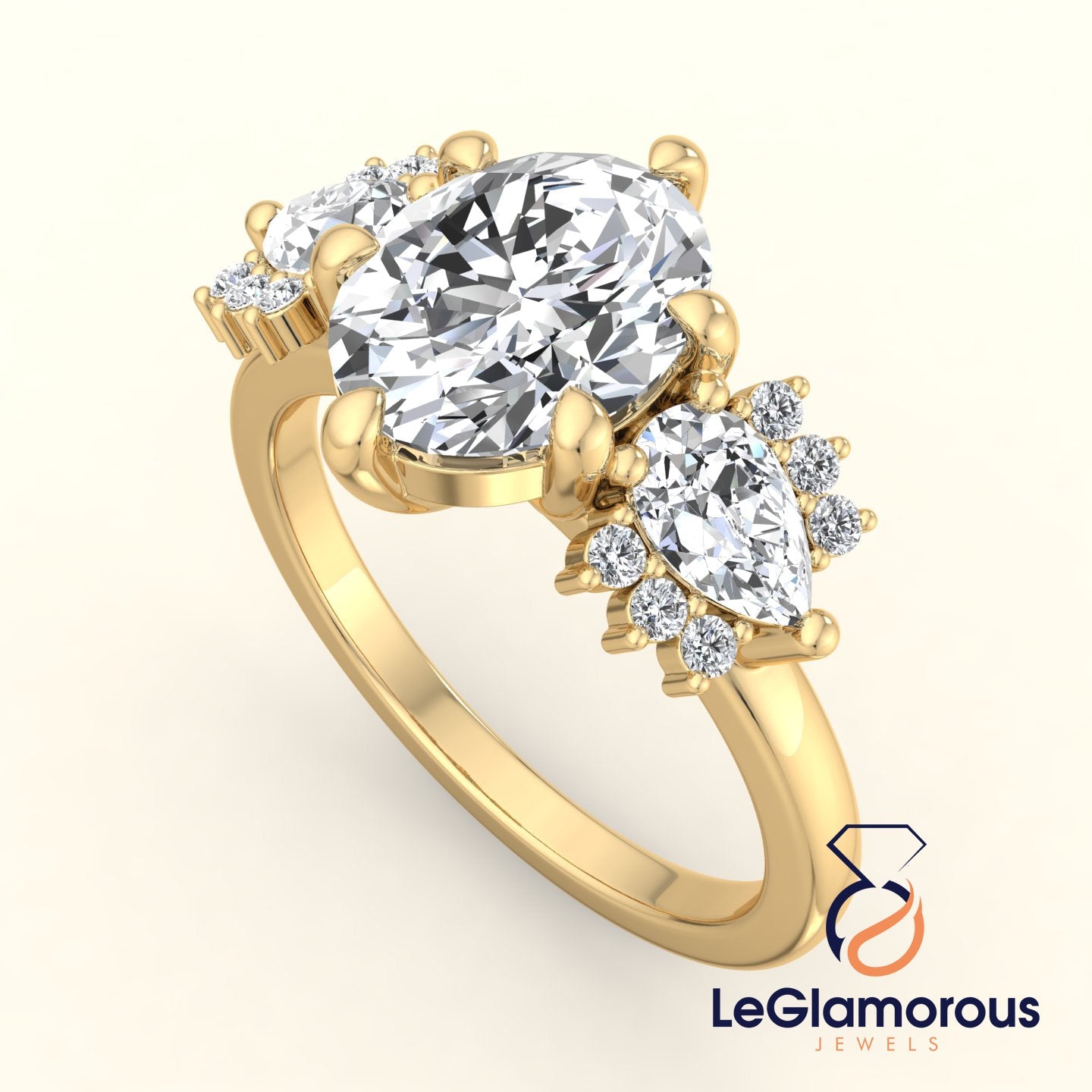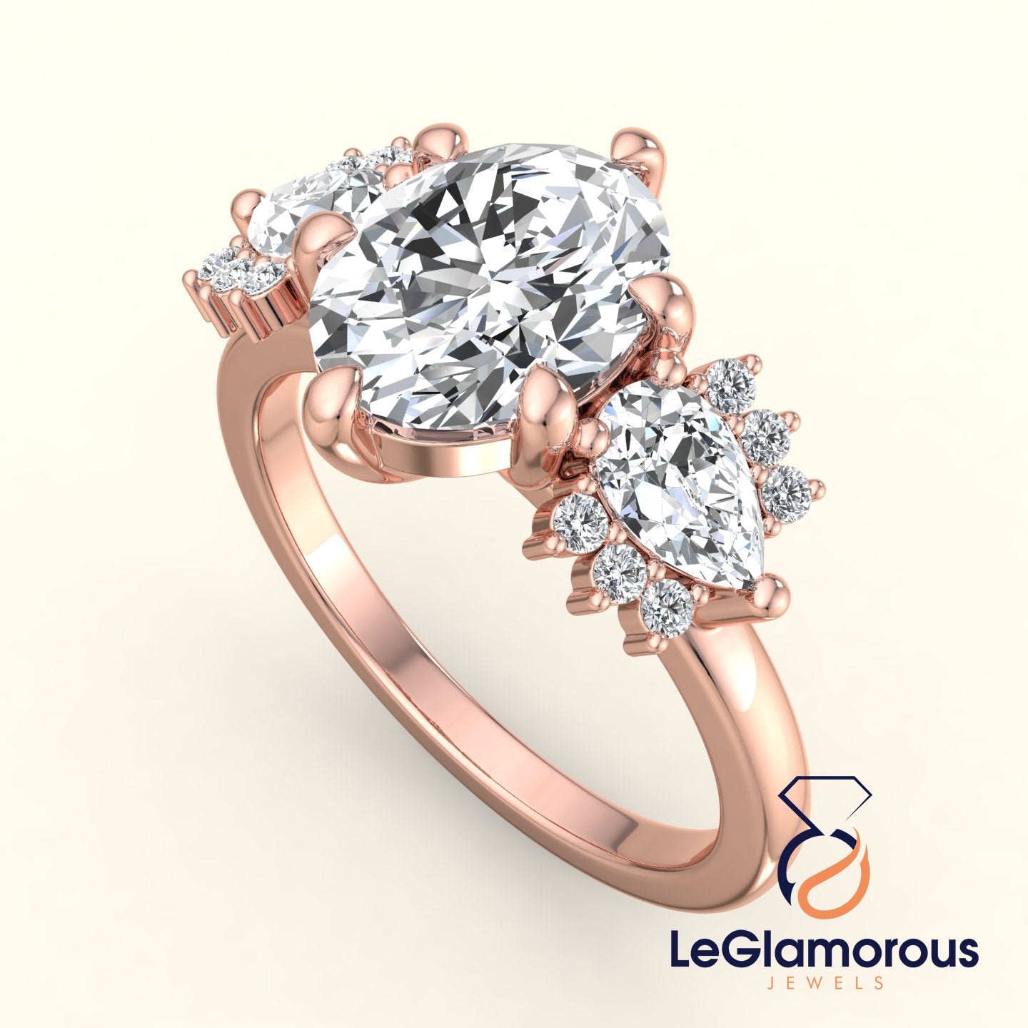 Oval & Pear Three Stone Lab Grown Diamond Engagement Ring For Anniversary Gift