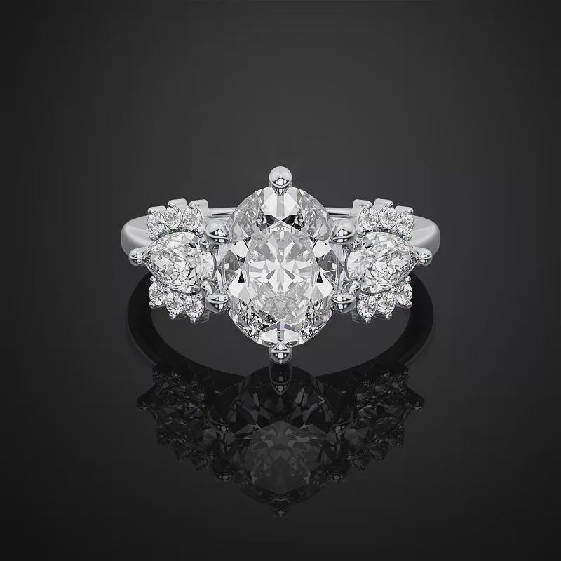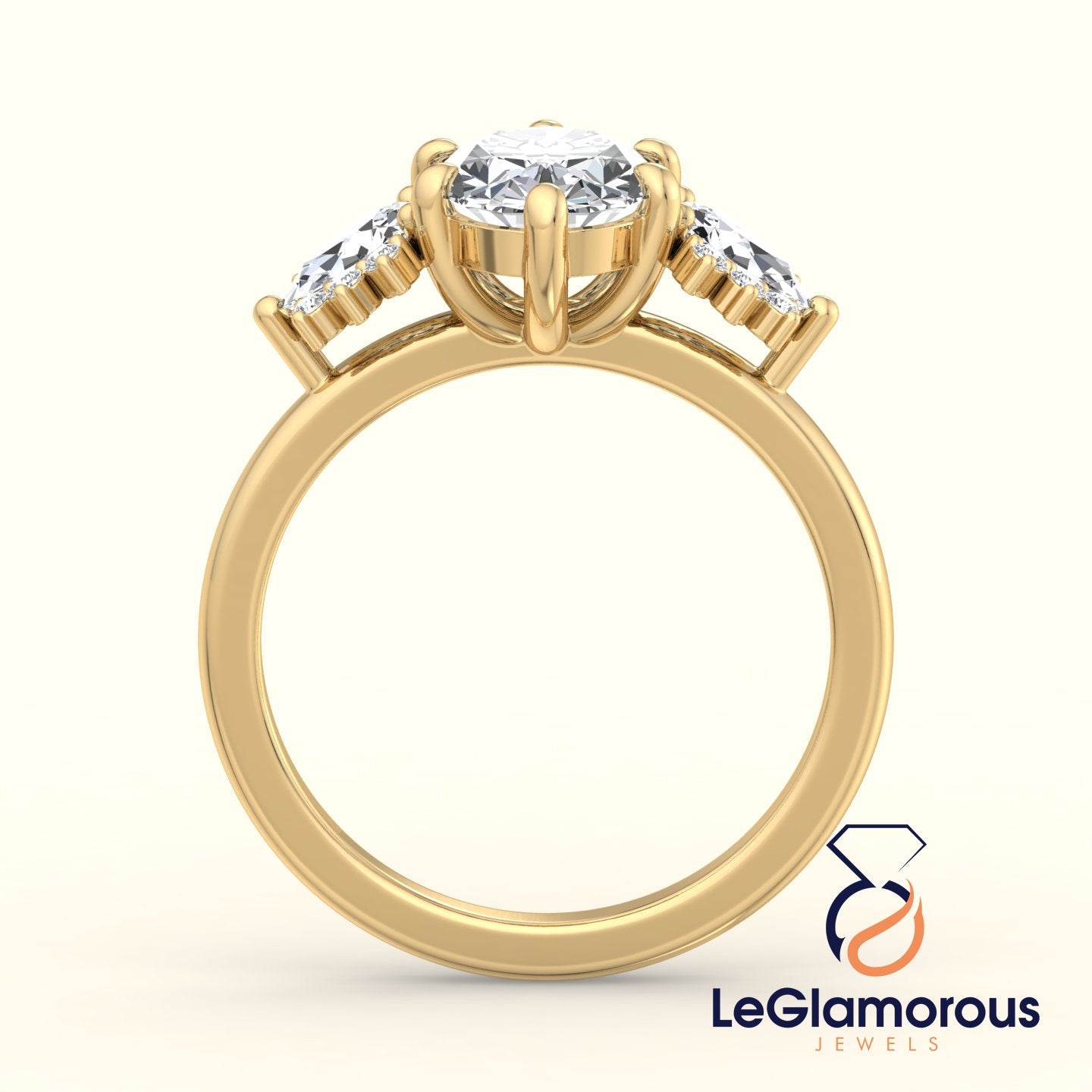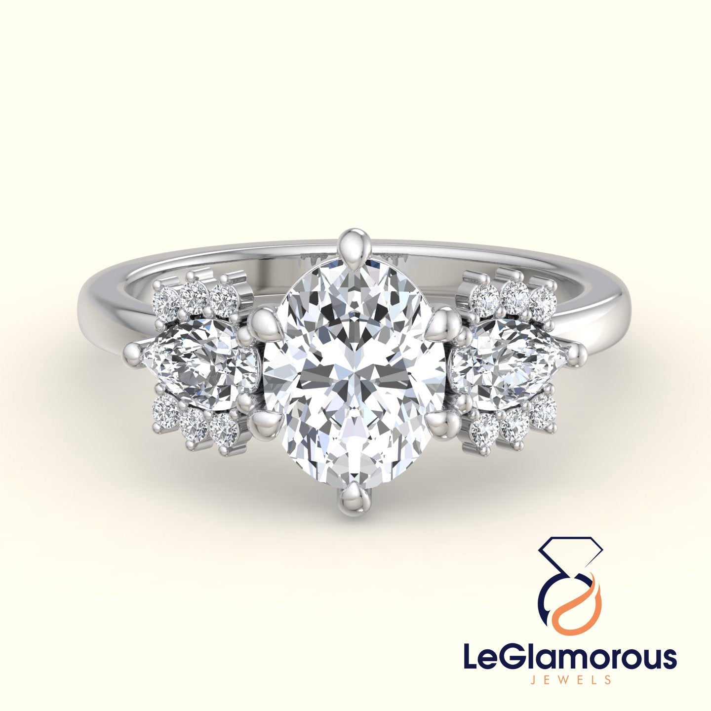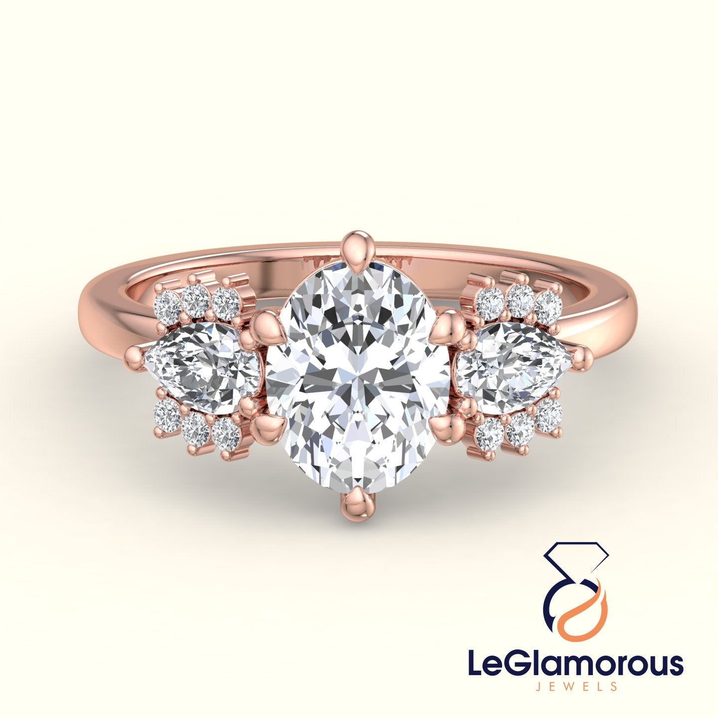 Oval & Pear Three Stone Lab Grown Diamond Engagement Ring For Anniversary Gift