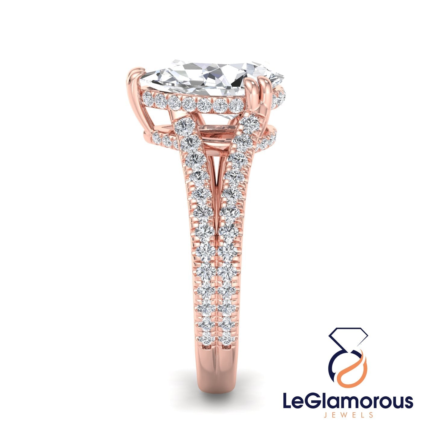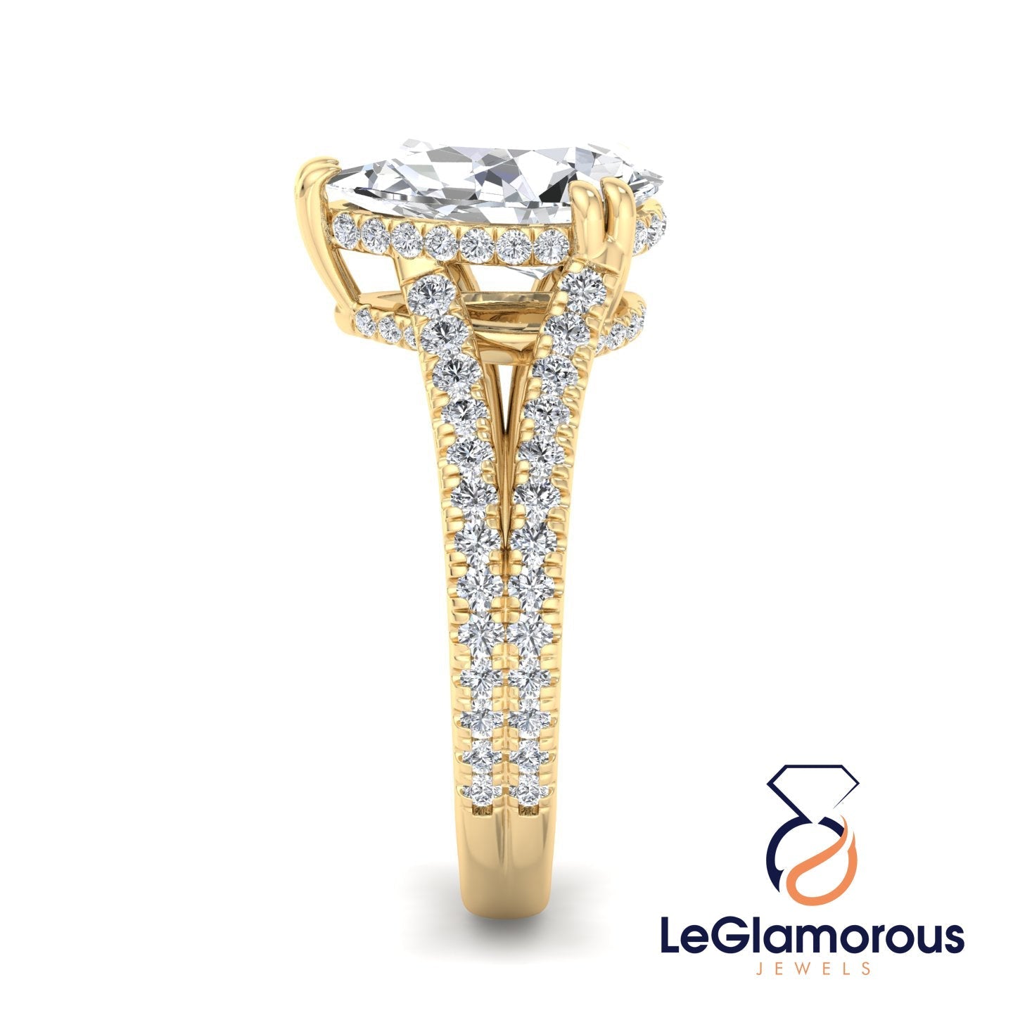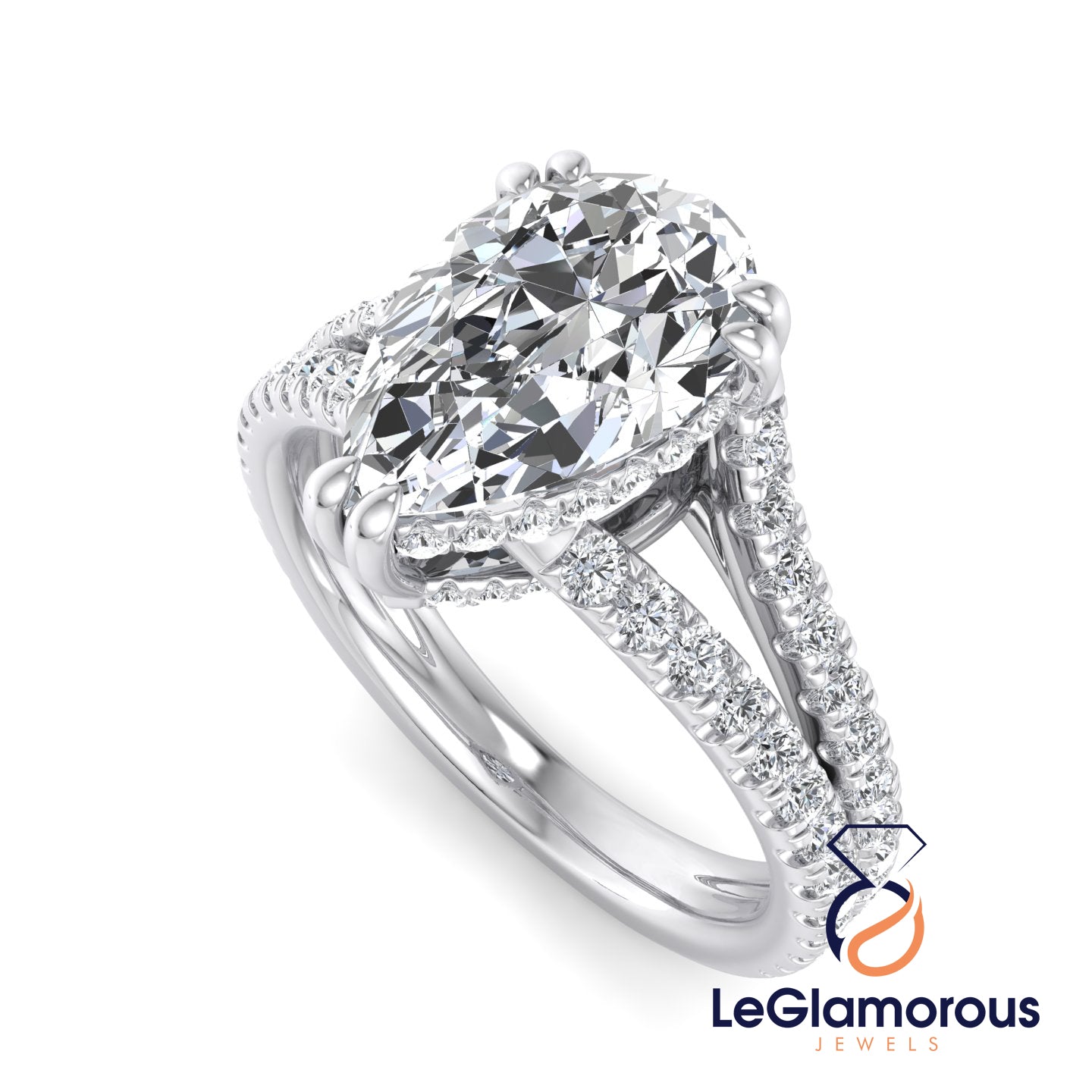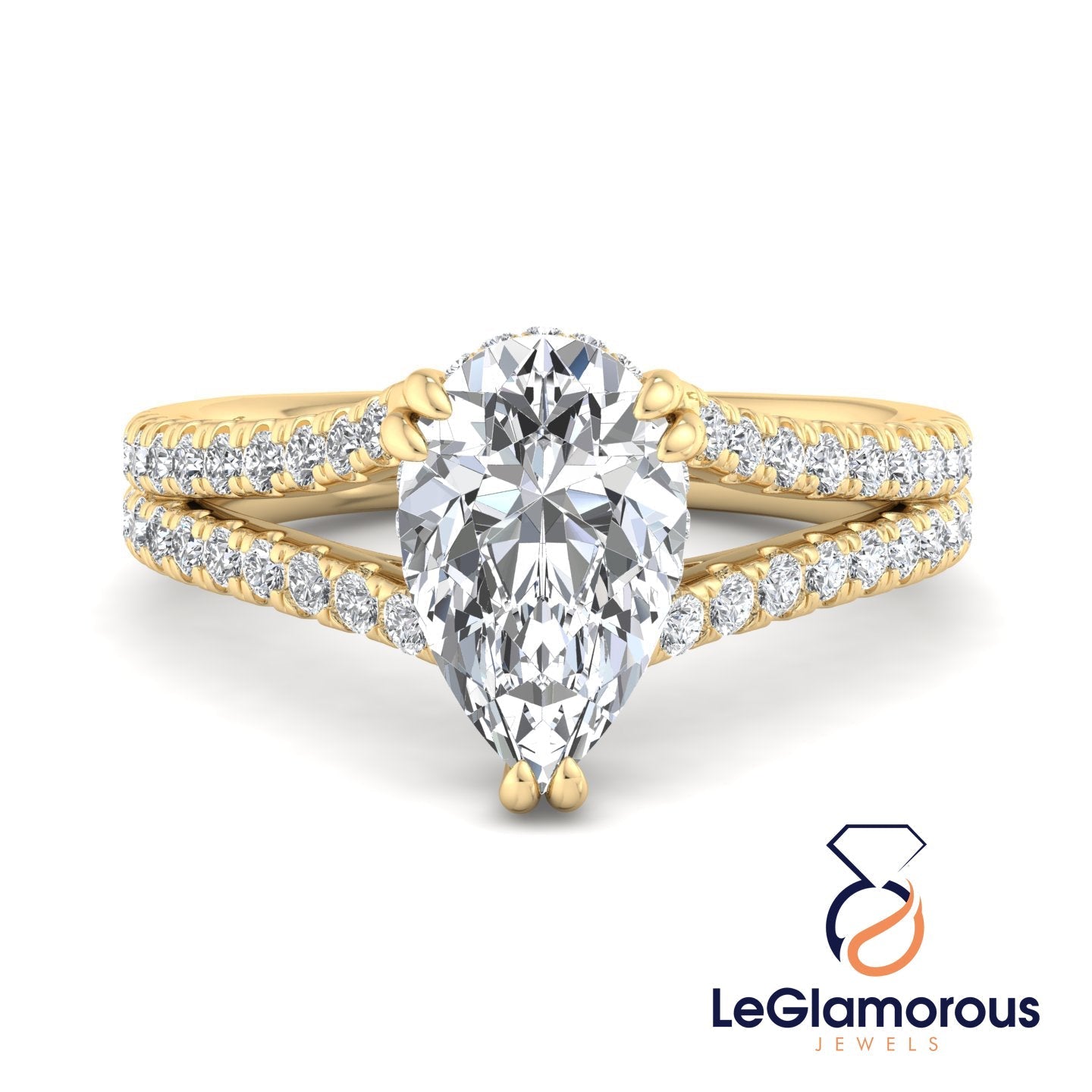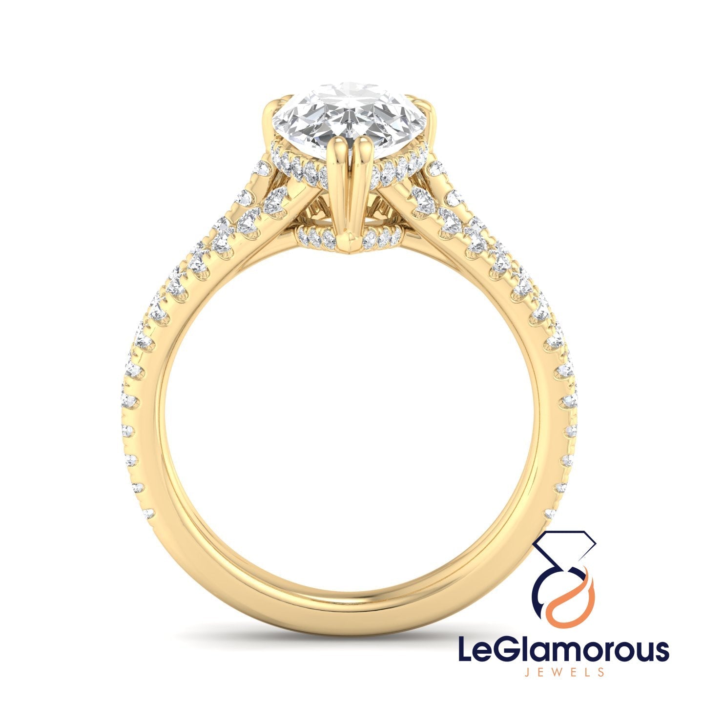 Pear Cut Hideen Halo Pave Style Moissanite Diamond Engagement Ring For Wedding Gift