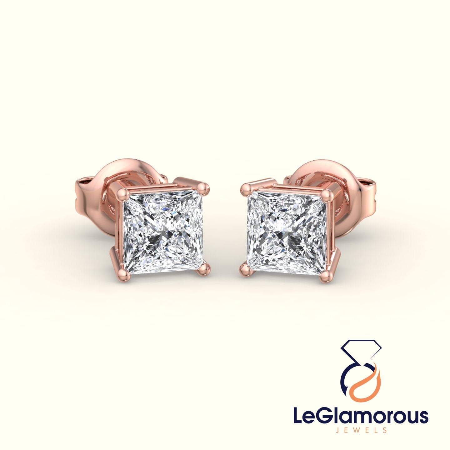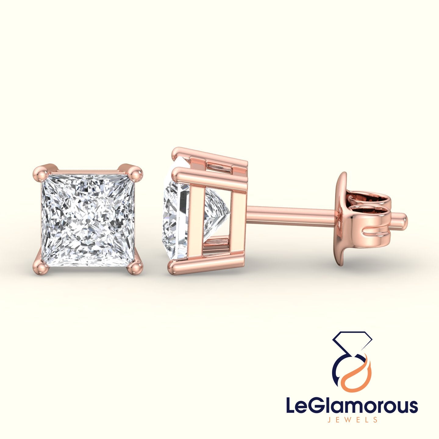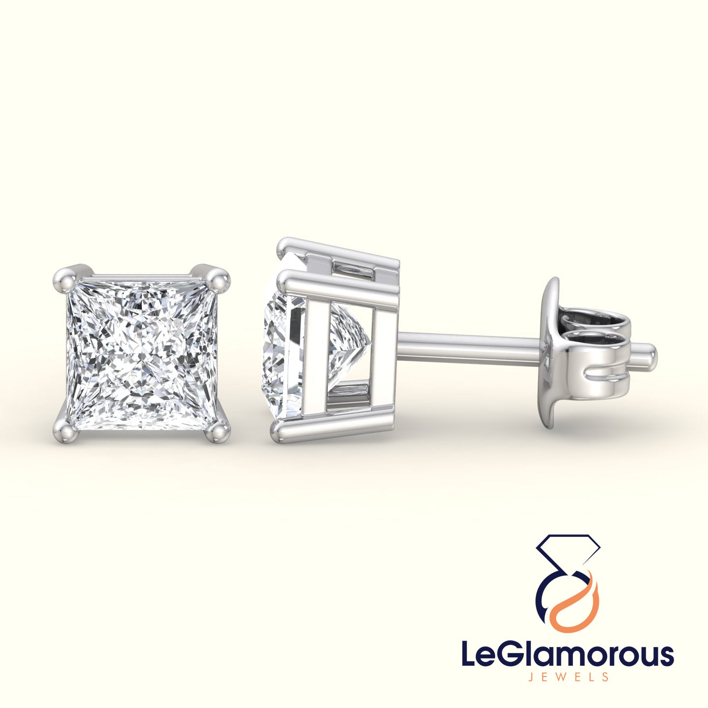 Princess Cut Lab Grown Diamond Stud Earrings, EF/VS Lab Diamond Anniversary Earrings