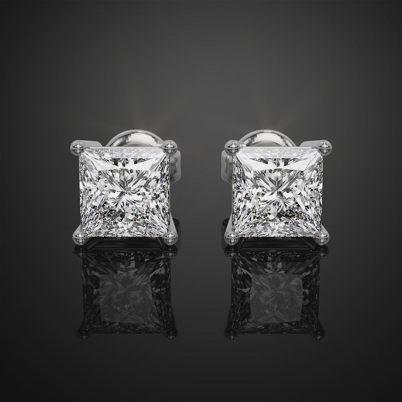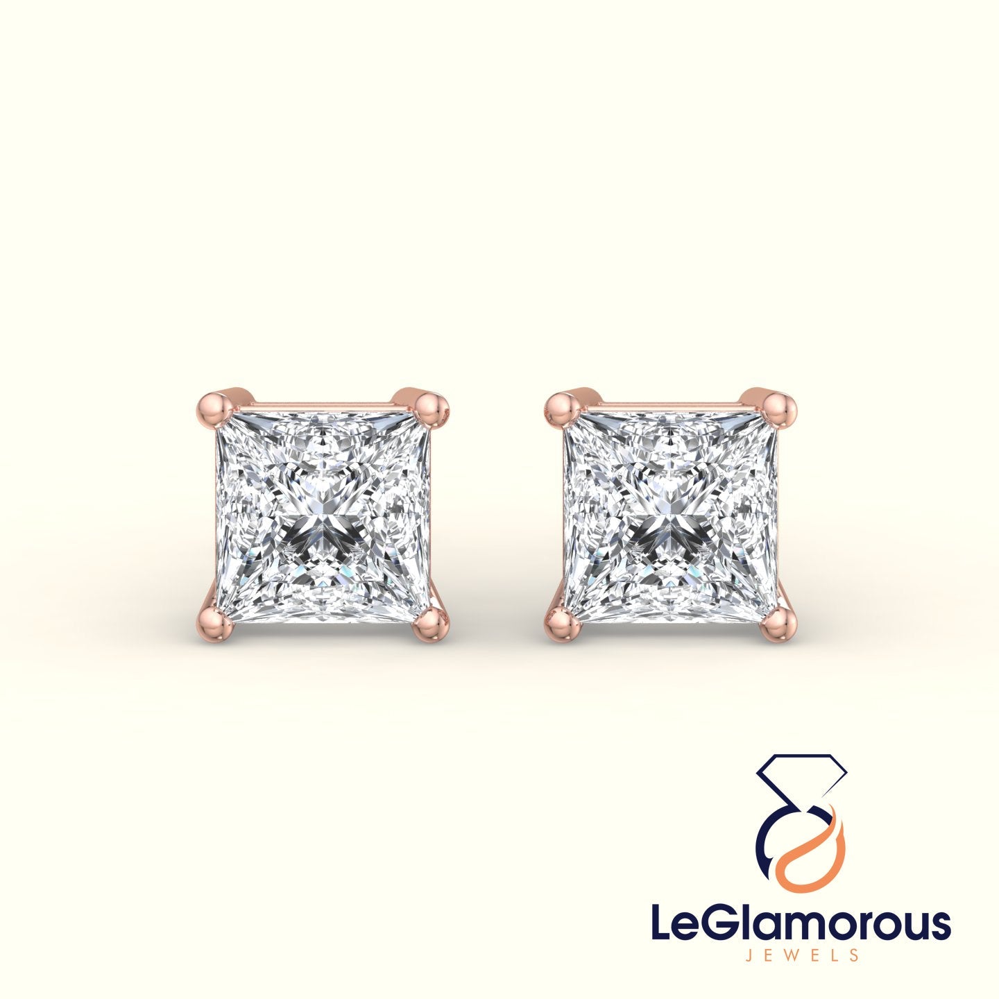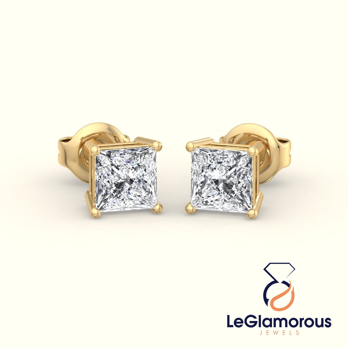 Princess Cut Lab Grown Diamond Stud Earrings, EF/VS Lab Diamond Anniversary Earrings