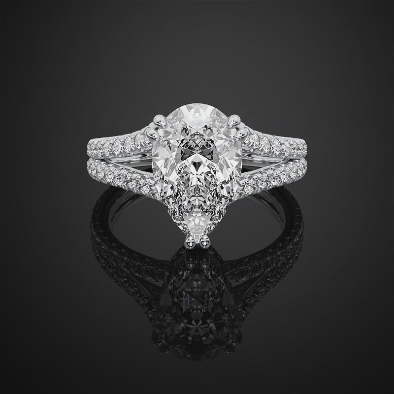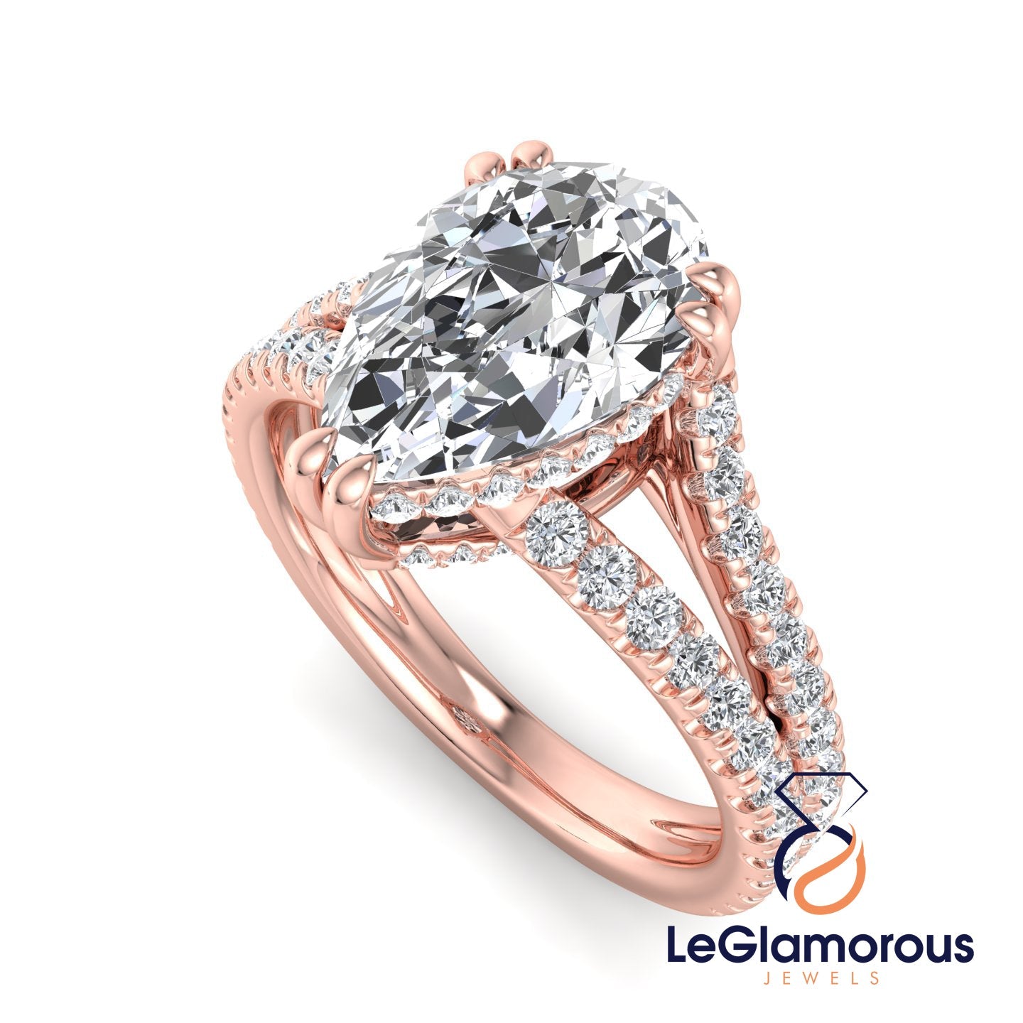 Pear Cut Hideen Halo Pave Style Lab Grown Diamond Engagement Ring For Wedding Gift