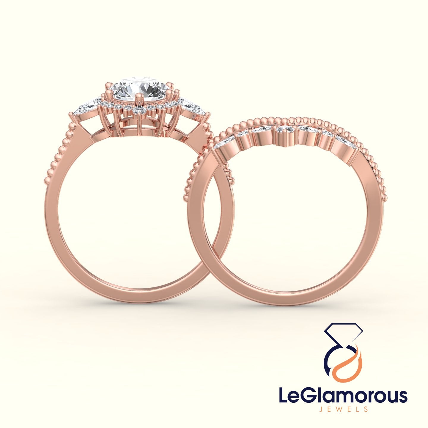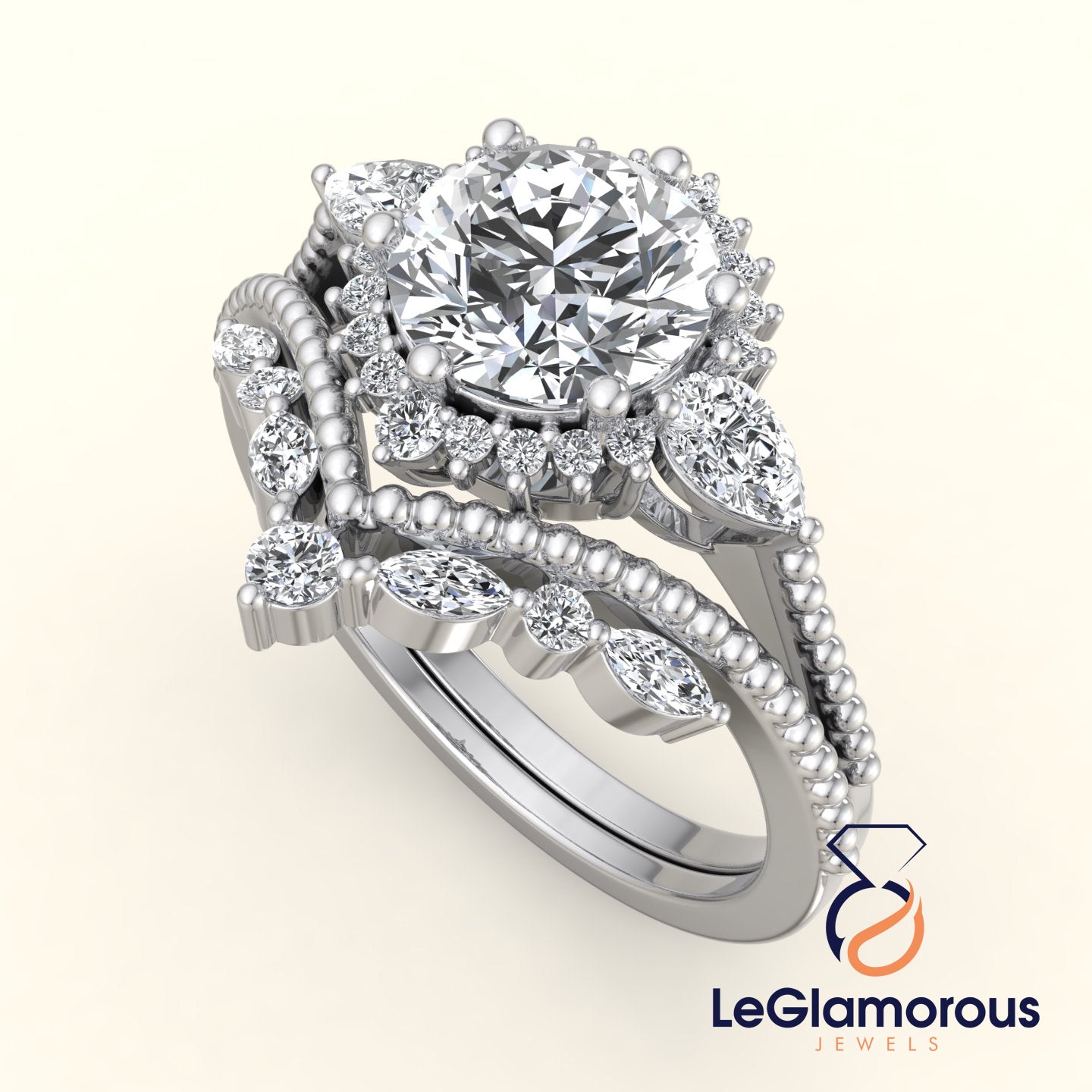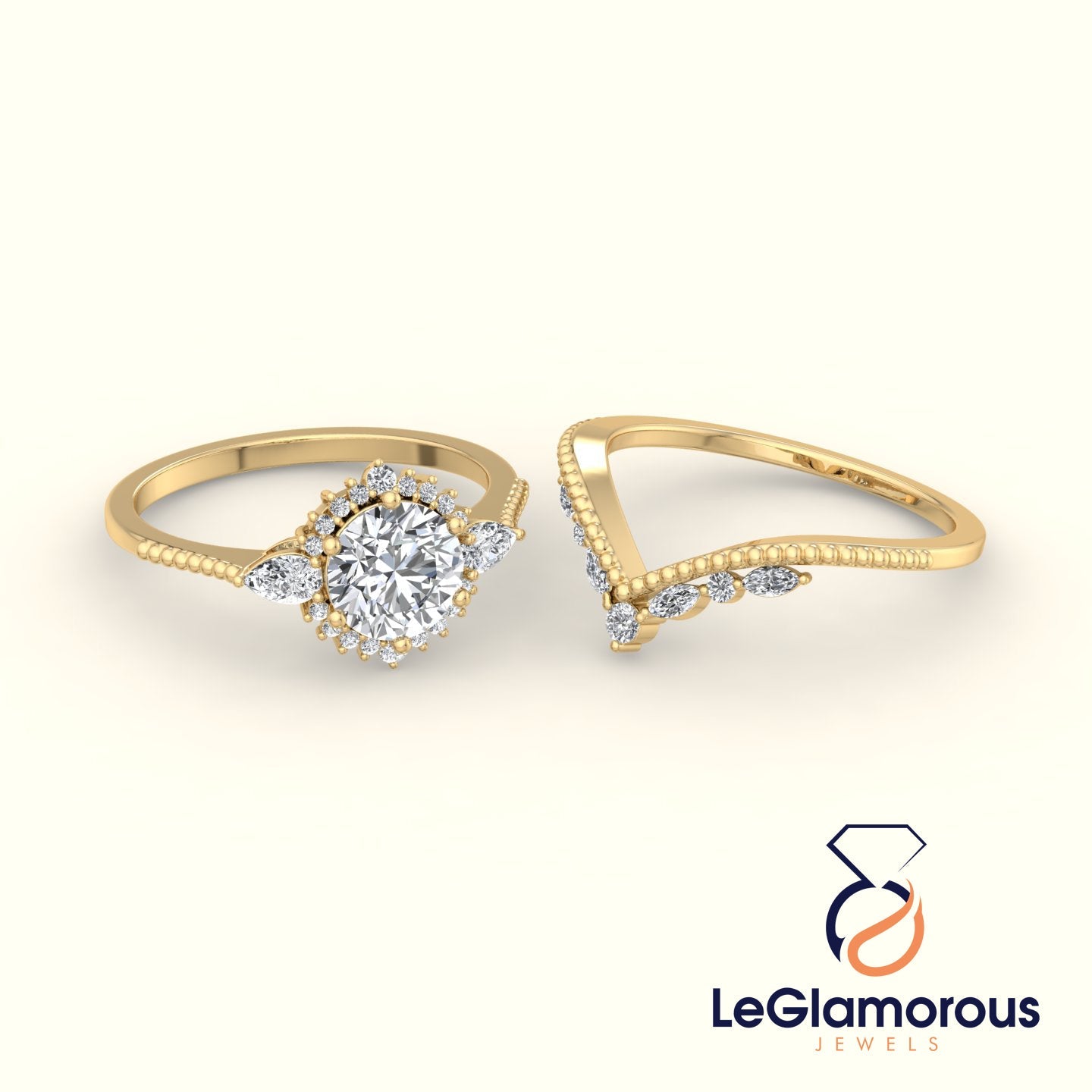 Round Halo Lab Grown Bridal Sets Engagement Ring For Wedding Gift