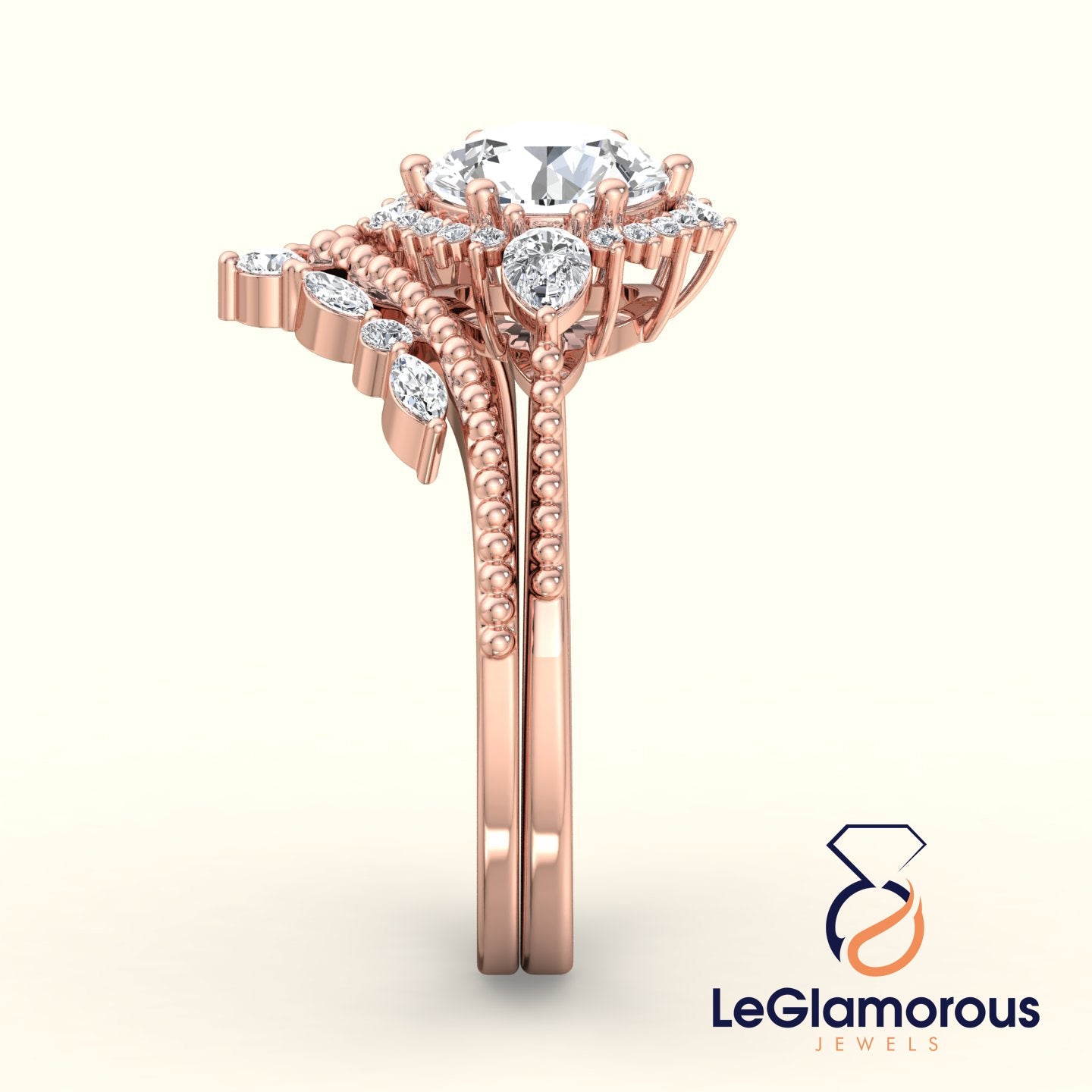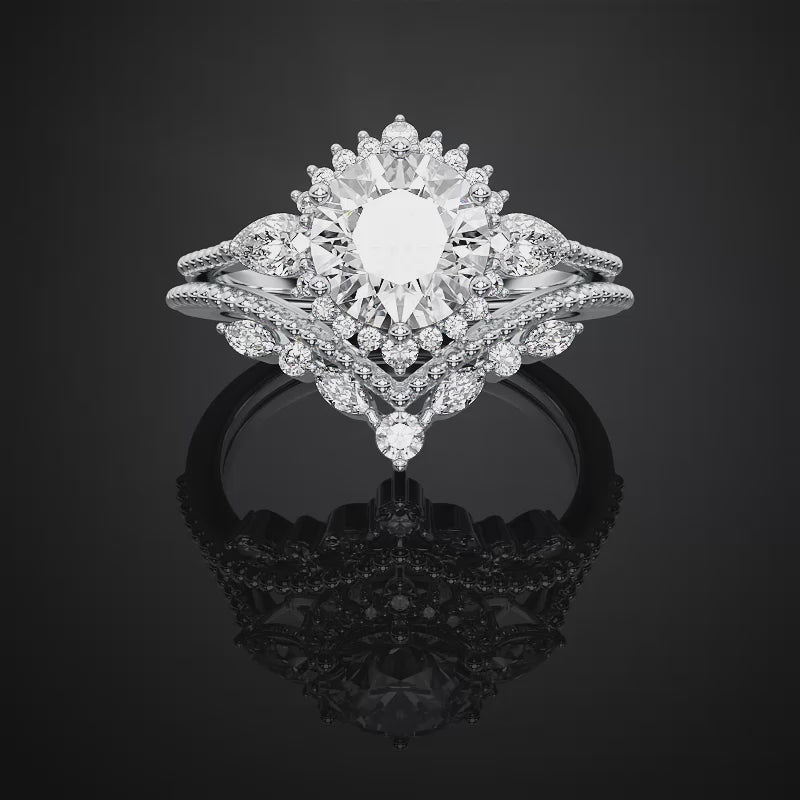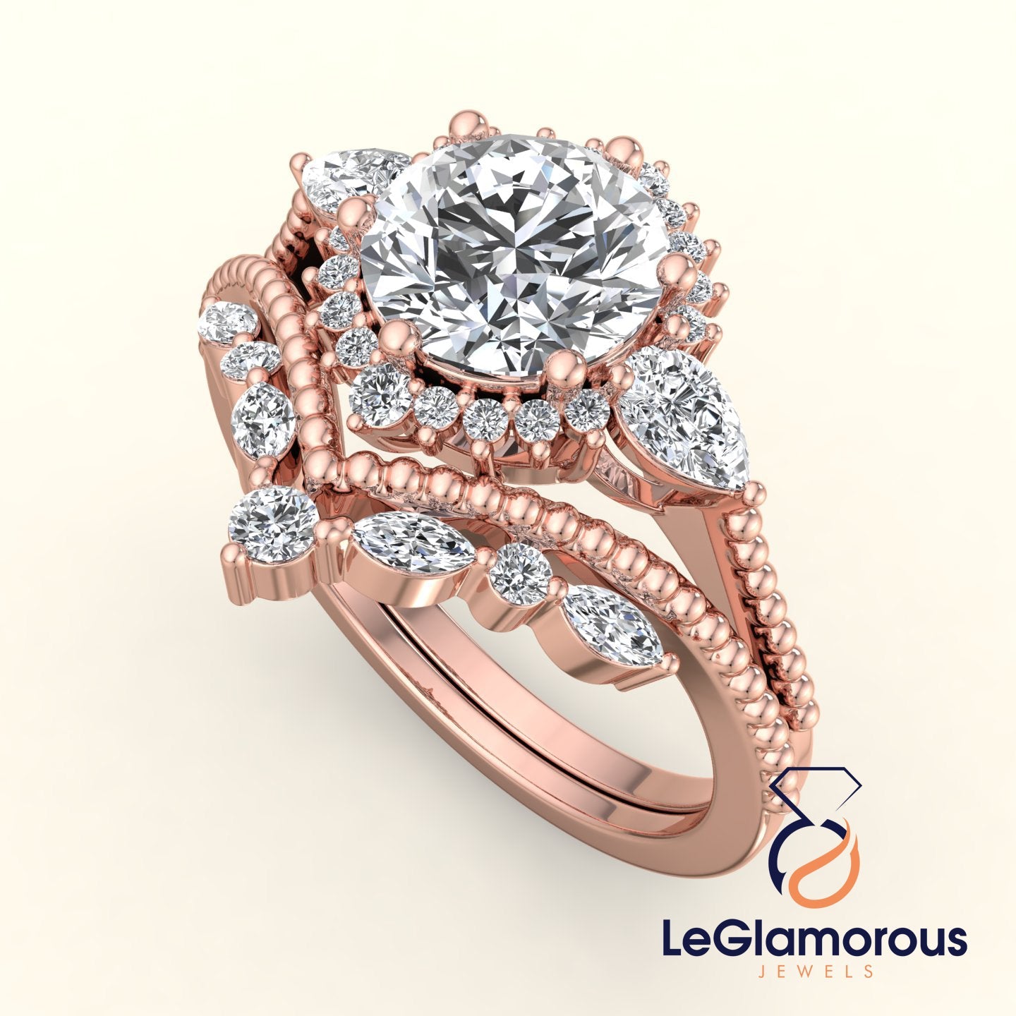 Round Halo Lab Grown Bridal Sets Engagement Ring For Wedding Gift