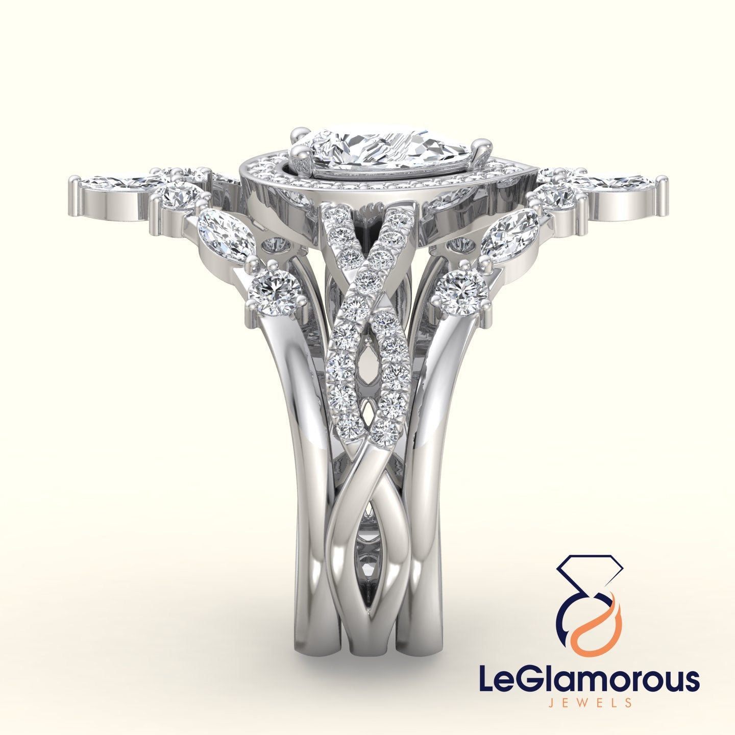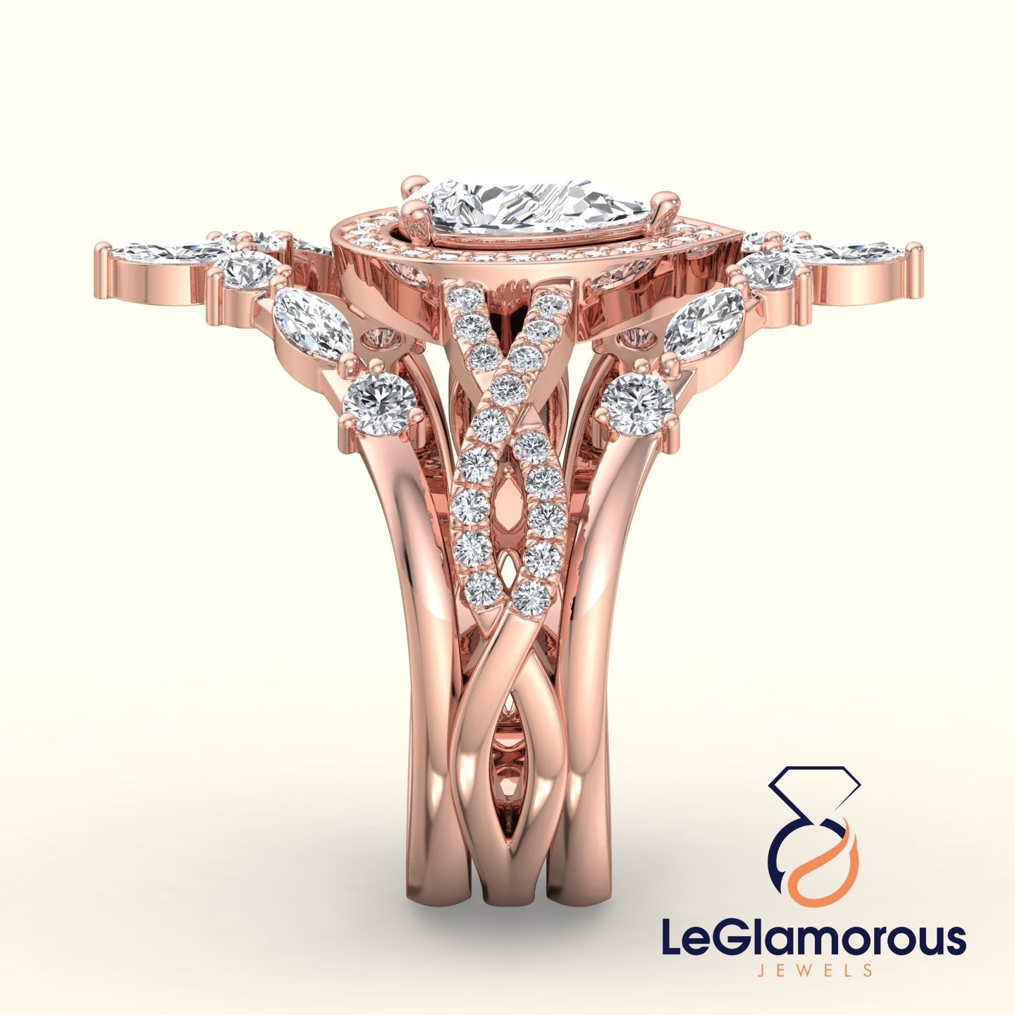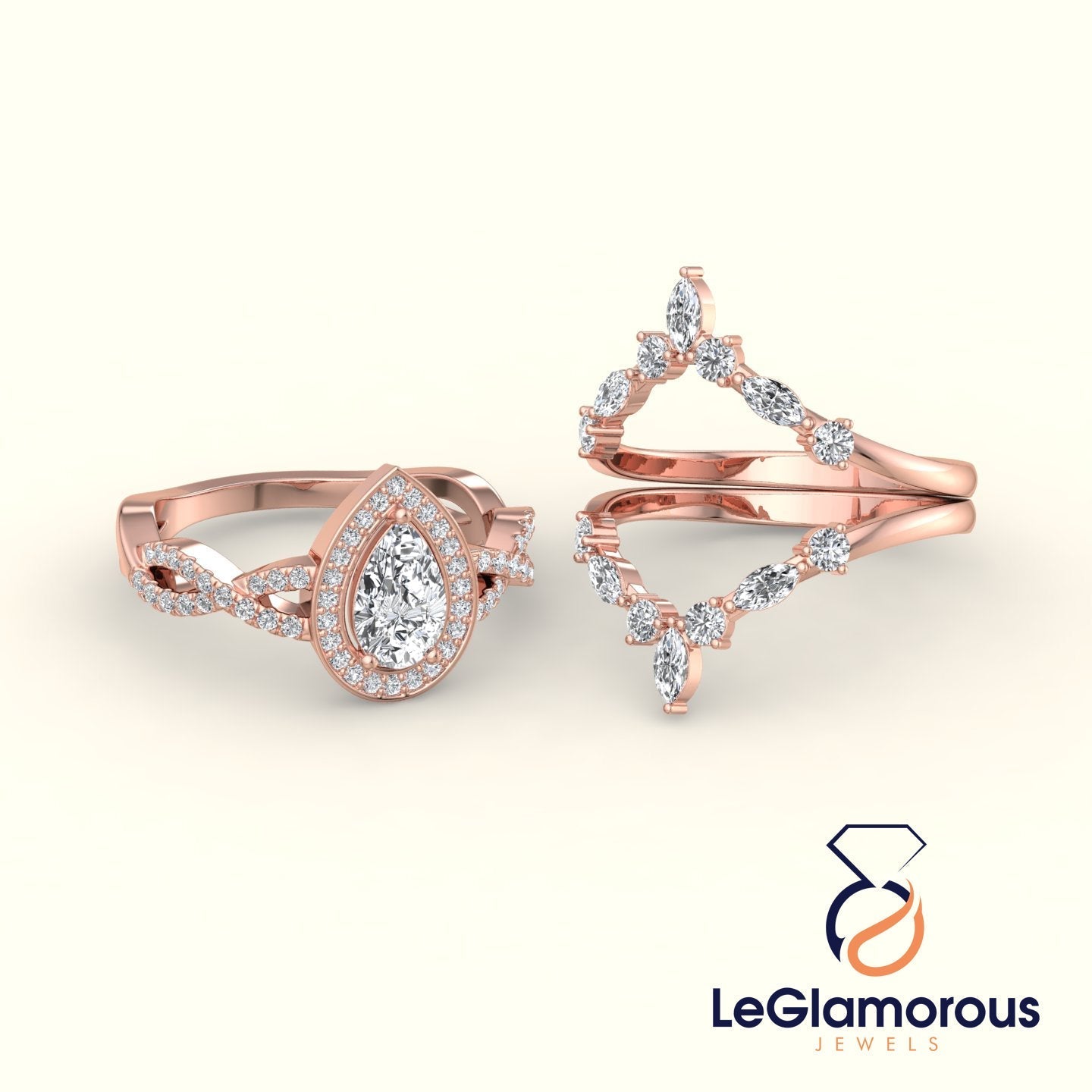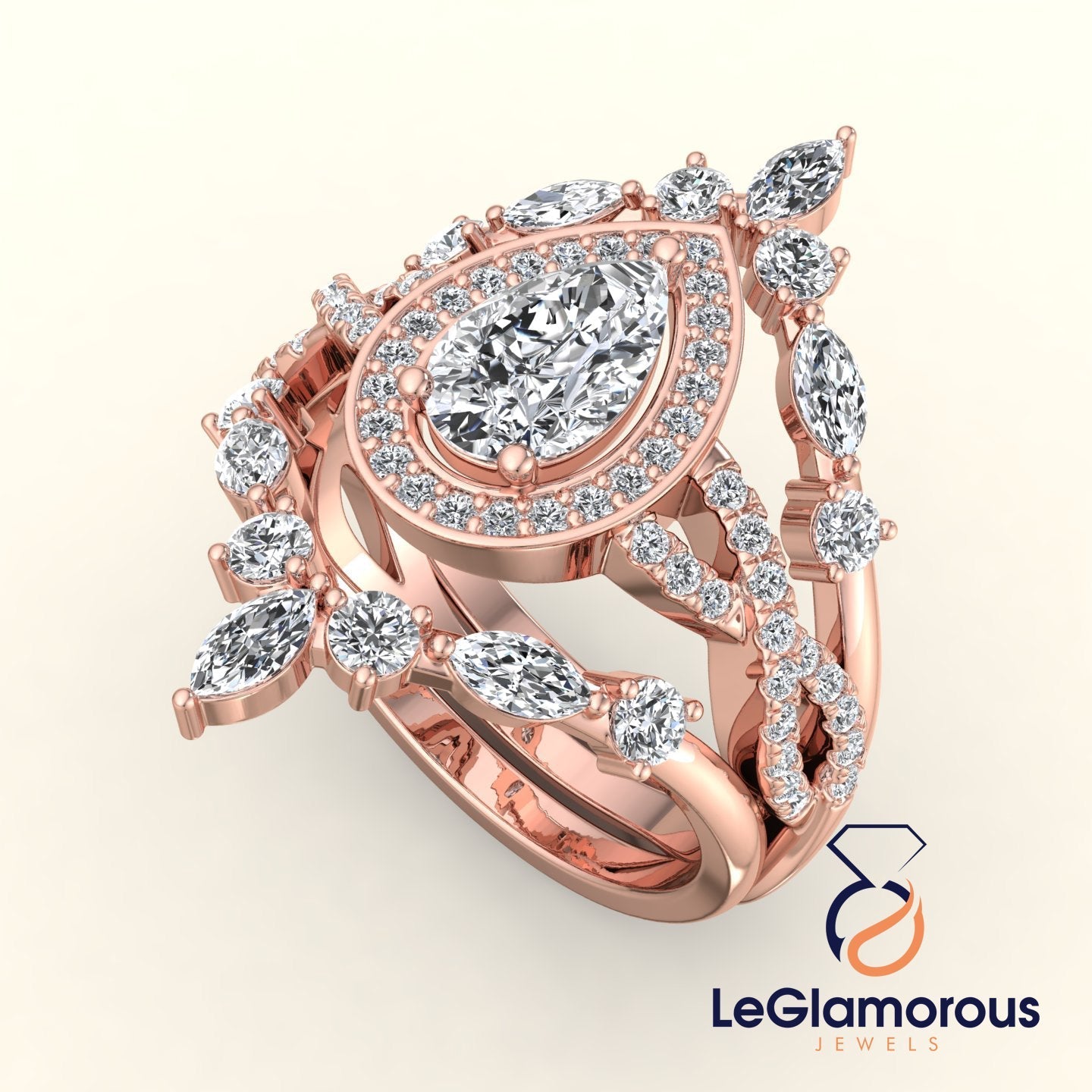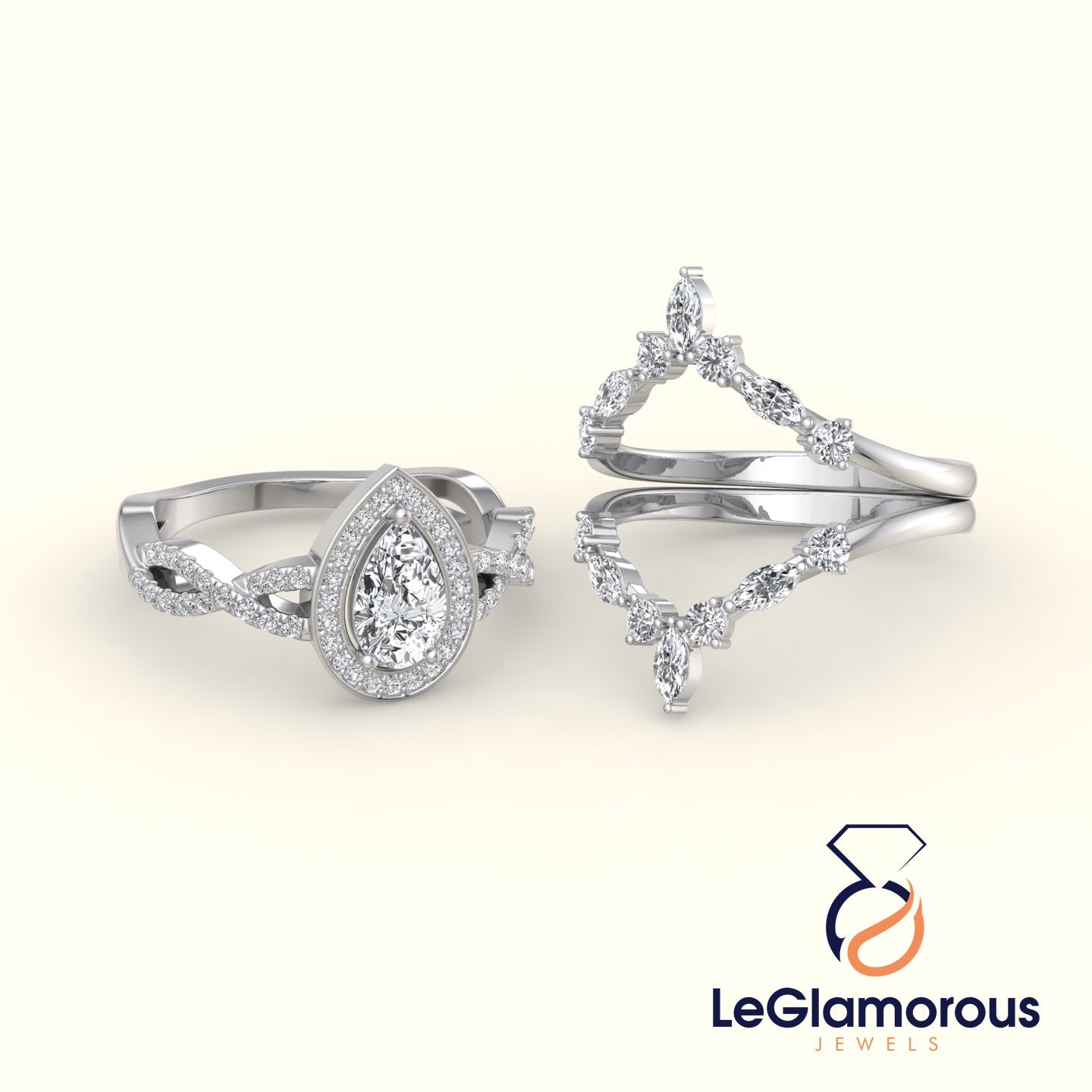 Pear Halo Moissanite Bridal Sets Engagement Ring For Wedding Gift