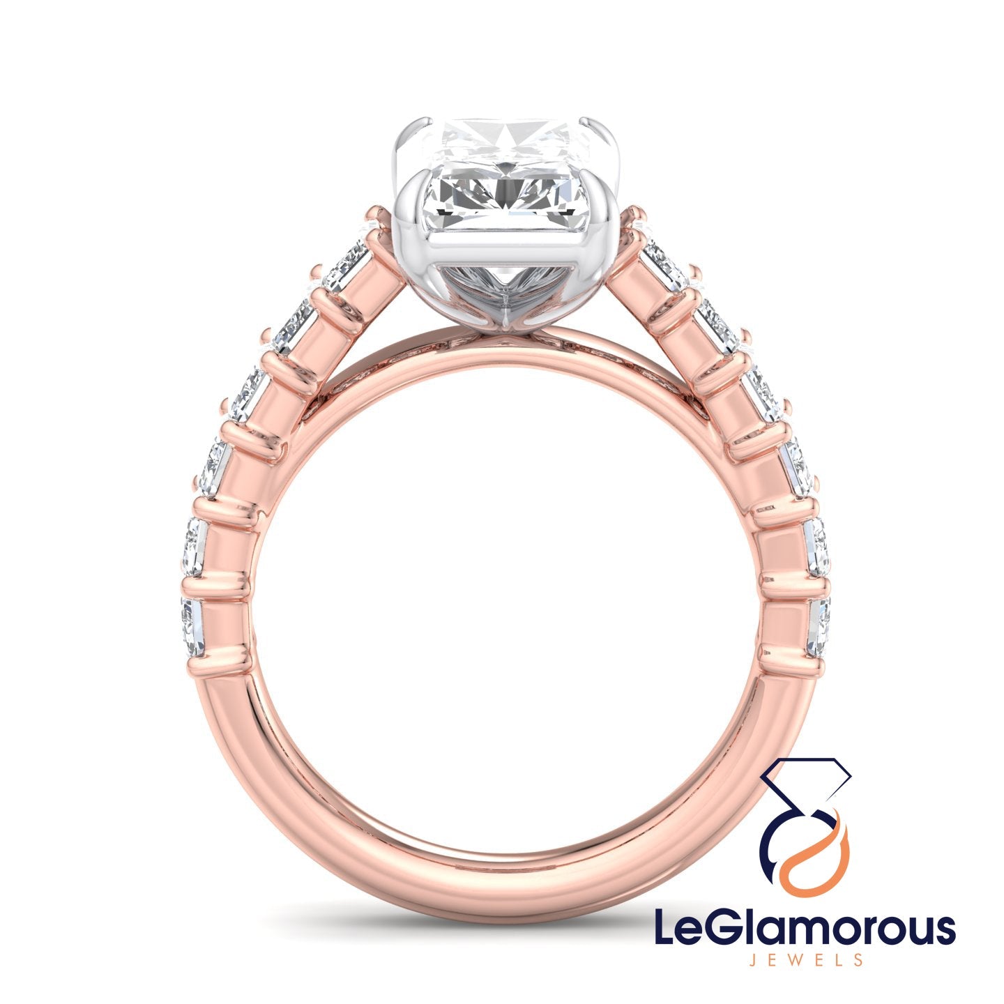 Radiant Cut Moissanite Diamond Pave Setting Engagement Ring For Wedding Gift