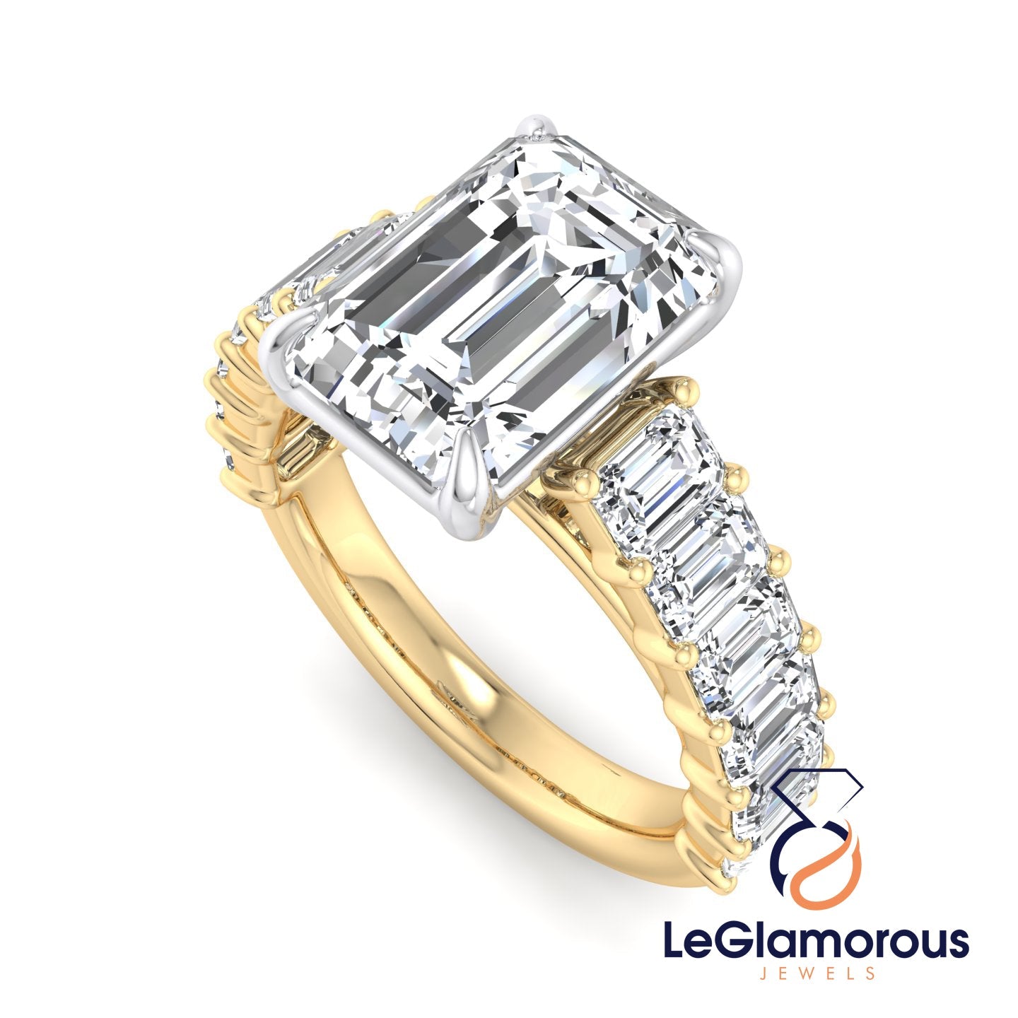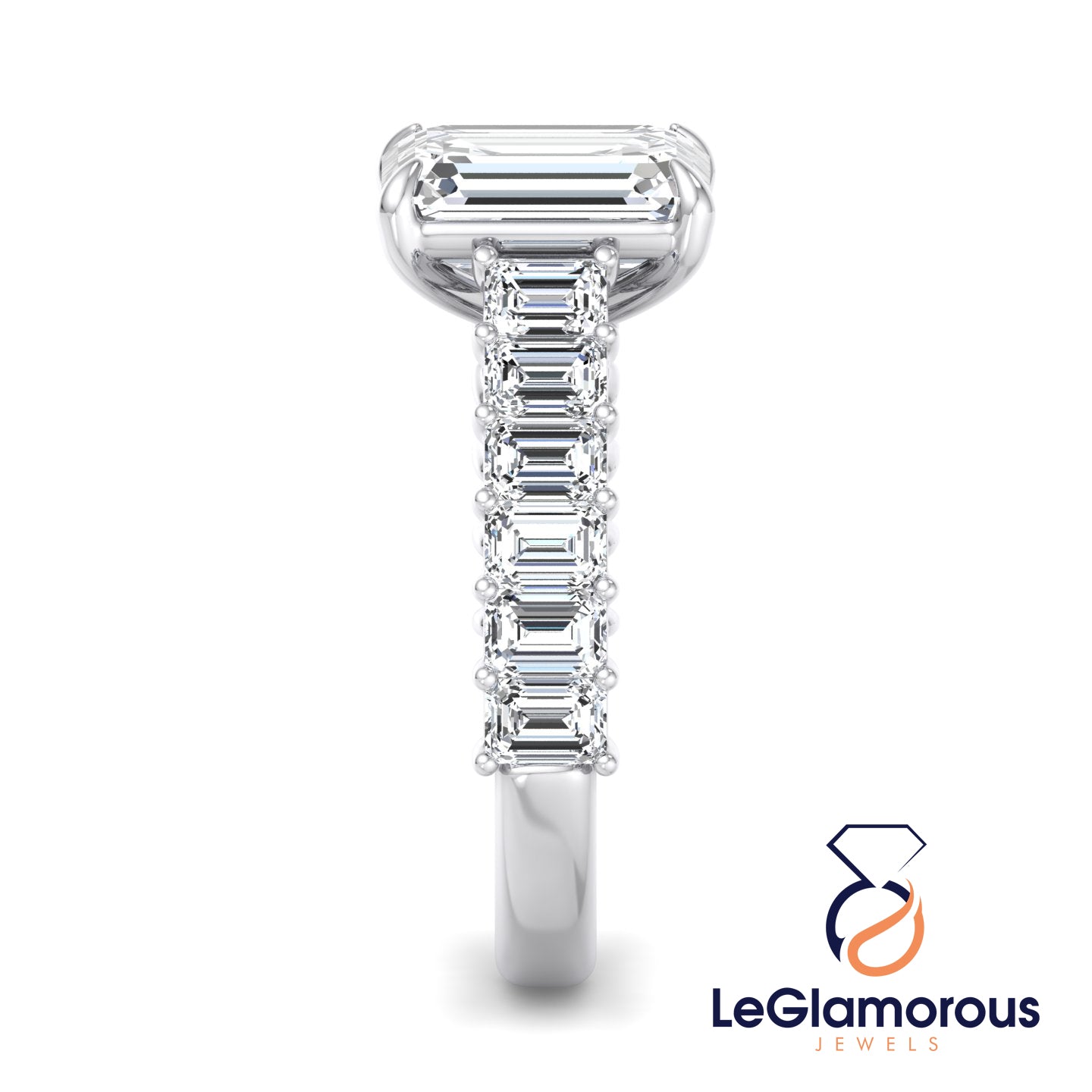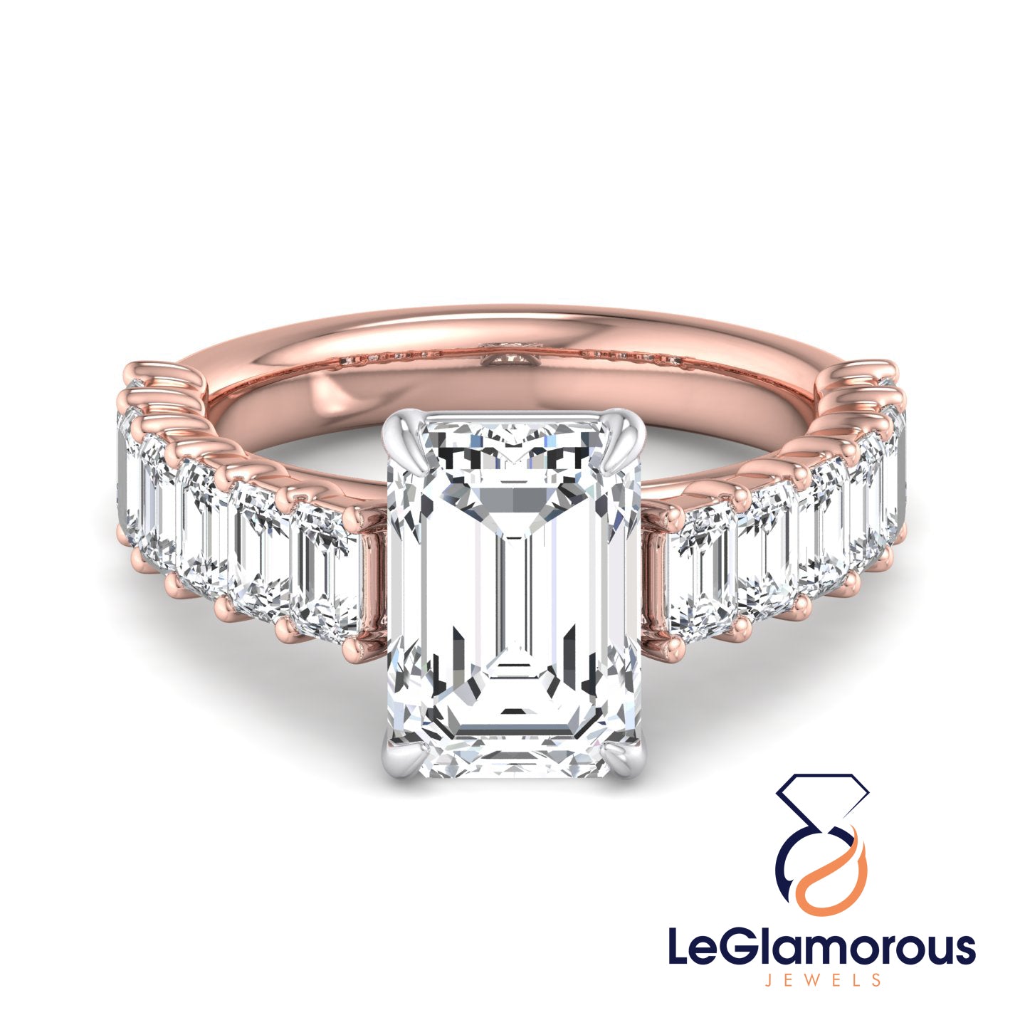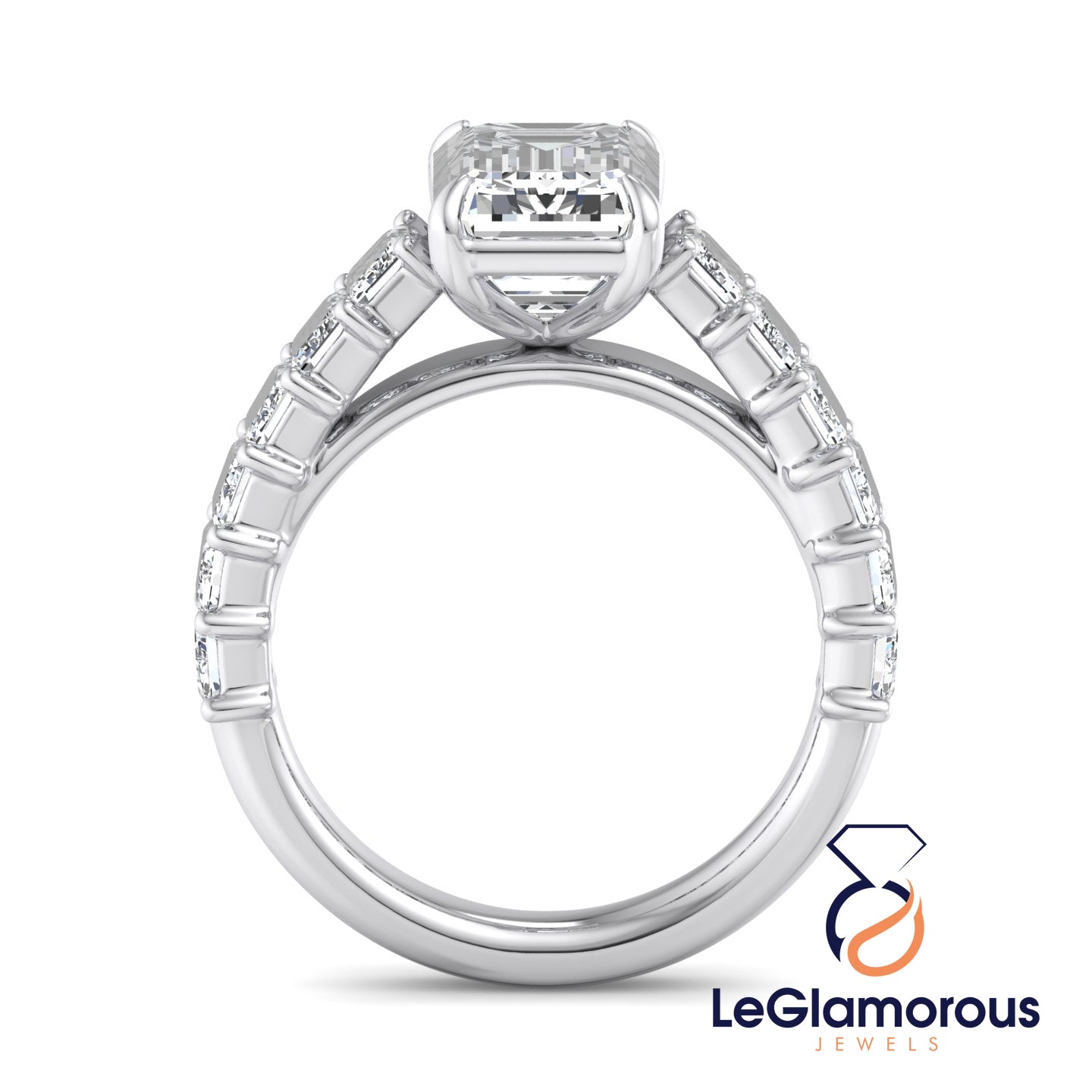 Emerald Cut Moissanite Diamond Pave Setting Engagement Ring For Wedding Gift