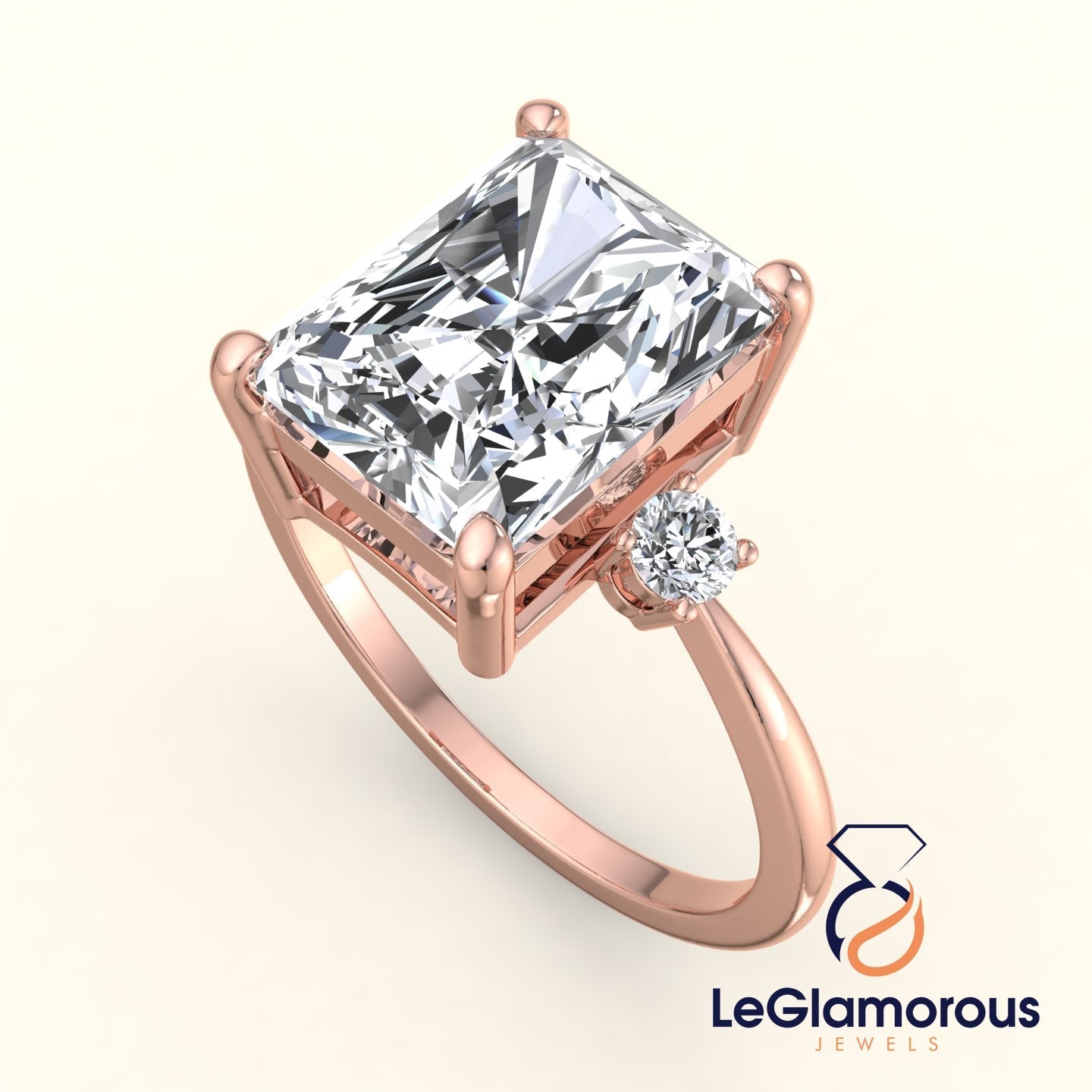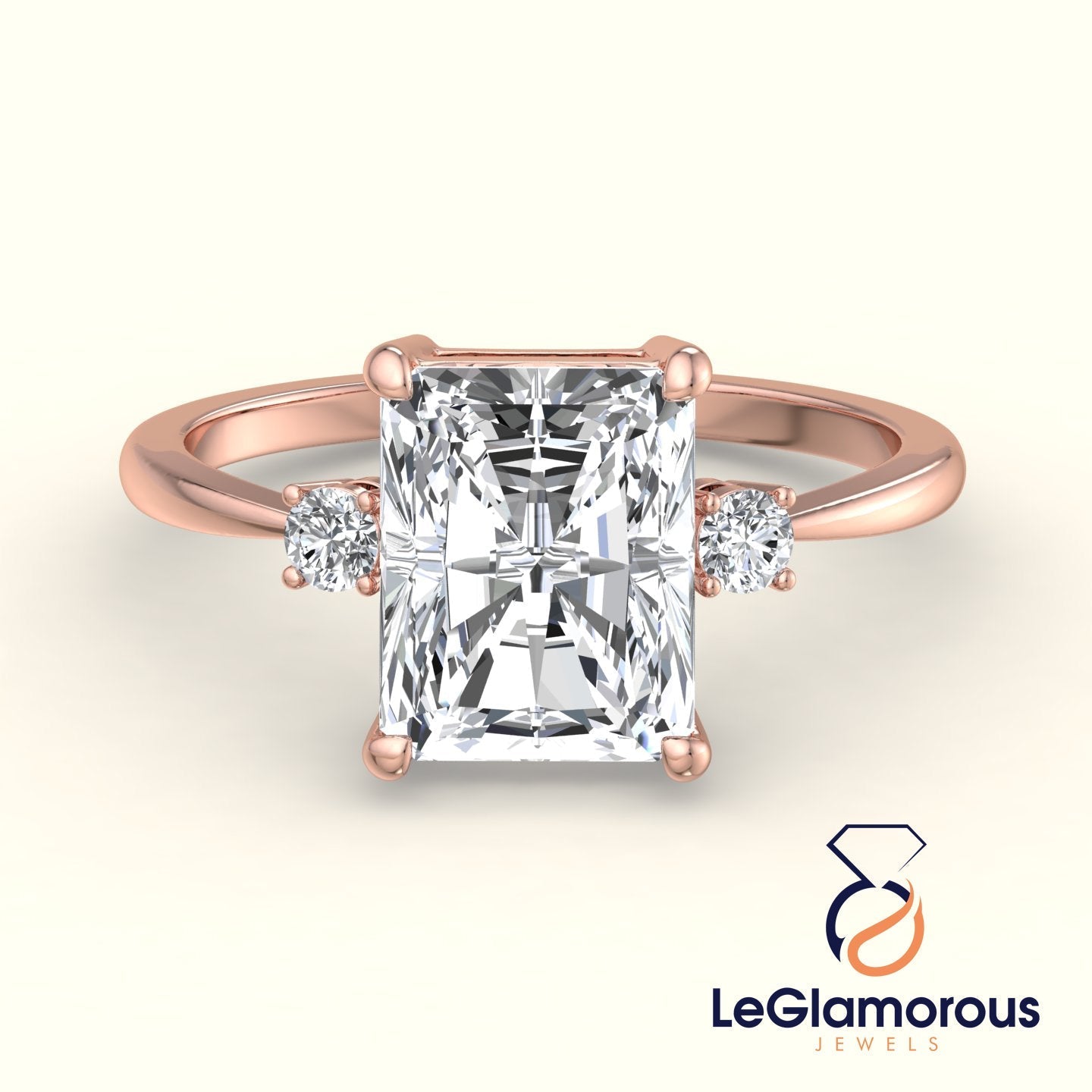 Radiant Cut Three Stone Moissanite Engagement Ring For Wedding Gift