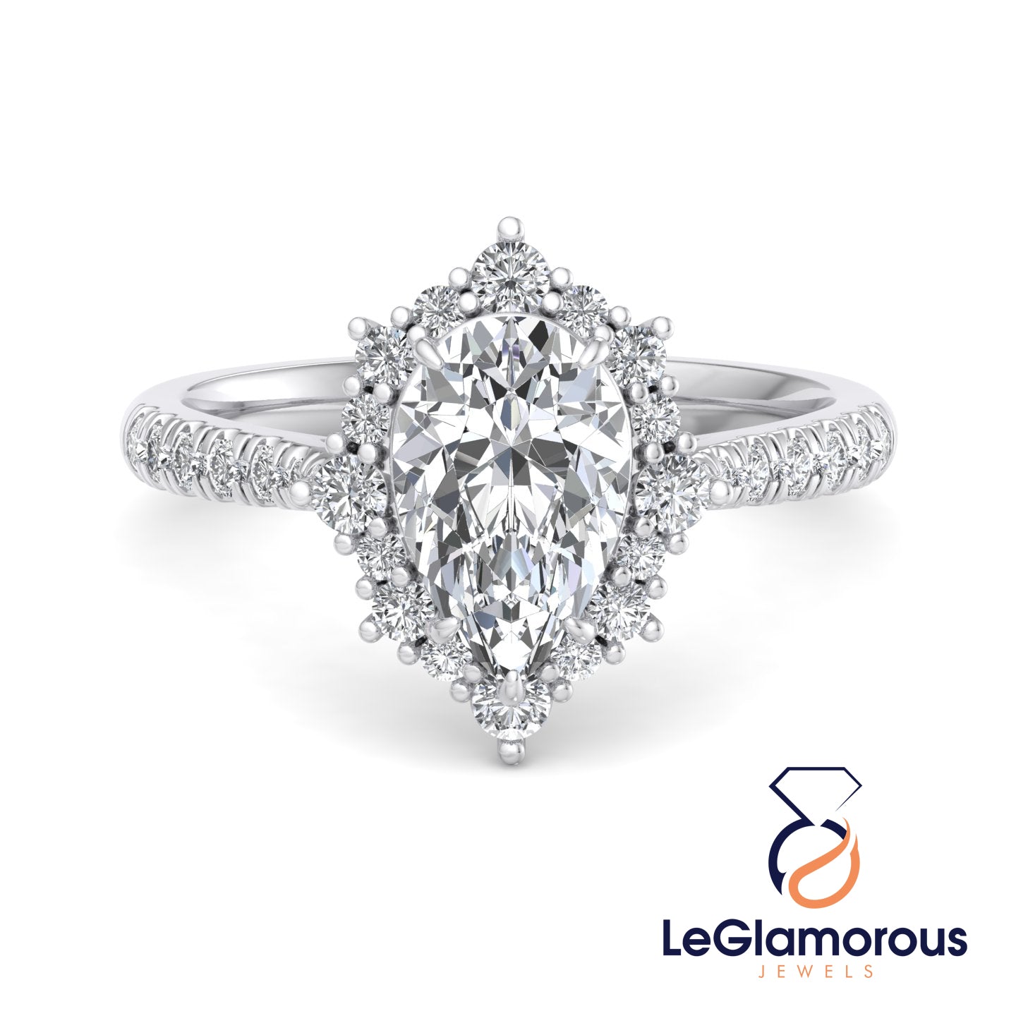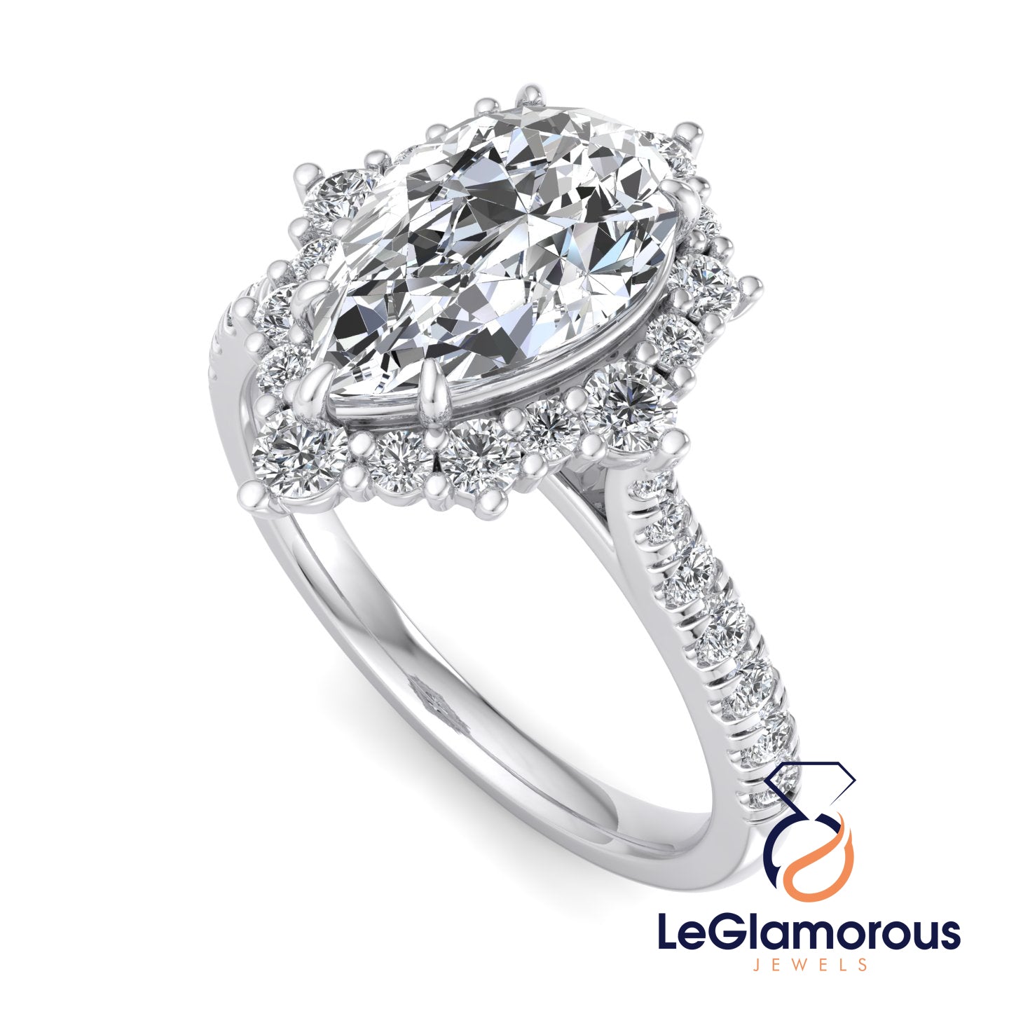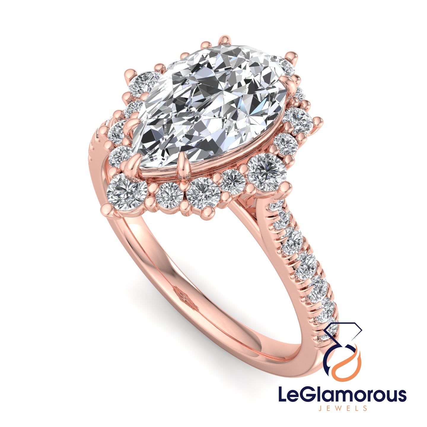 Pear Cut Lab Grown Diamond Halo Engagement Ring For Christmas Gift