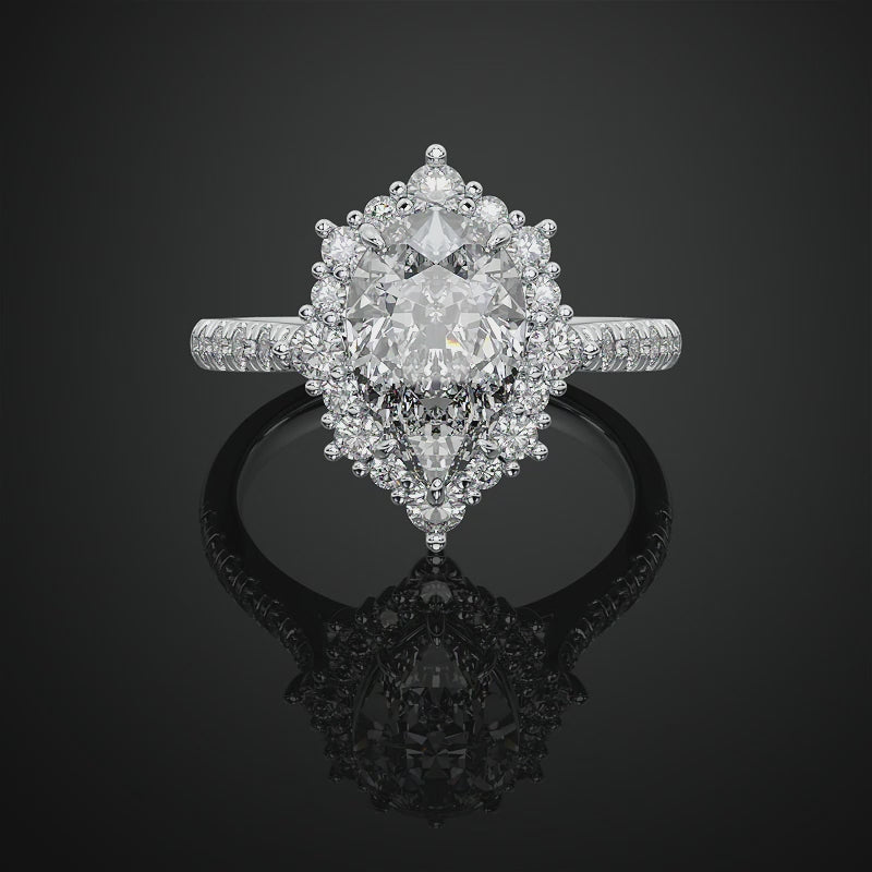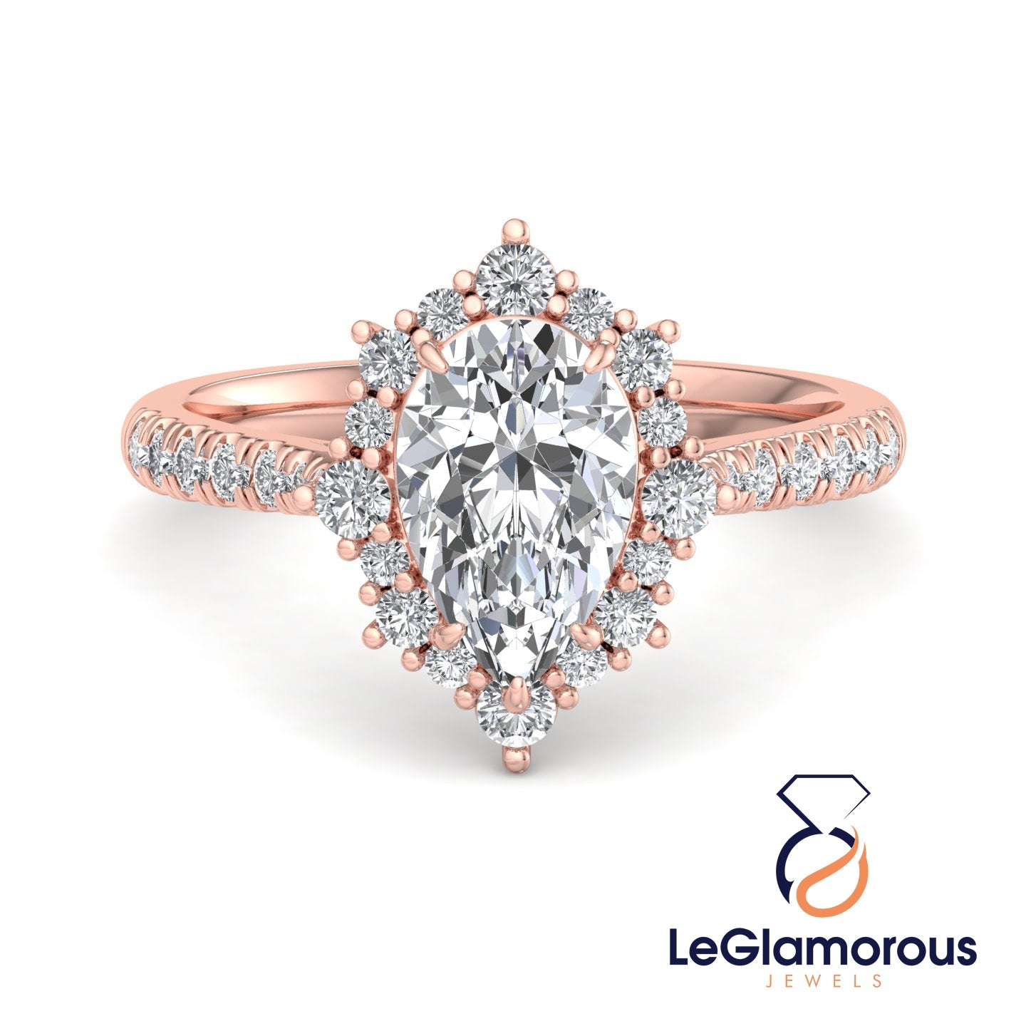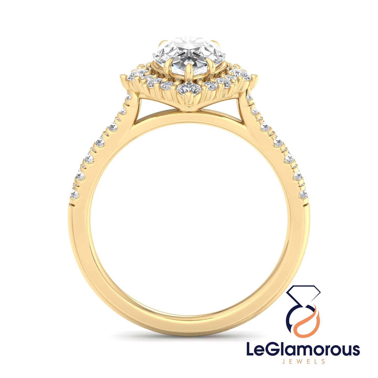 Pear Cut Lab Grown Diamond Halo Engagement Ring For Christmas Gift