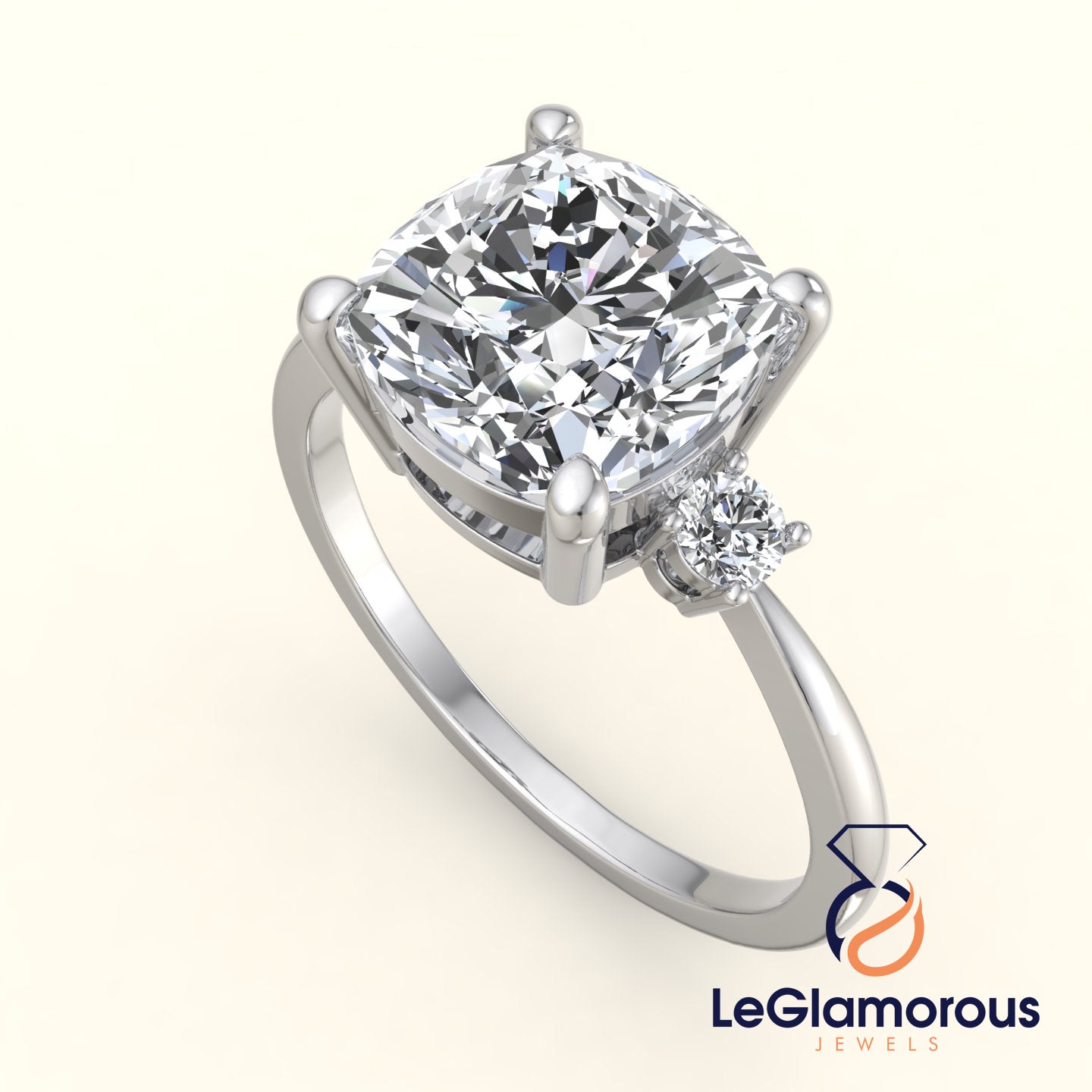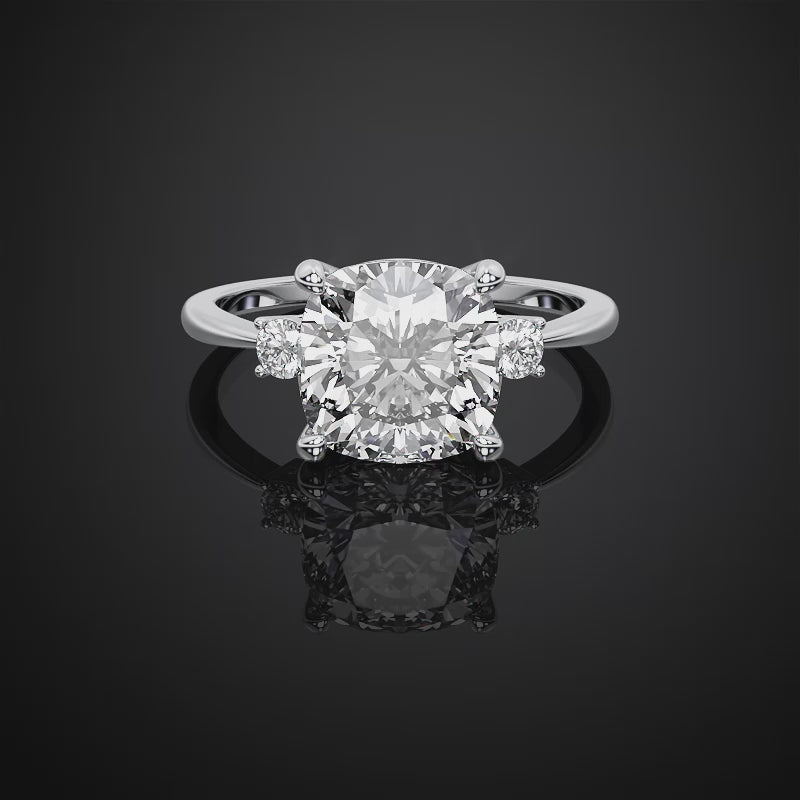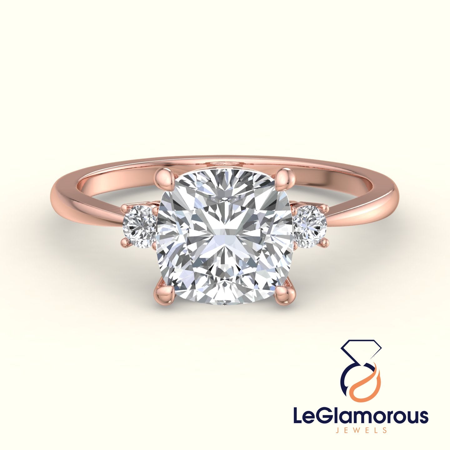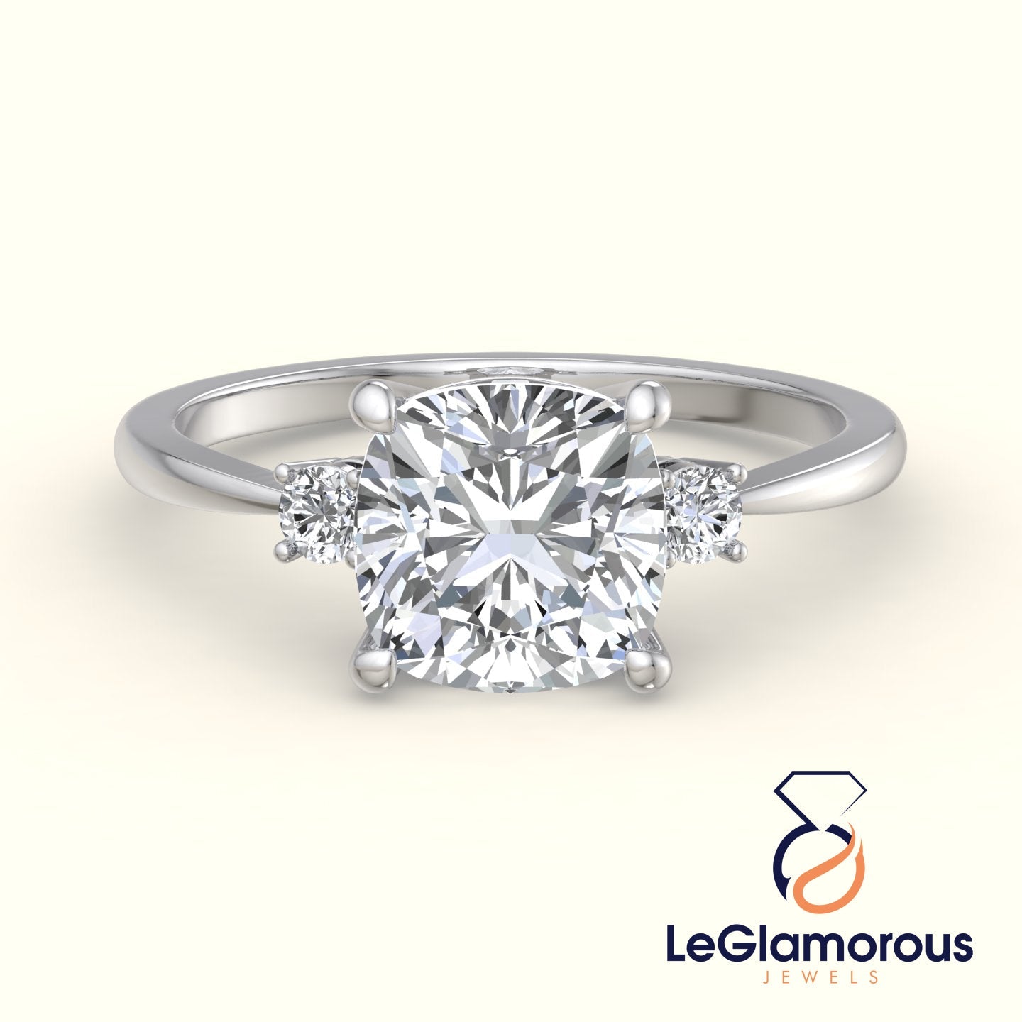 Squre Cushion Cut Three Stone Engagement Ring For Wedding Gift