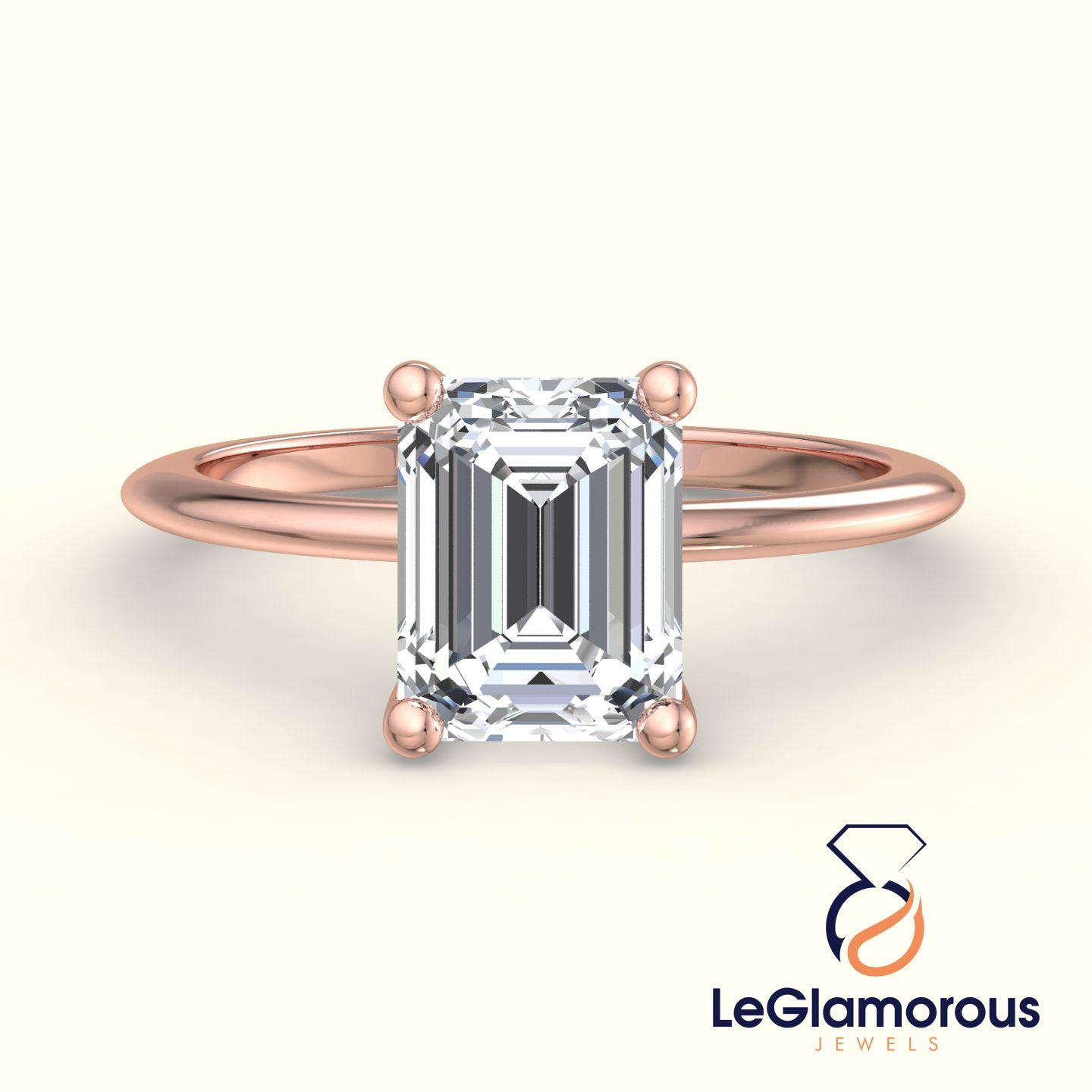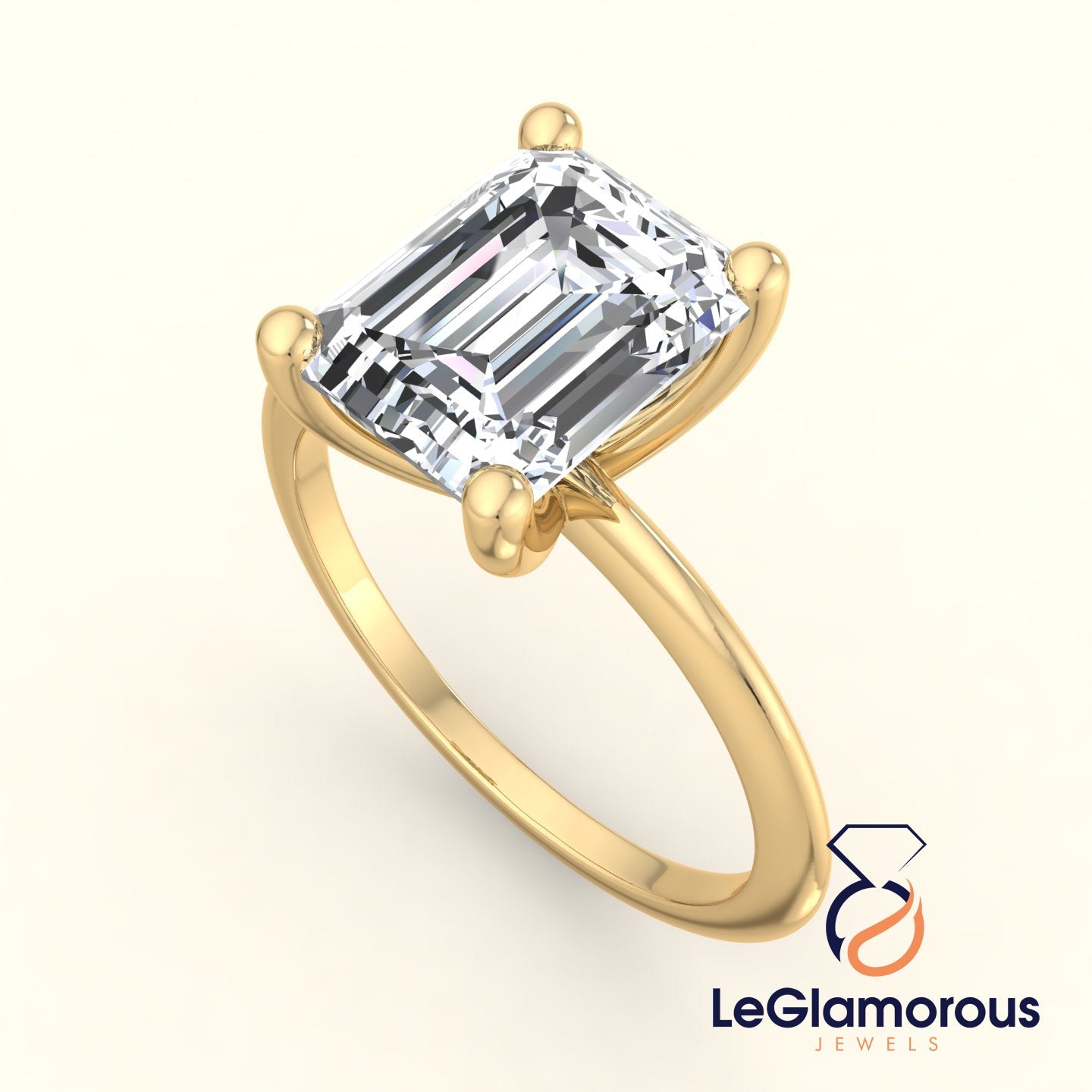 Emerald Solitaire Lab Grown Diamond Engagement Ring For Wedding Gift