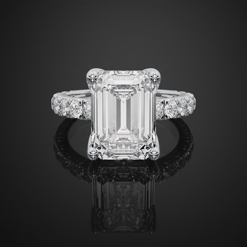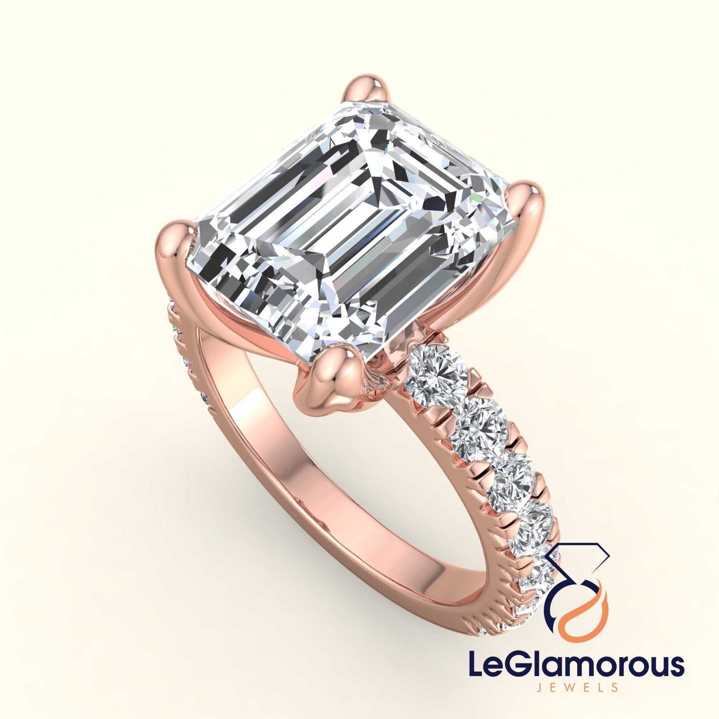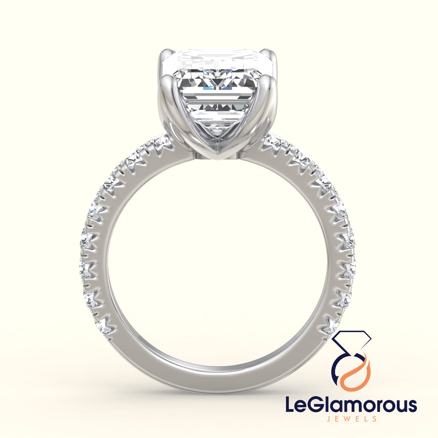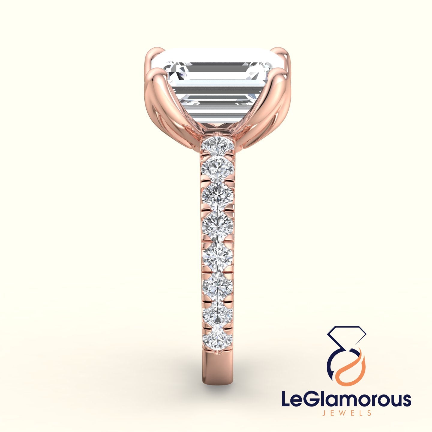 Emerald Cut Lab Grown Diamond Pave Setting Engagement Ring For Anniversay Gift