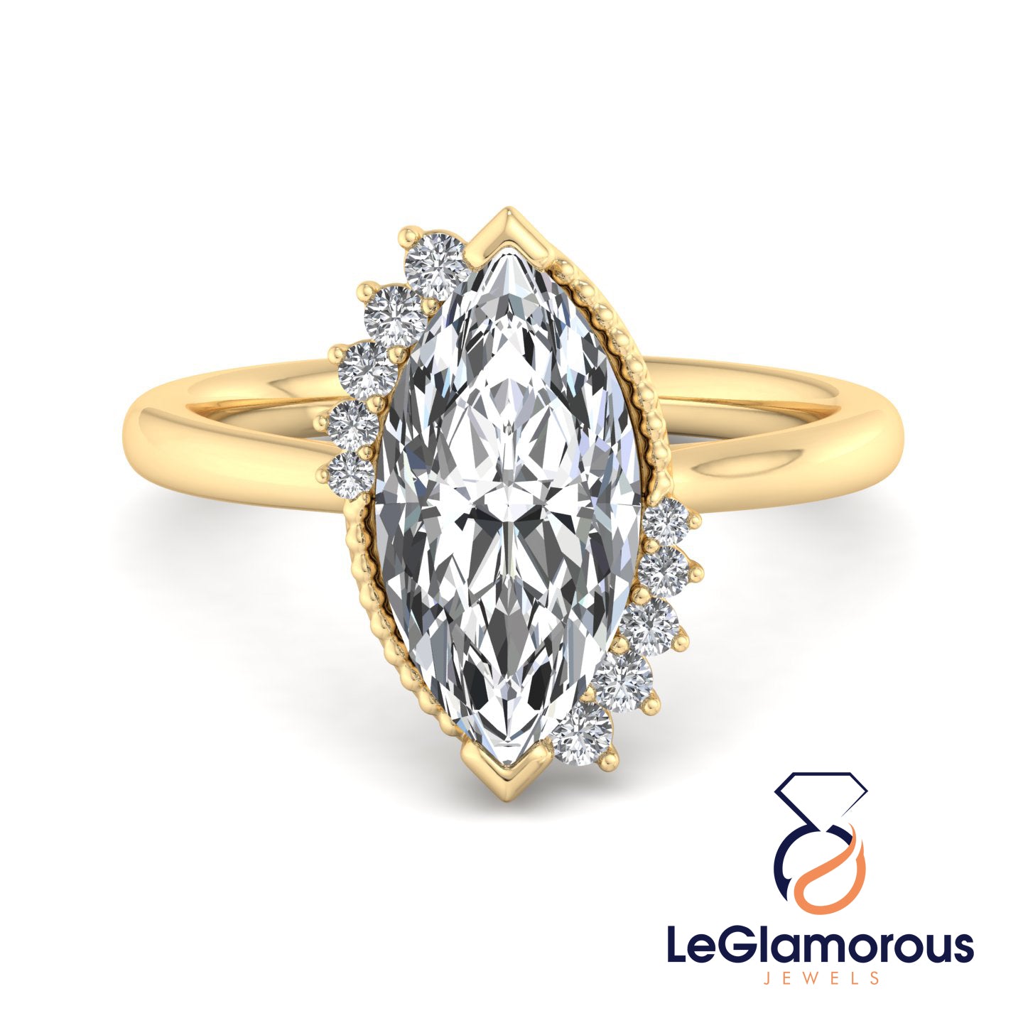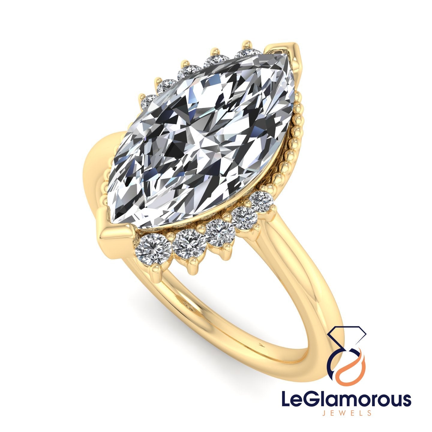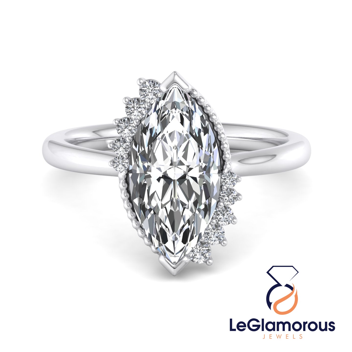 Unique Marquise Cut Moissanite Diamond Engagement Ring For Anniversary Gift
